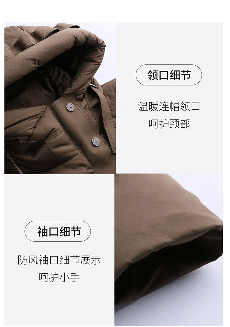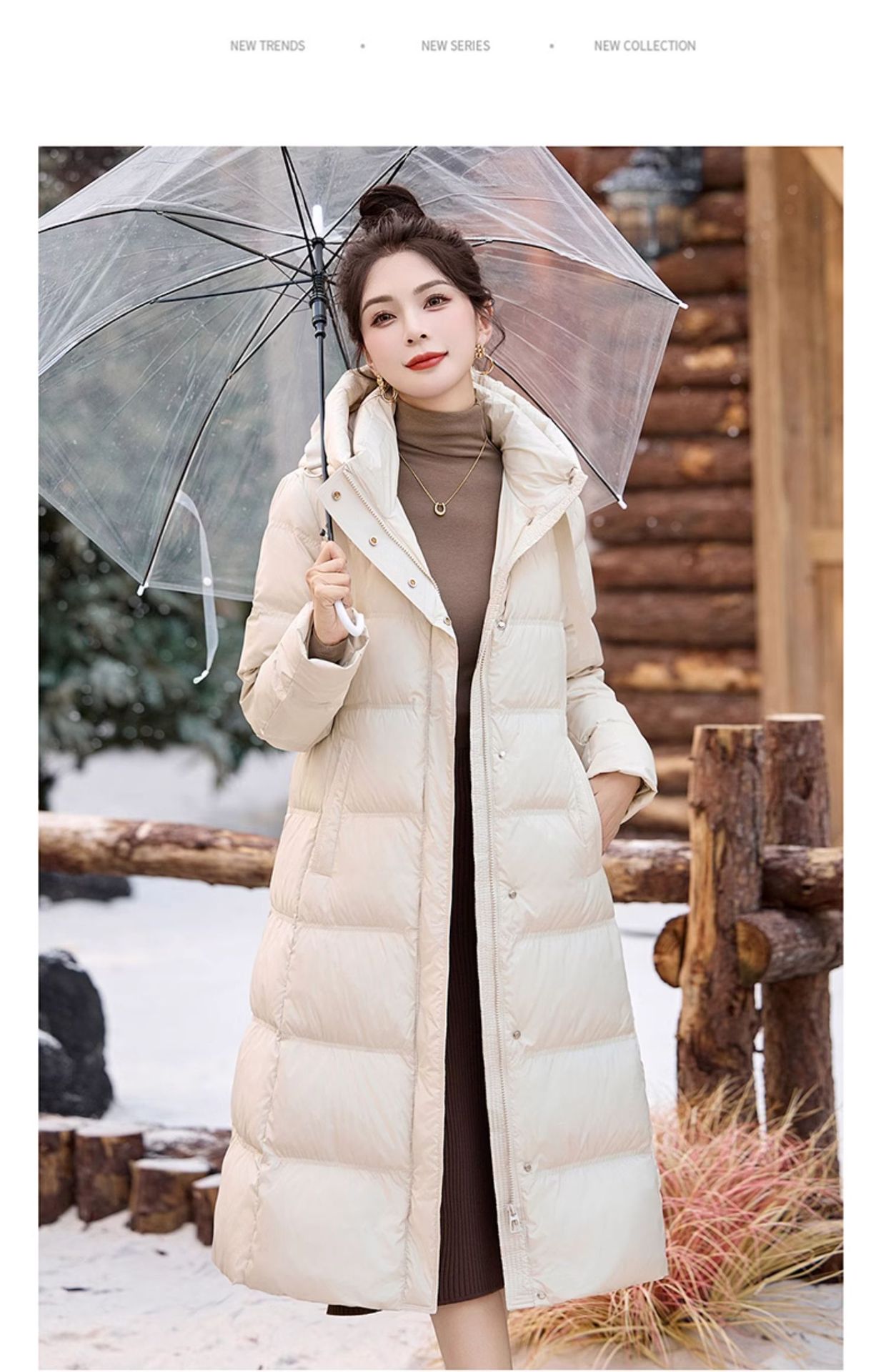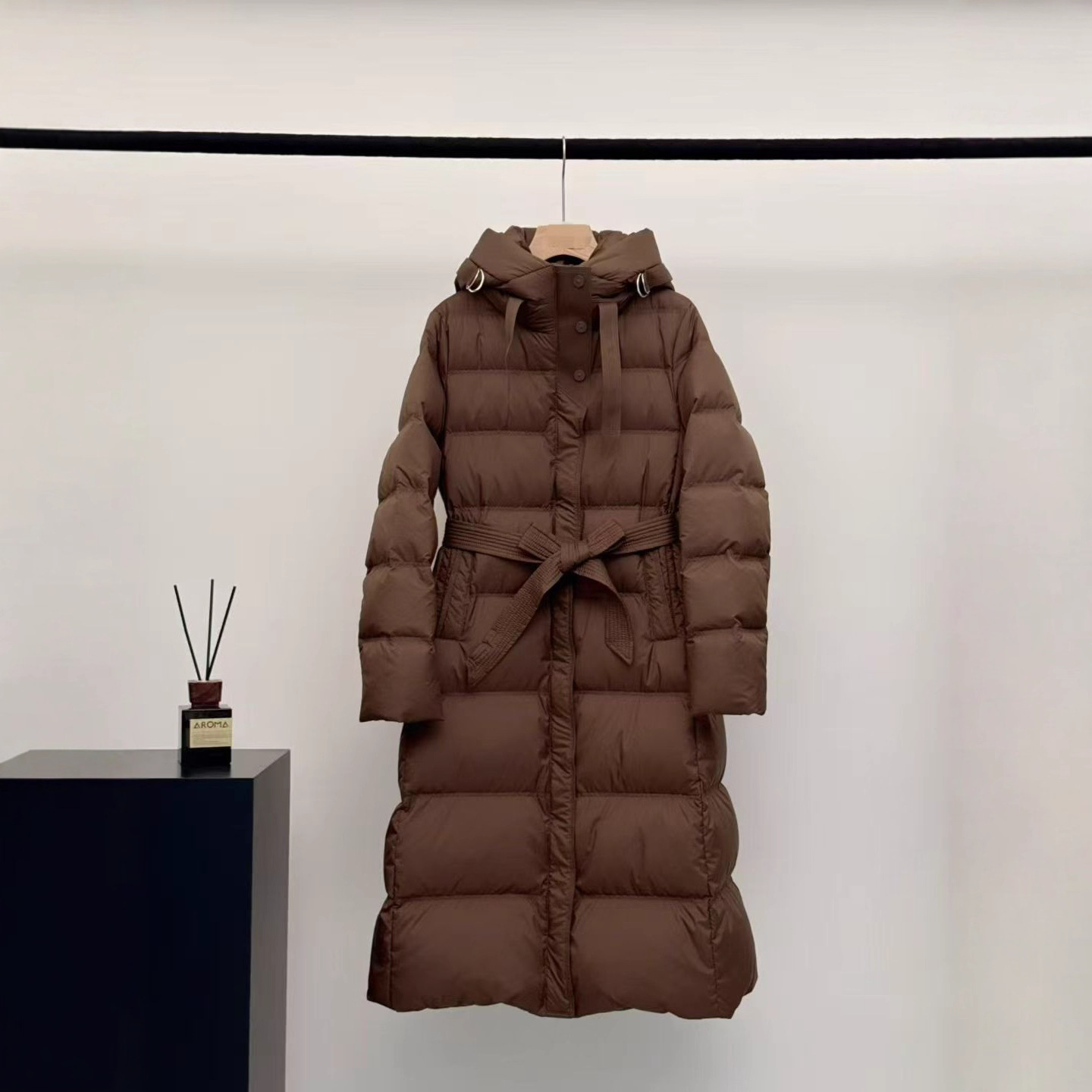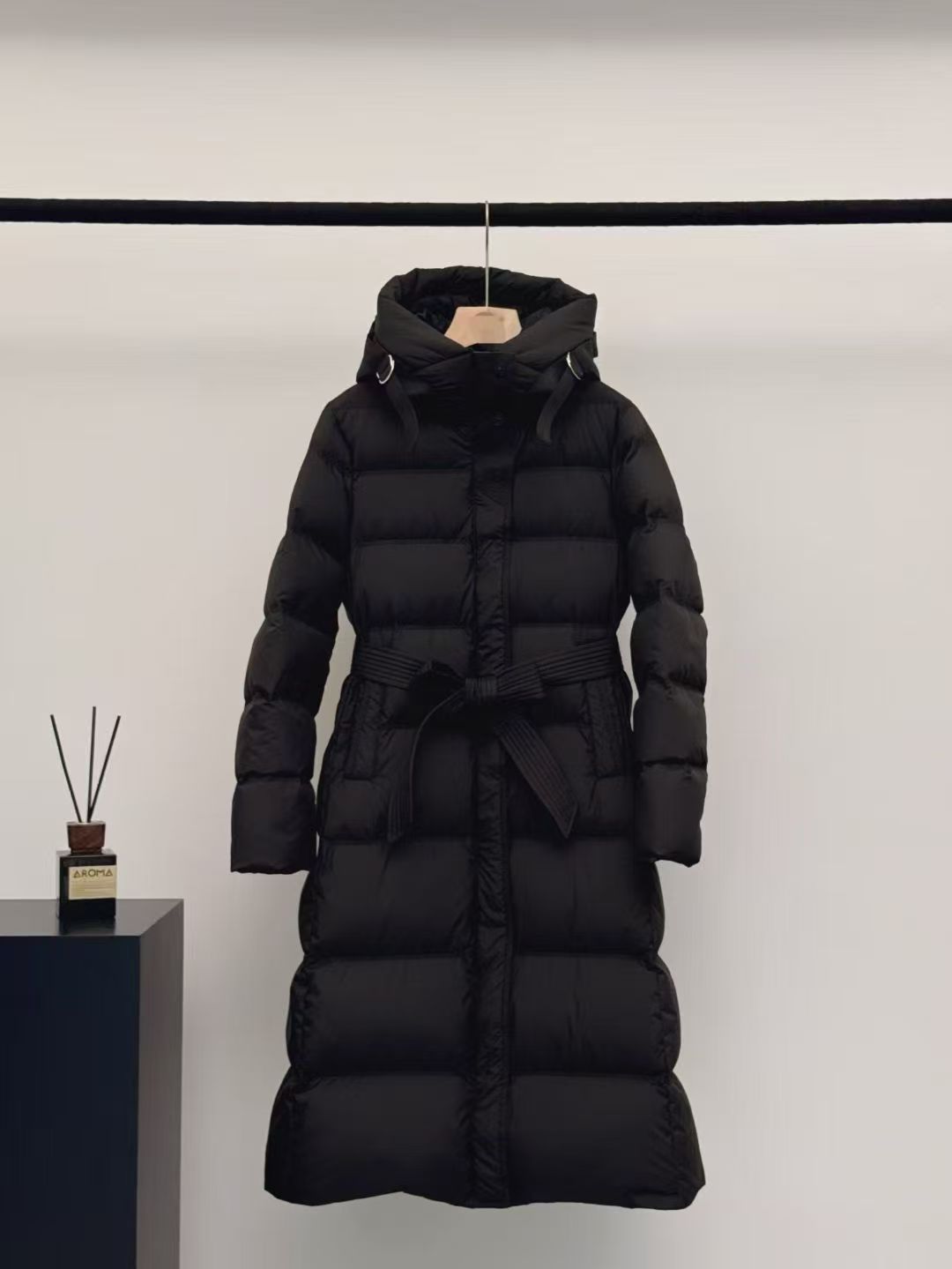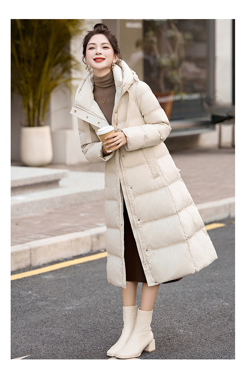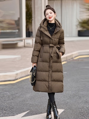 商品名称:鹅绒服女长款过膝2026冬季新款连帽收腰修身显瘦加厚鹅绒腰带外套