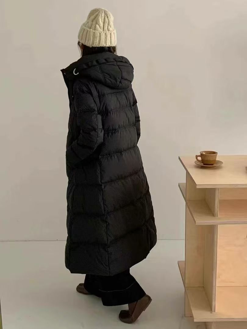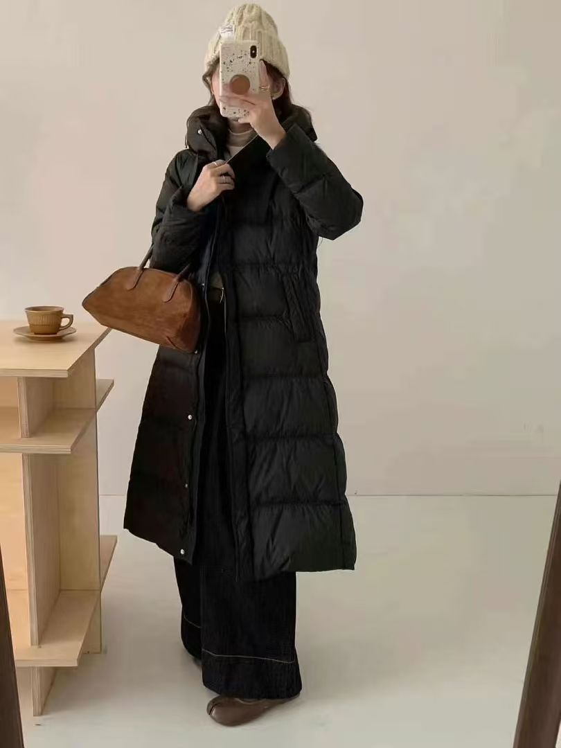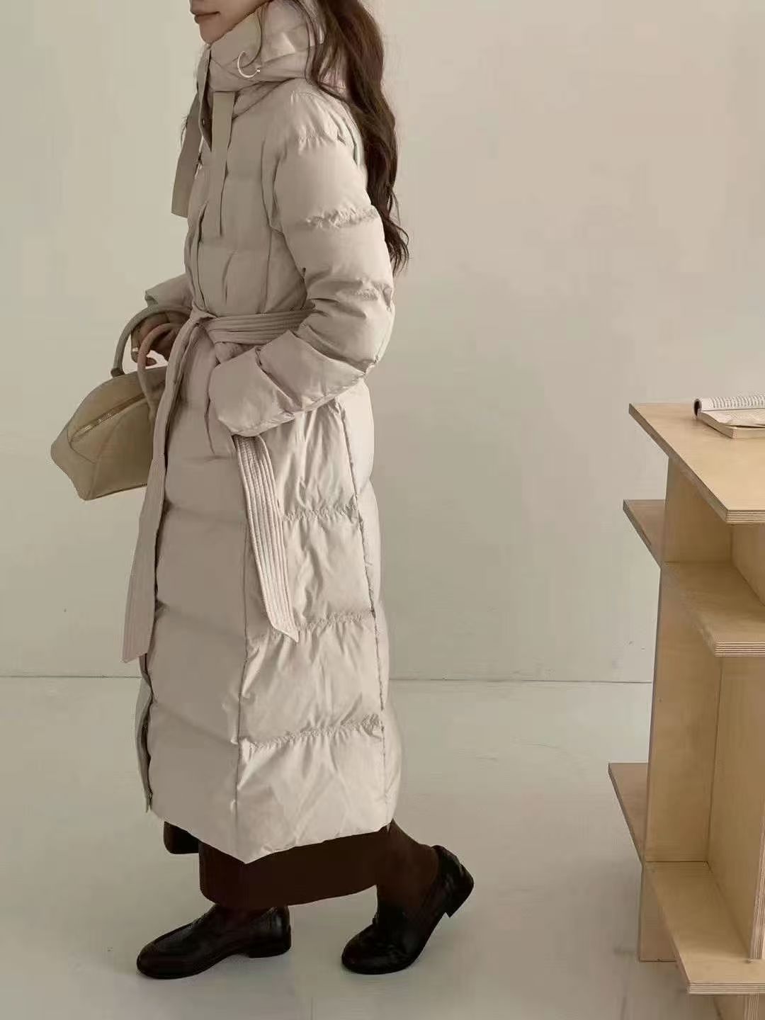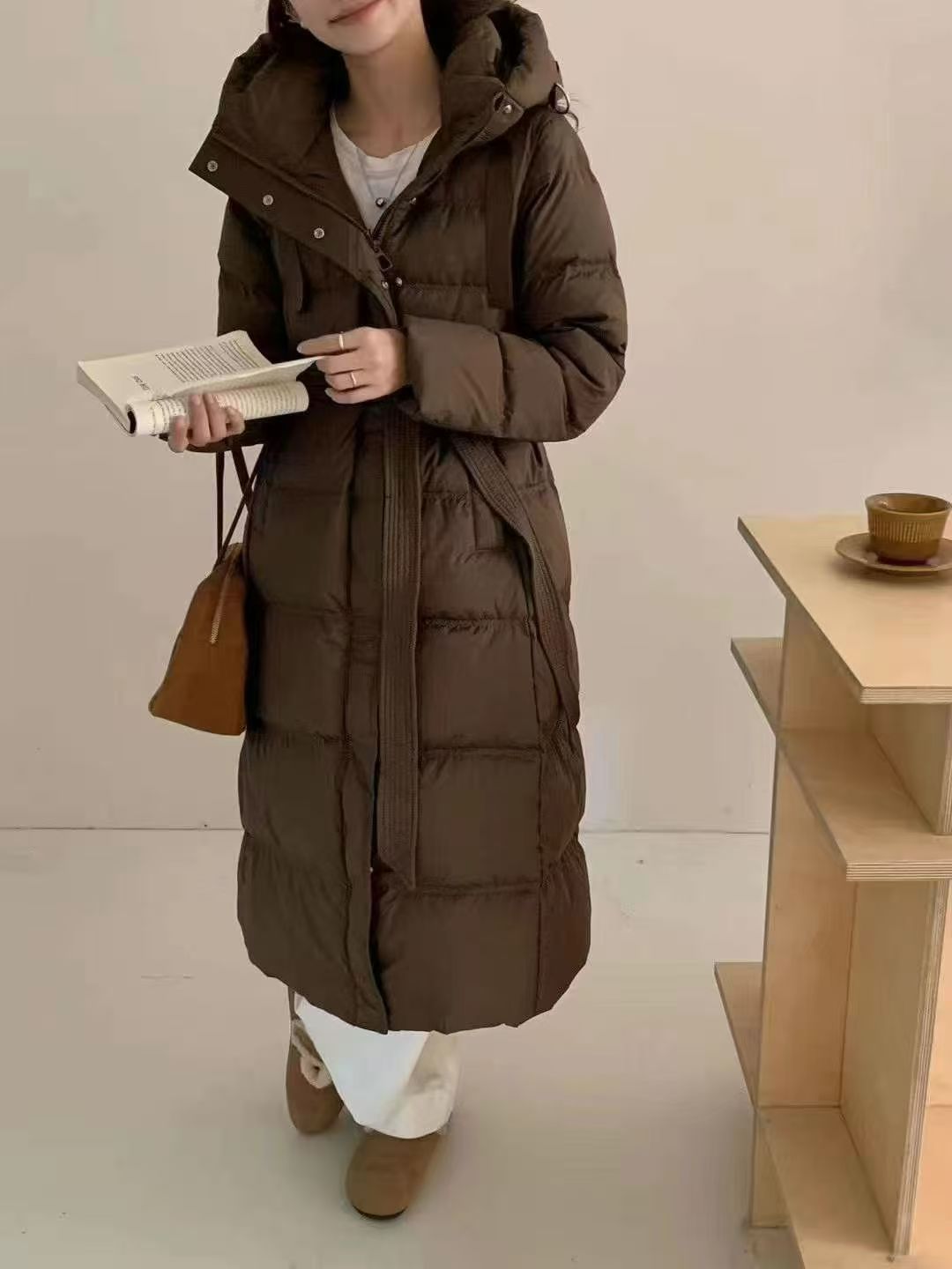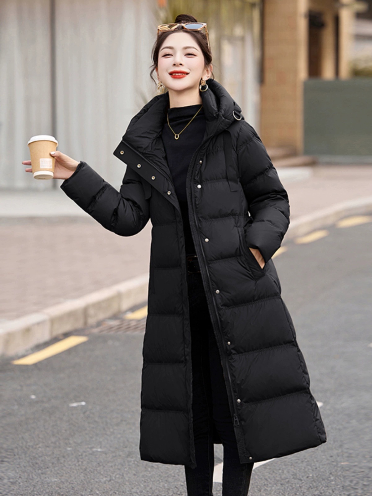 商品名称:鹅绒服女长款过膝2026冬季新款连帽收腰修身显瘦加厚鹅绒腰带外套