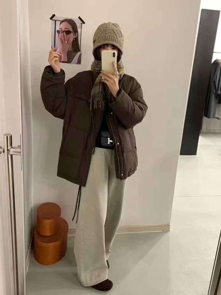 商品名称:韩版2026新款小个子鹅绒服女加厚百搭面包服短款宽松显瘦立领外套