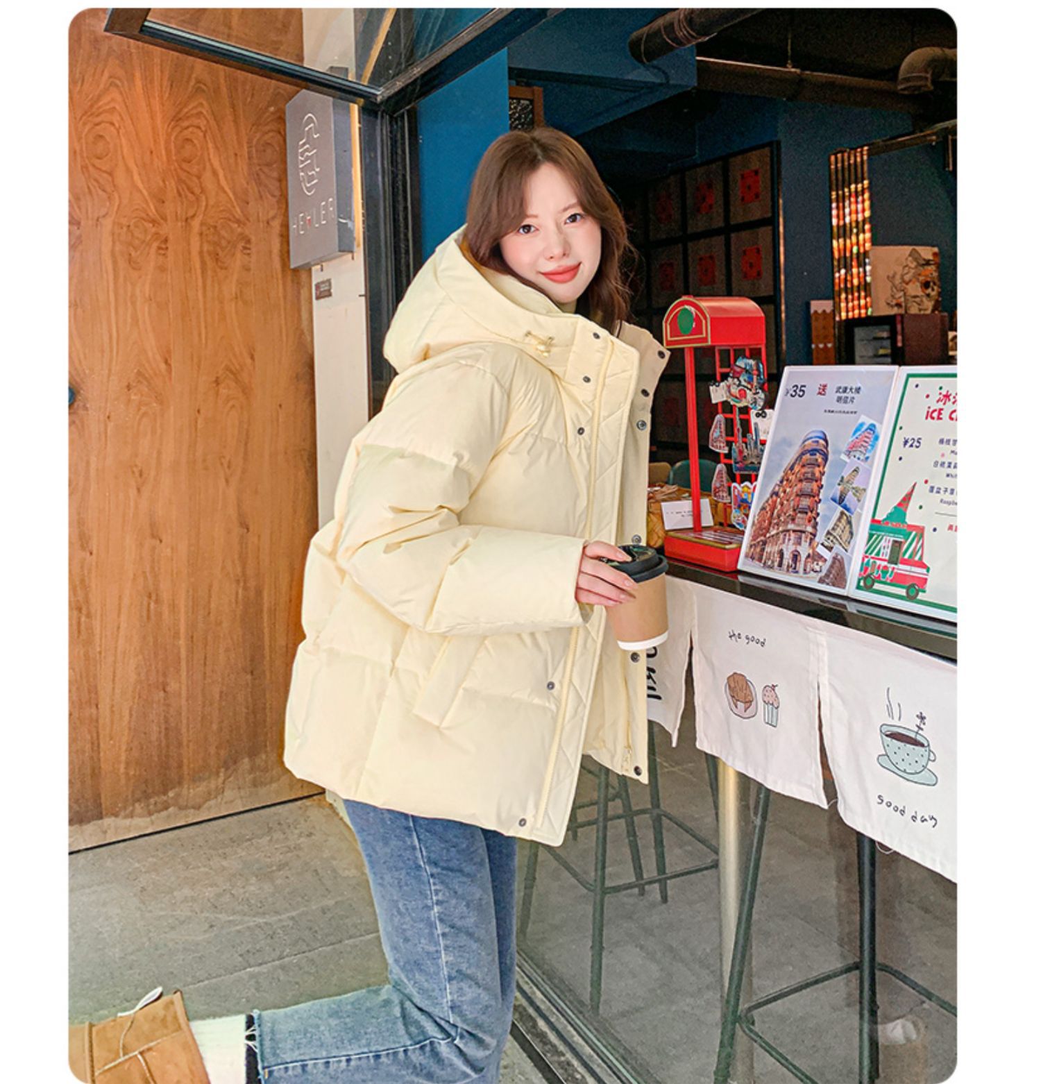 商品名称:反季短款90白鹅绒女冬季2026新款小个子宽松加厚羽绒服外套