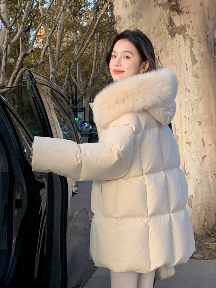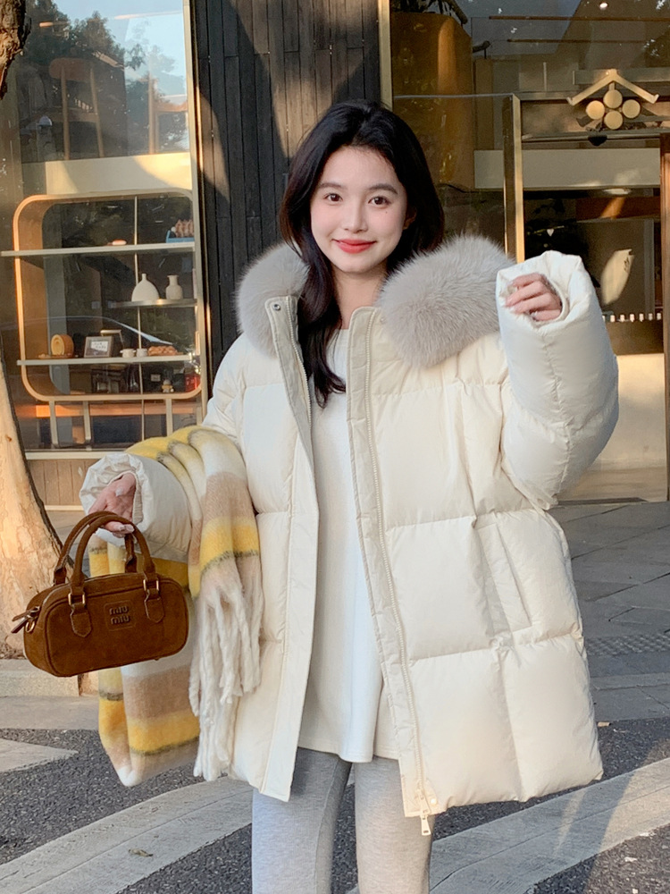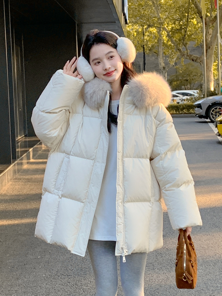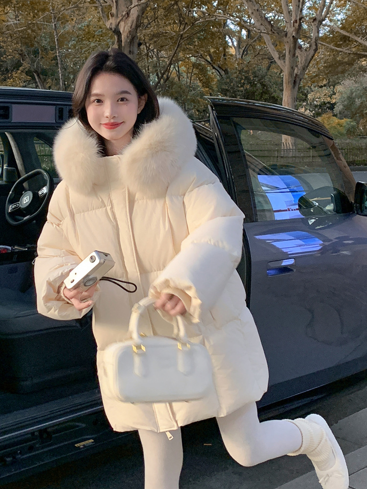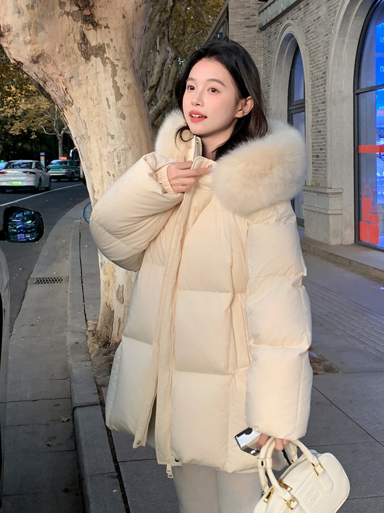 莫斯科的冬小个子90鹅绒服女2026韩系超好看中长真大狐狸毛领外套
