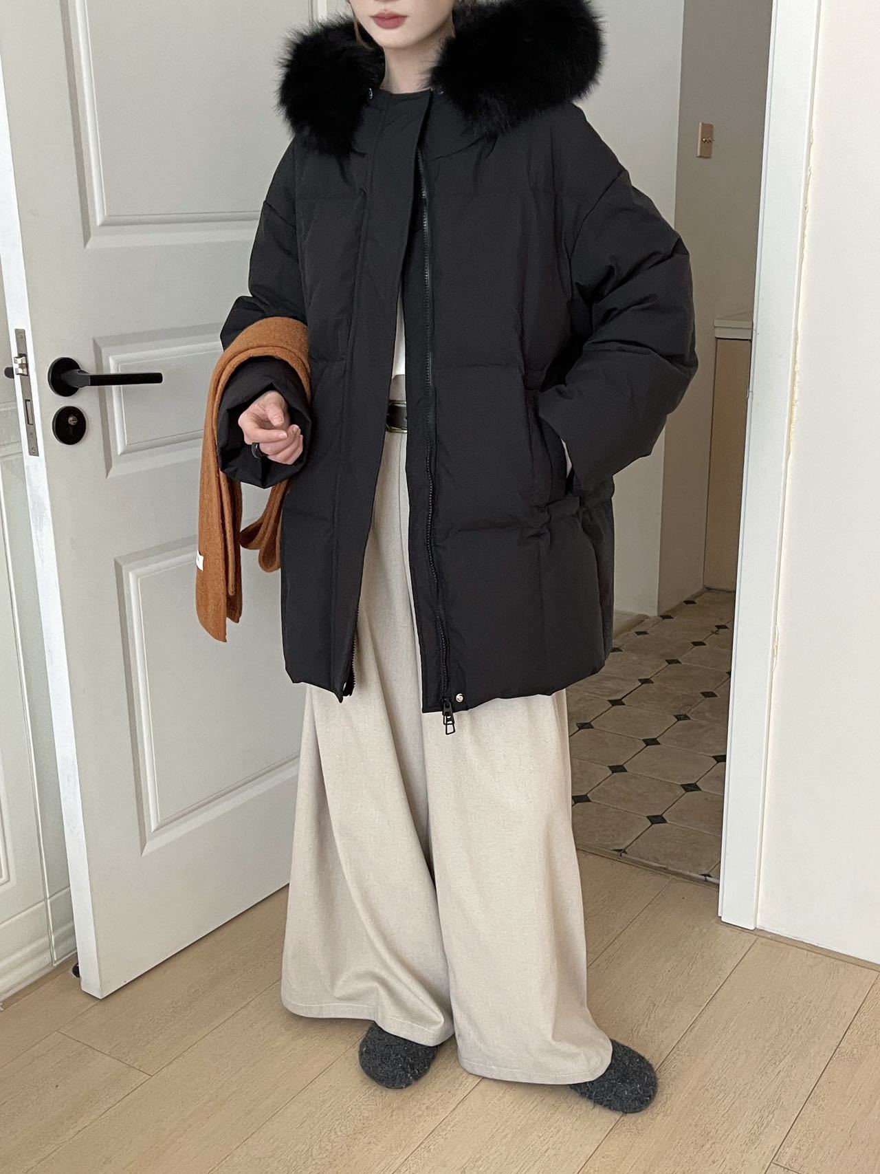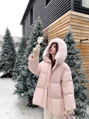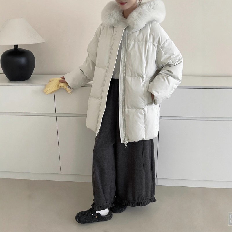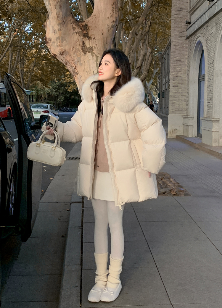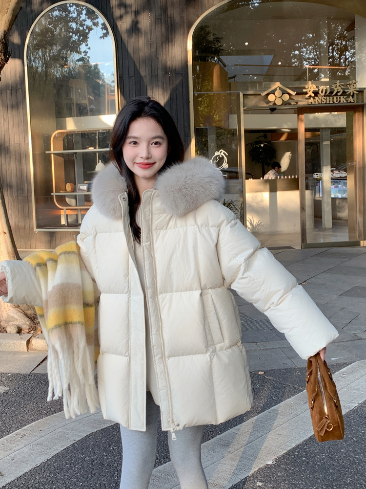 莫斯科的冬小个子90鹅绒服女2026韩系超好看中长真大狐狸毛领外套