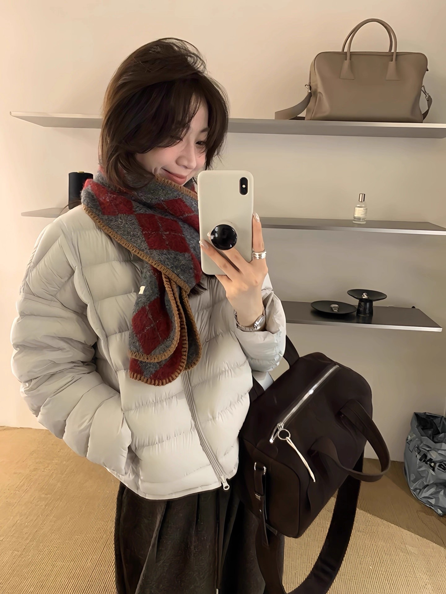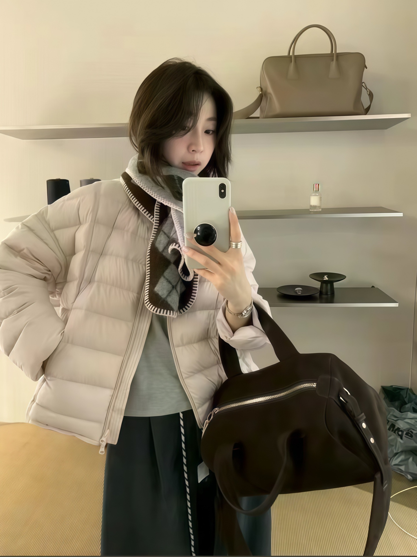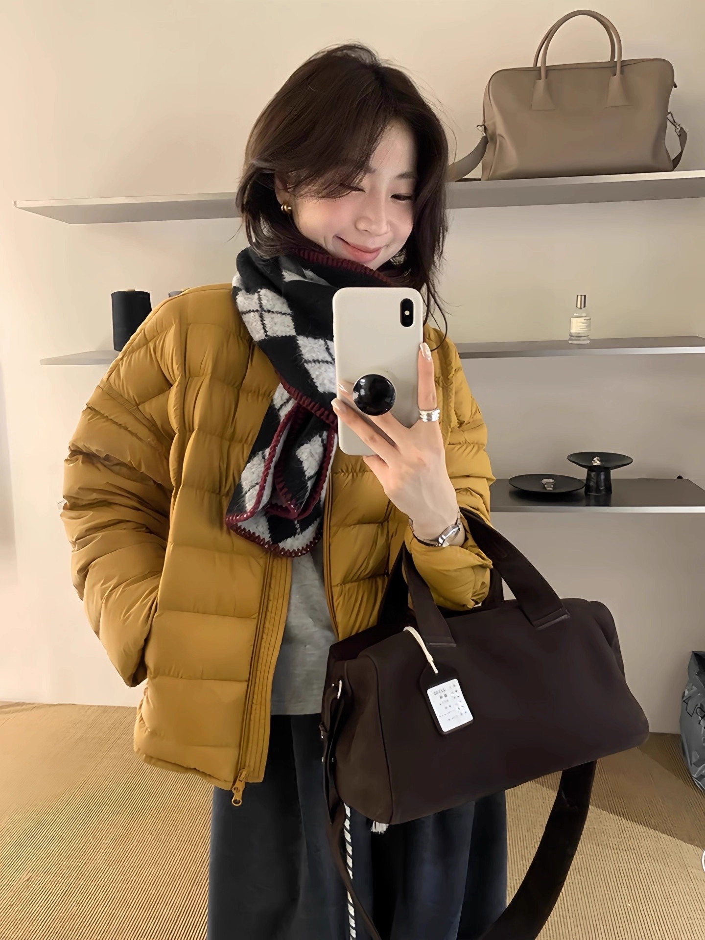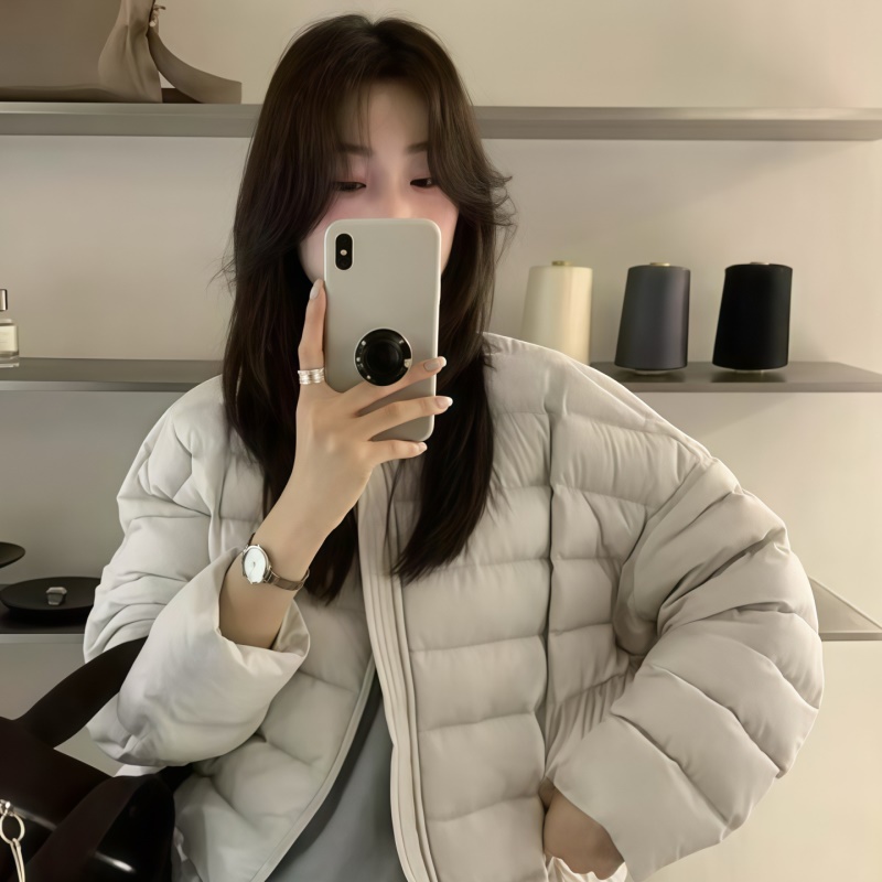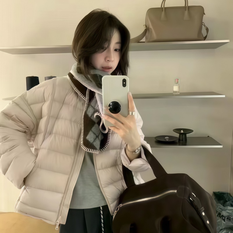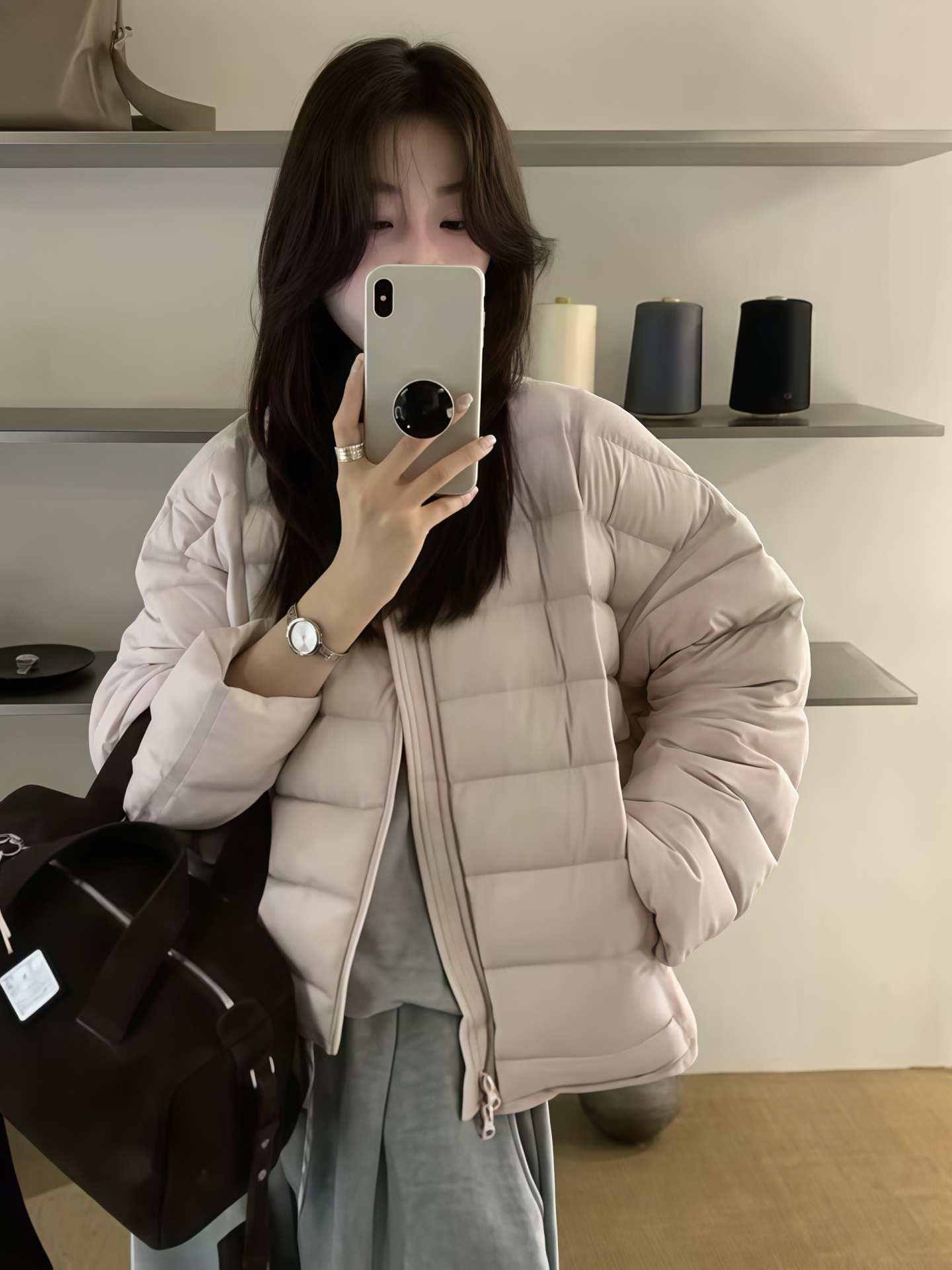 2026冬新款韩版排骨90白鹅绒女短款小个子圆领百搭羽绒服保暖外套