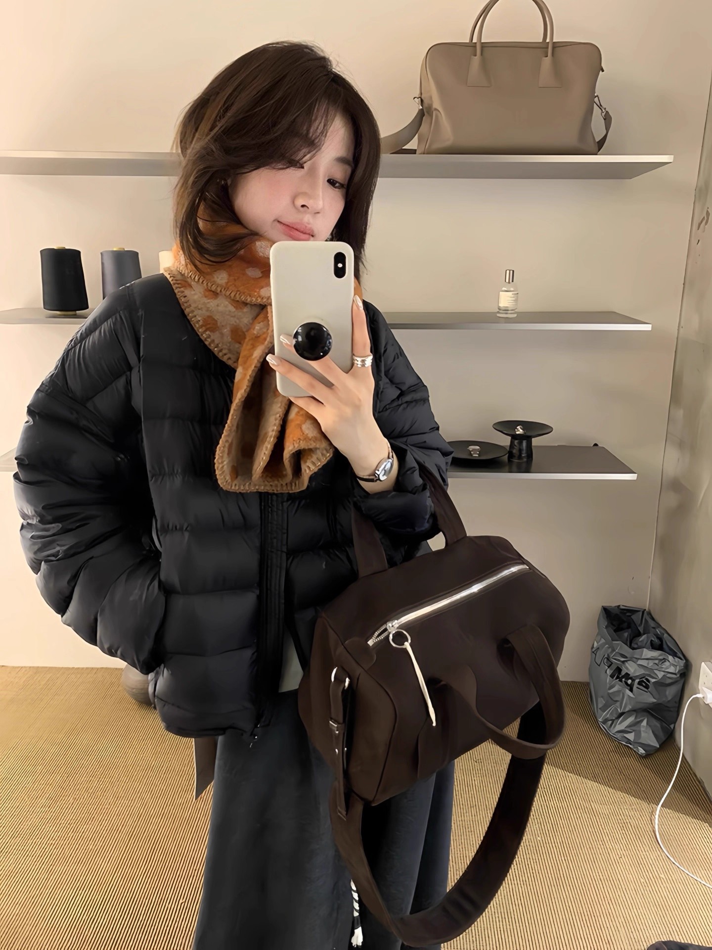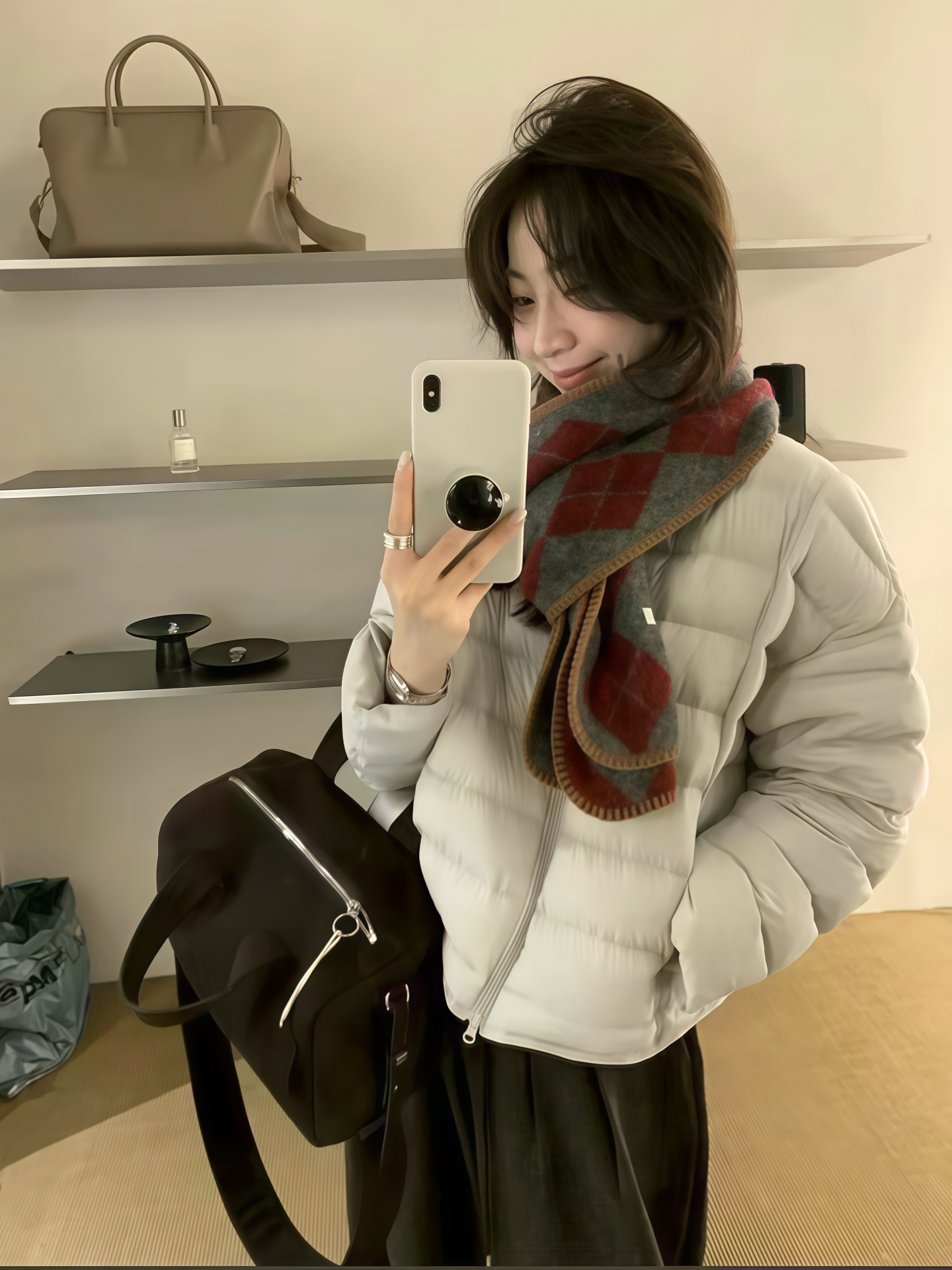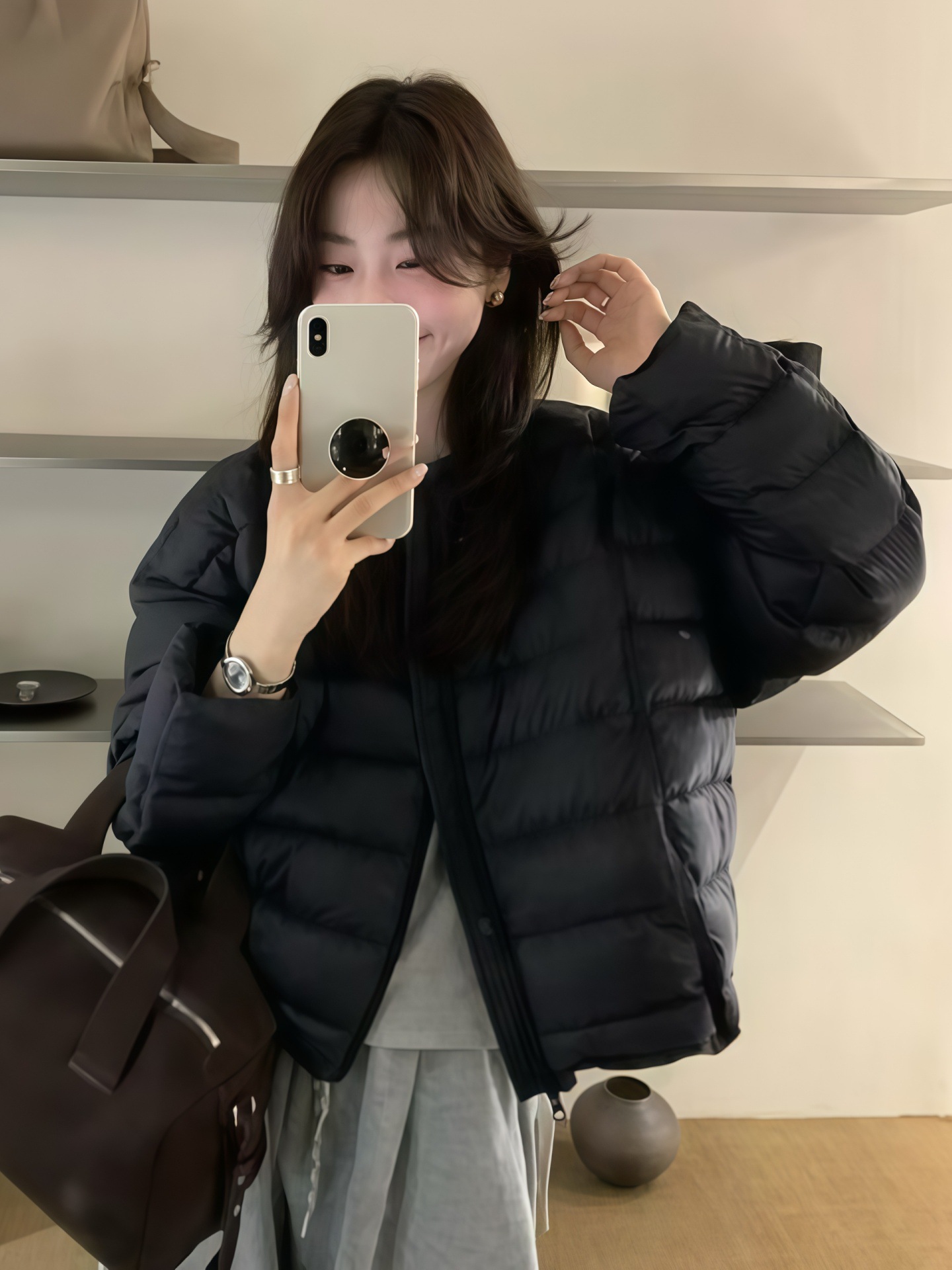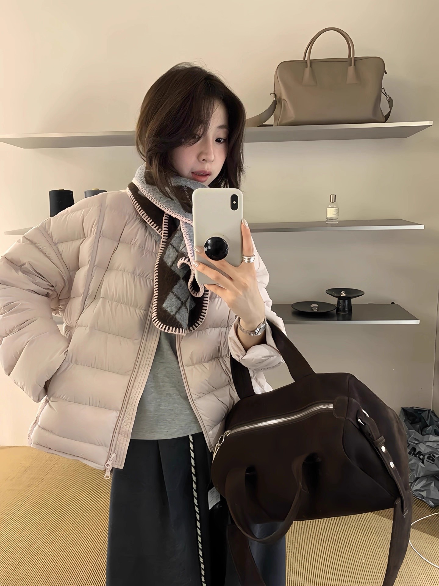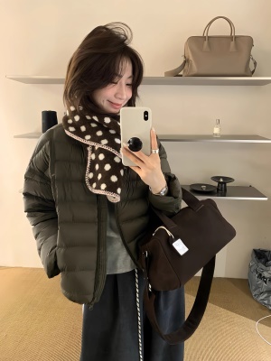 2026冬新款韩版排骨90白鹅绒女短款小个子圆领百搭羽绒服保暖外套