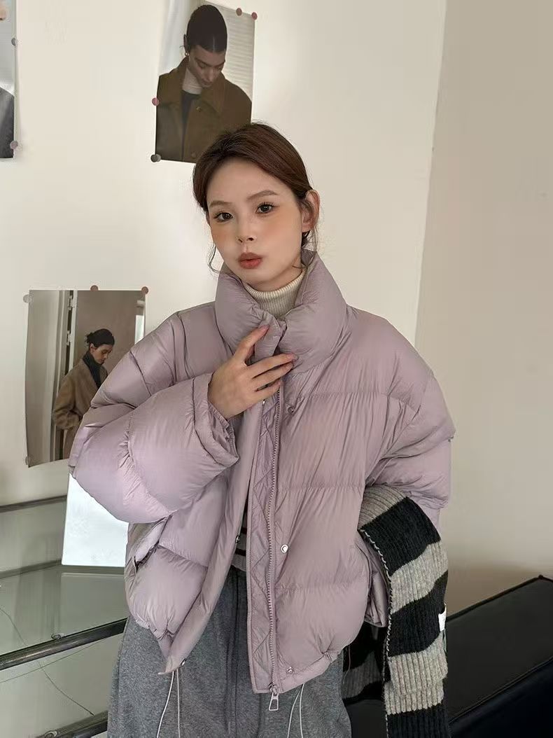 小个子鹅绒服女冬季2026新款短款立领宽松加厚白鹅绒面包服外套潮
