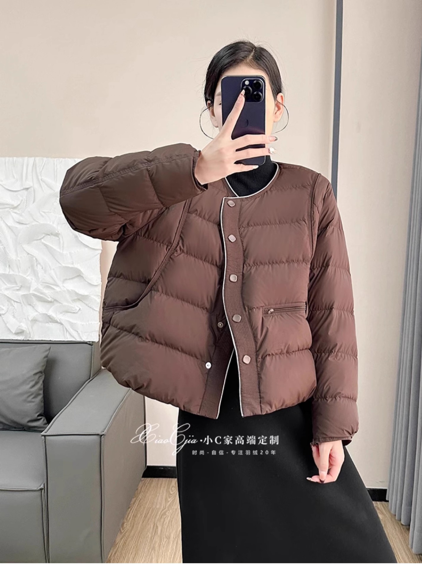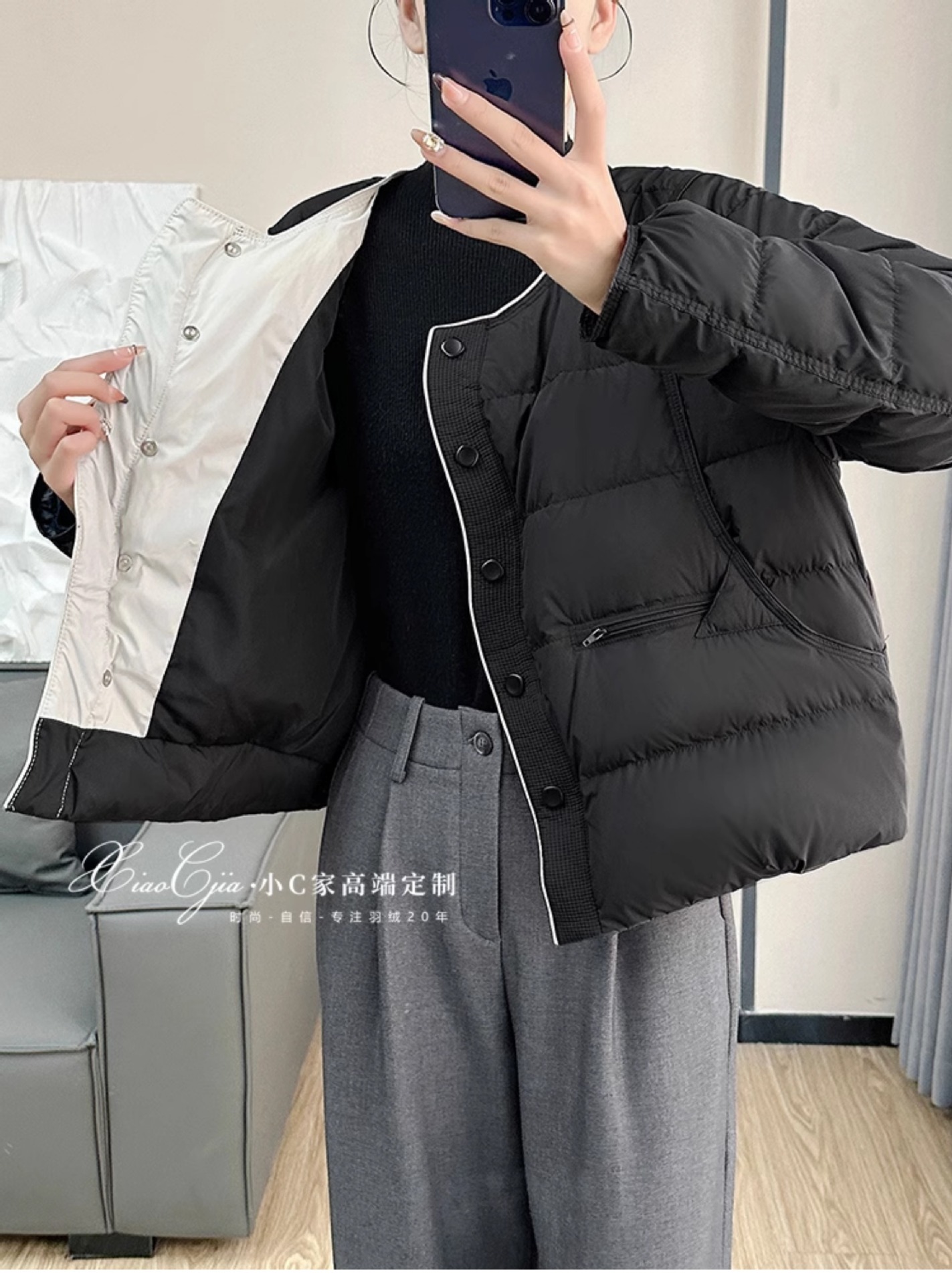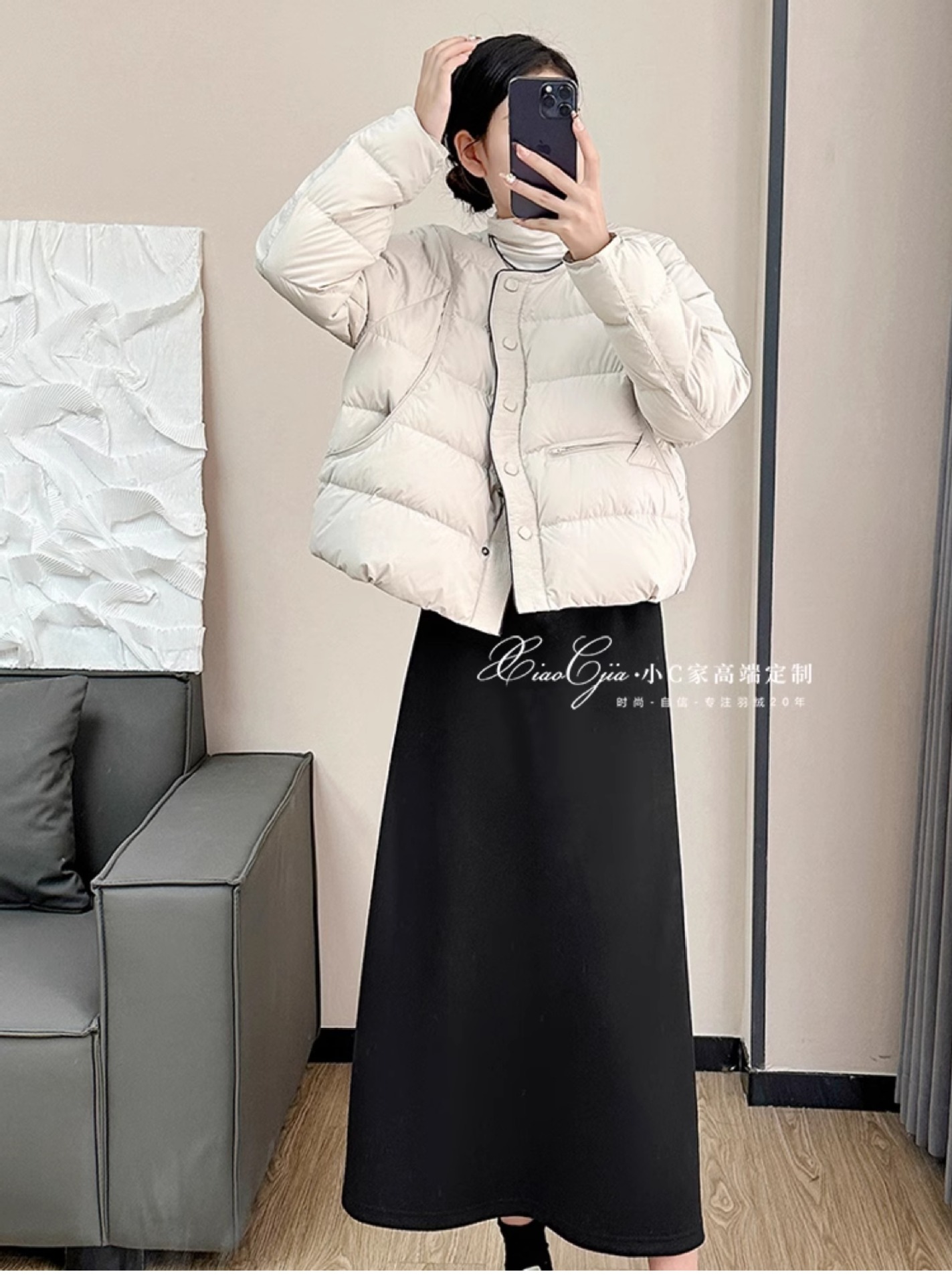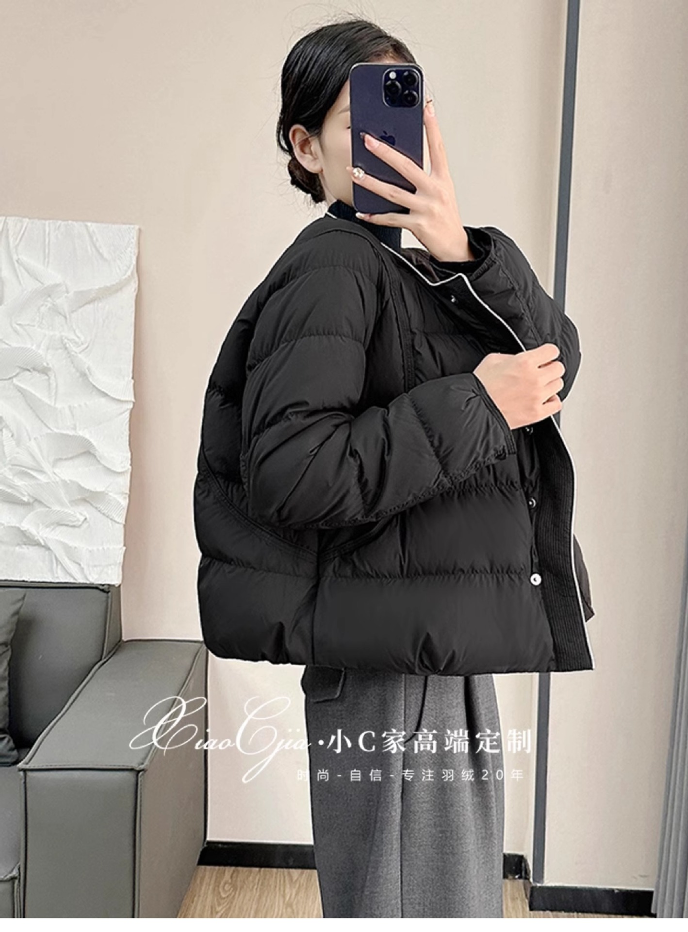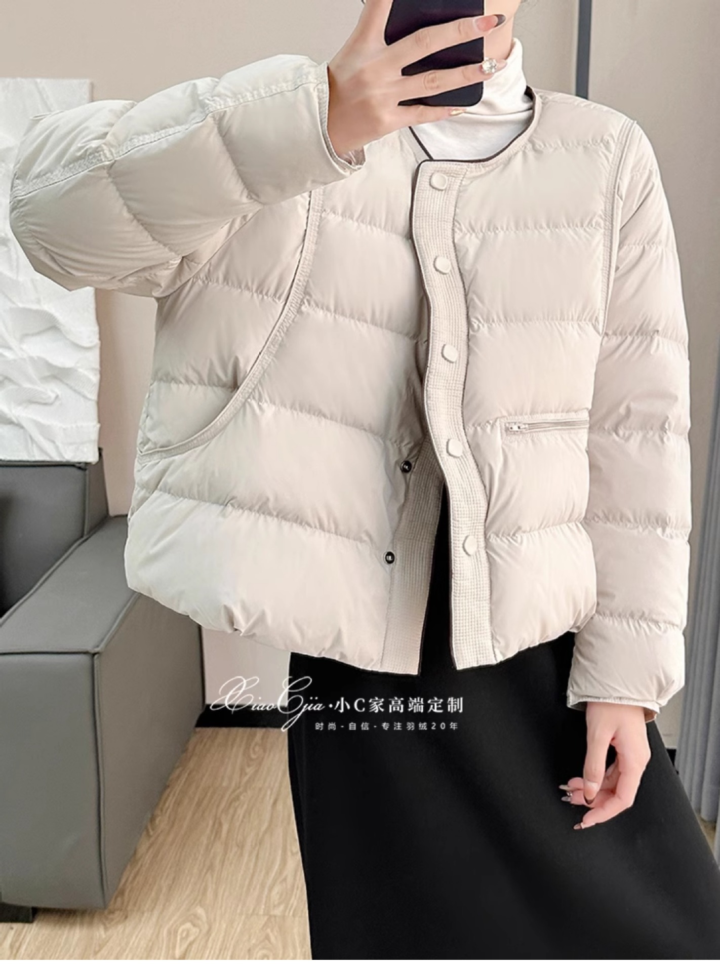 商品名称:鹅绒服女轻薄短款2026年冬季新款爆款时尚圆领小个子宽松保暖外套