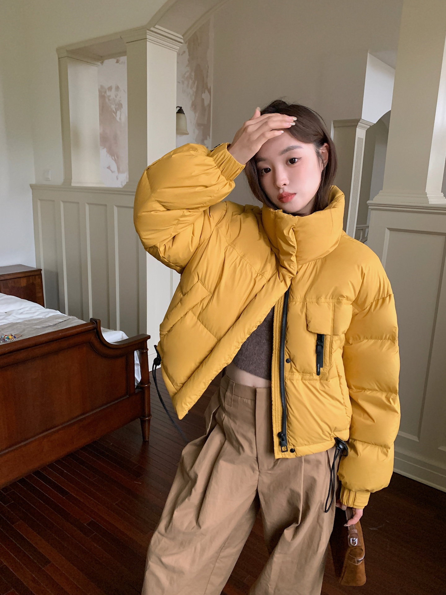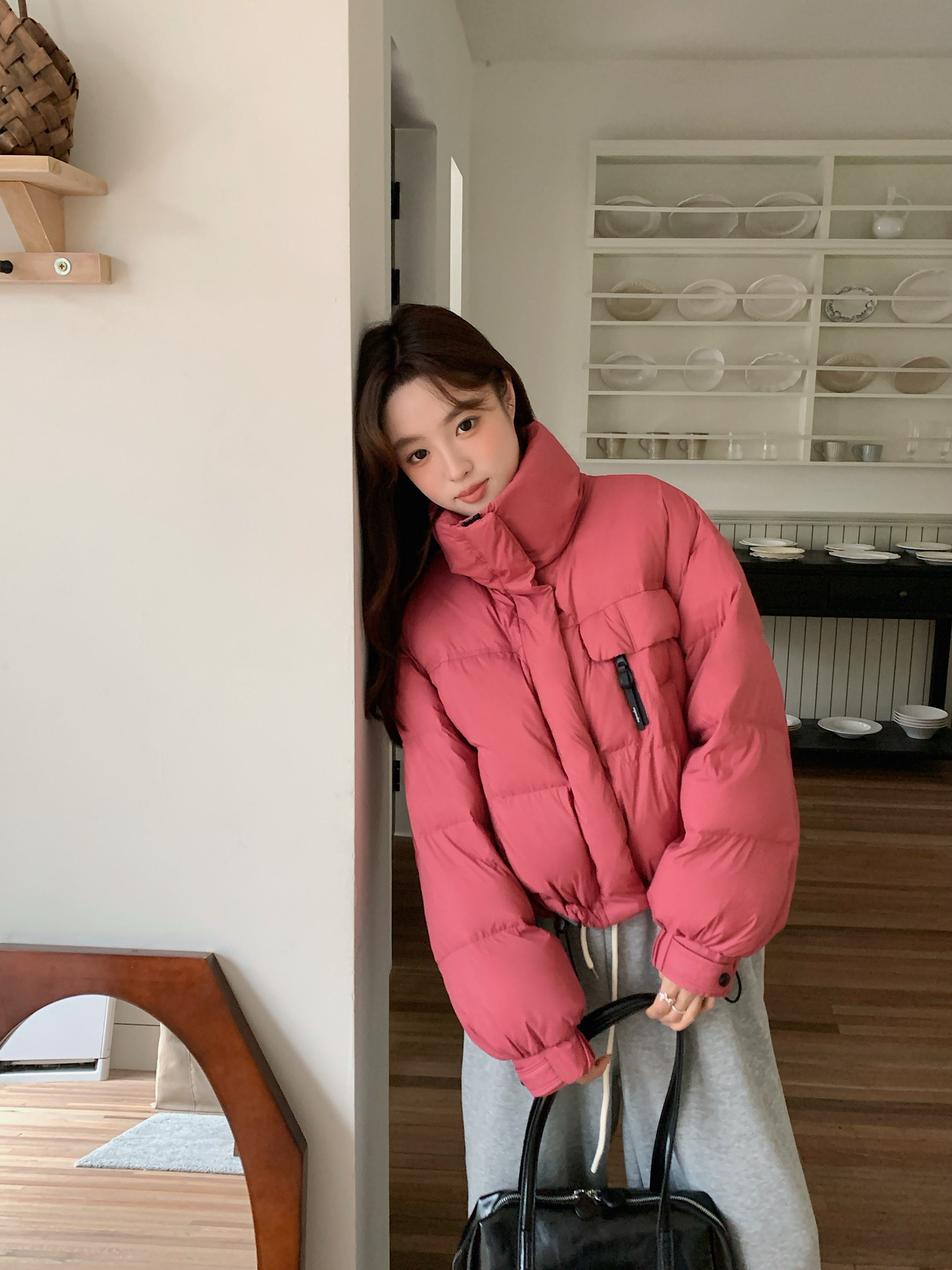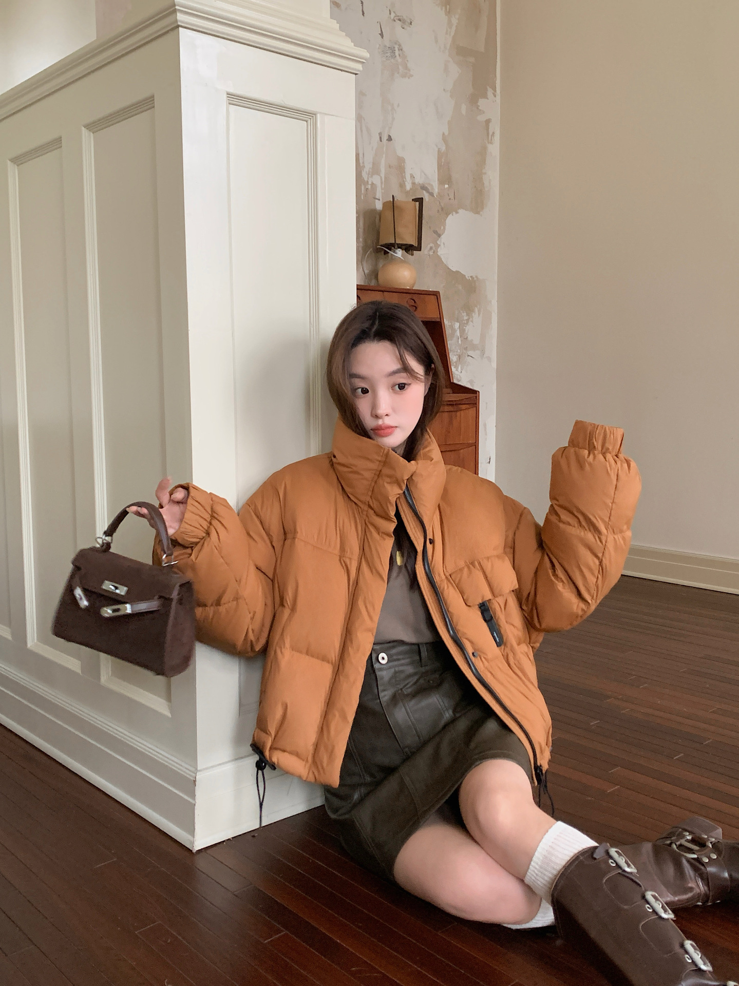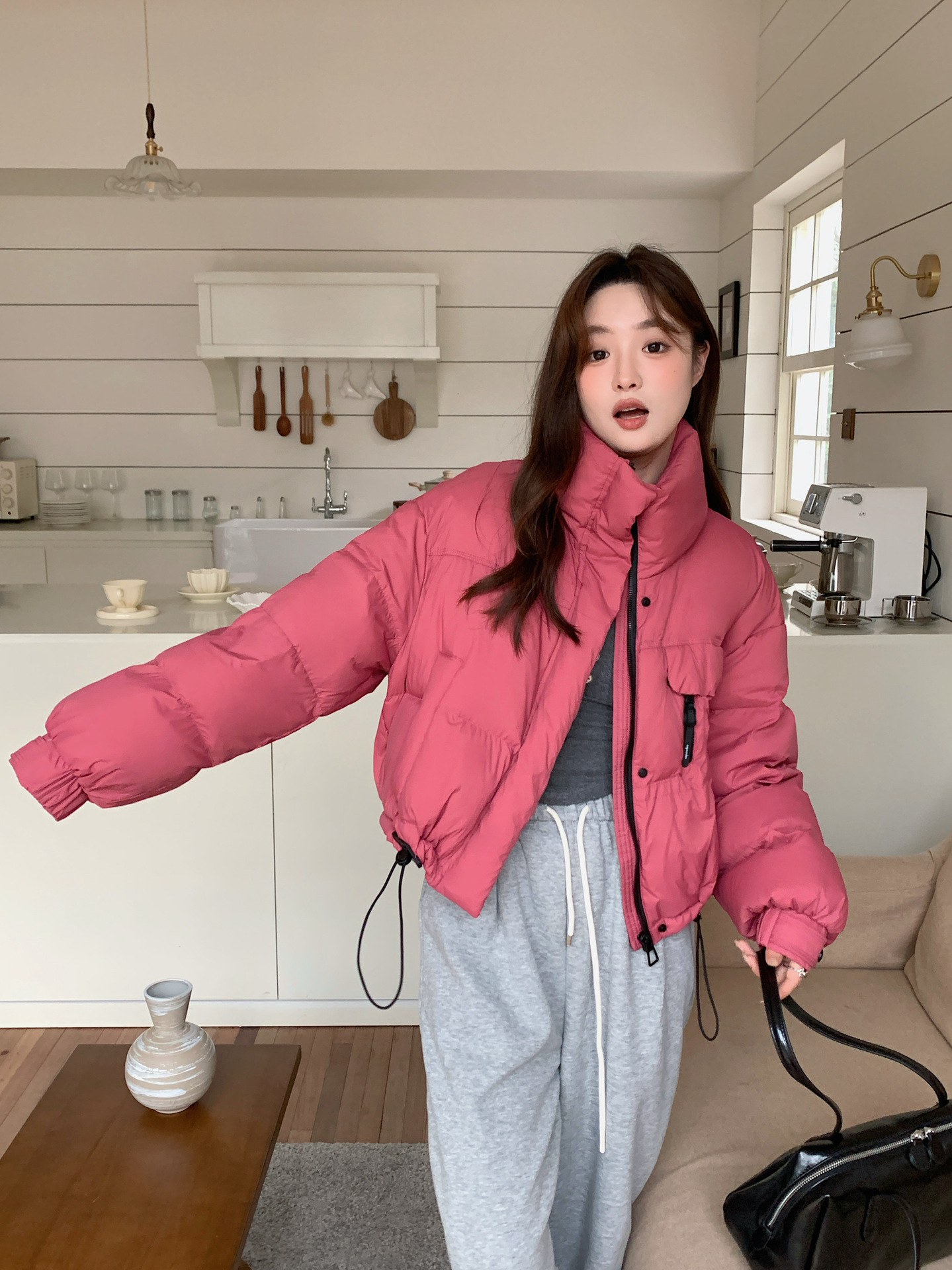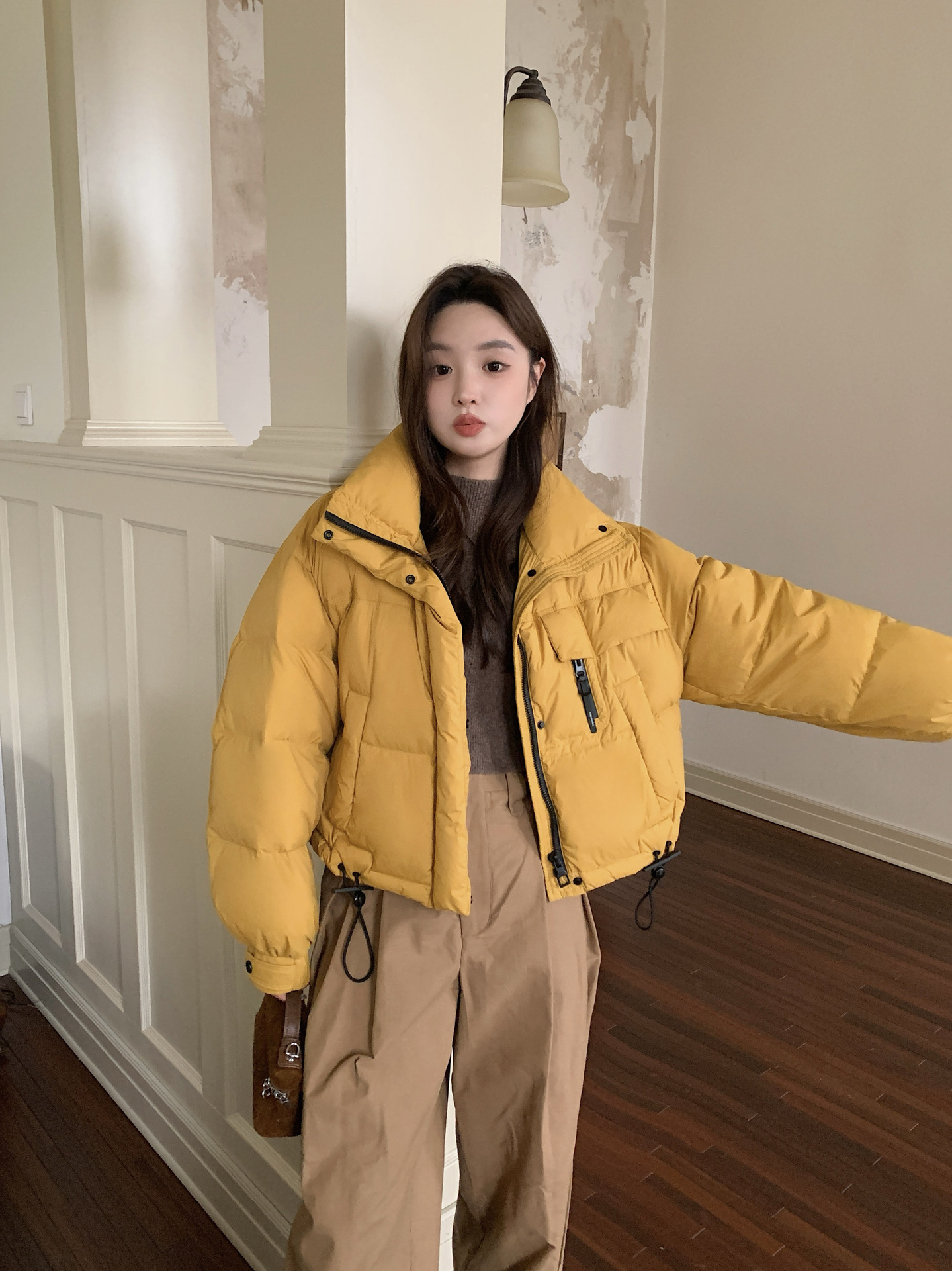 鹅绒服女短款2026新款韩版立领简约加厚小个子超好看面包服外套潮