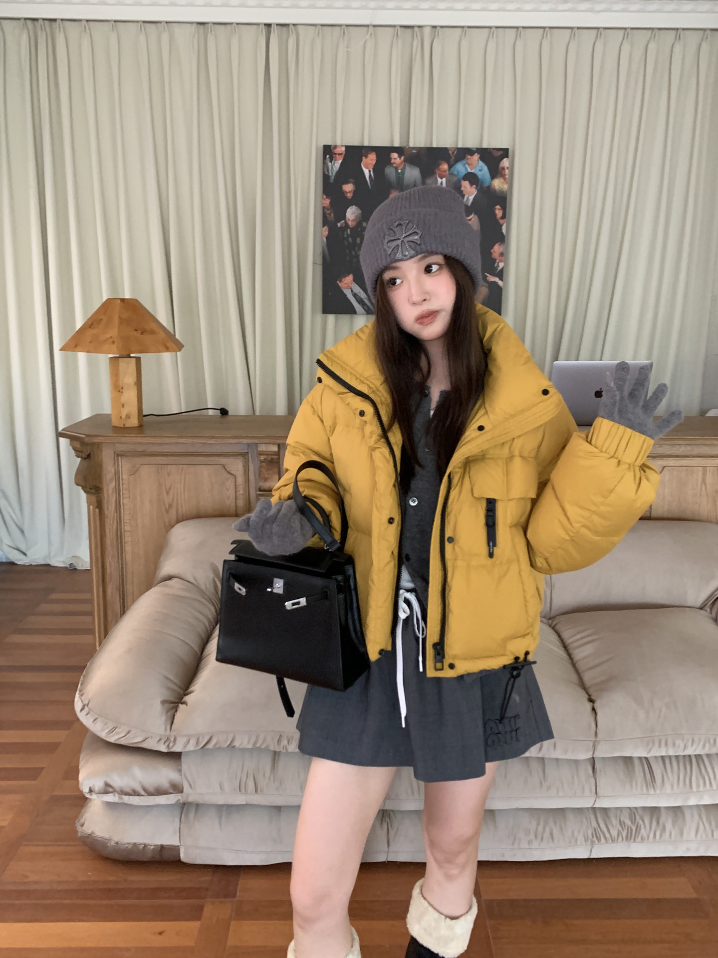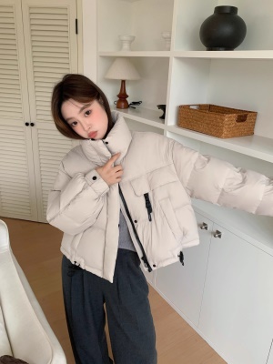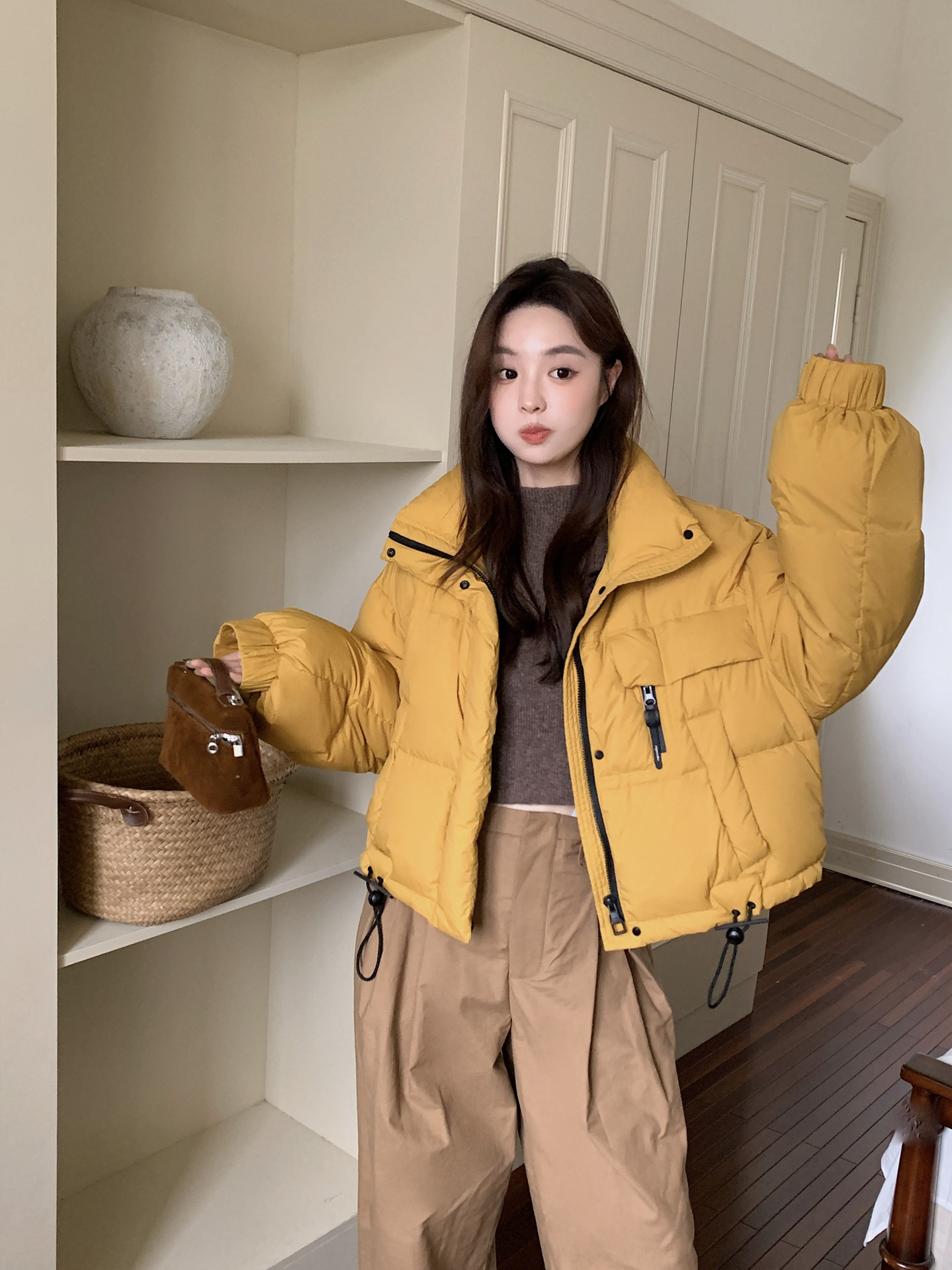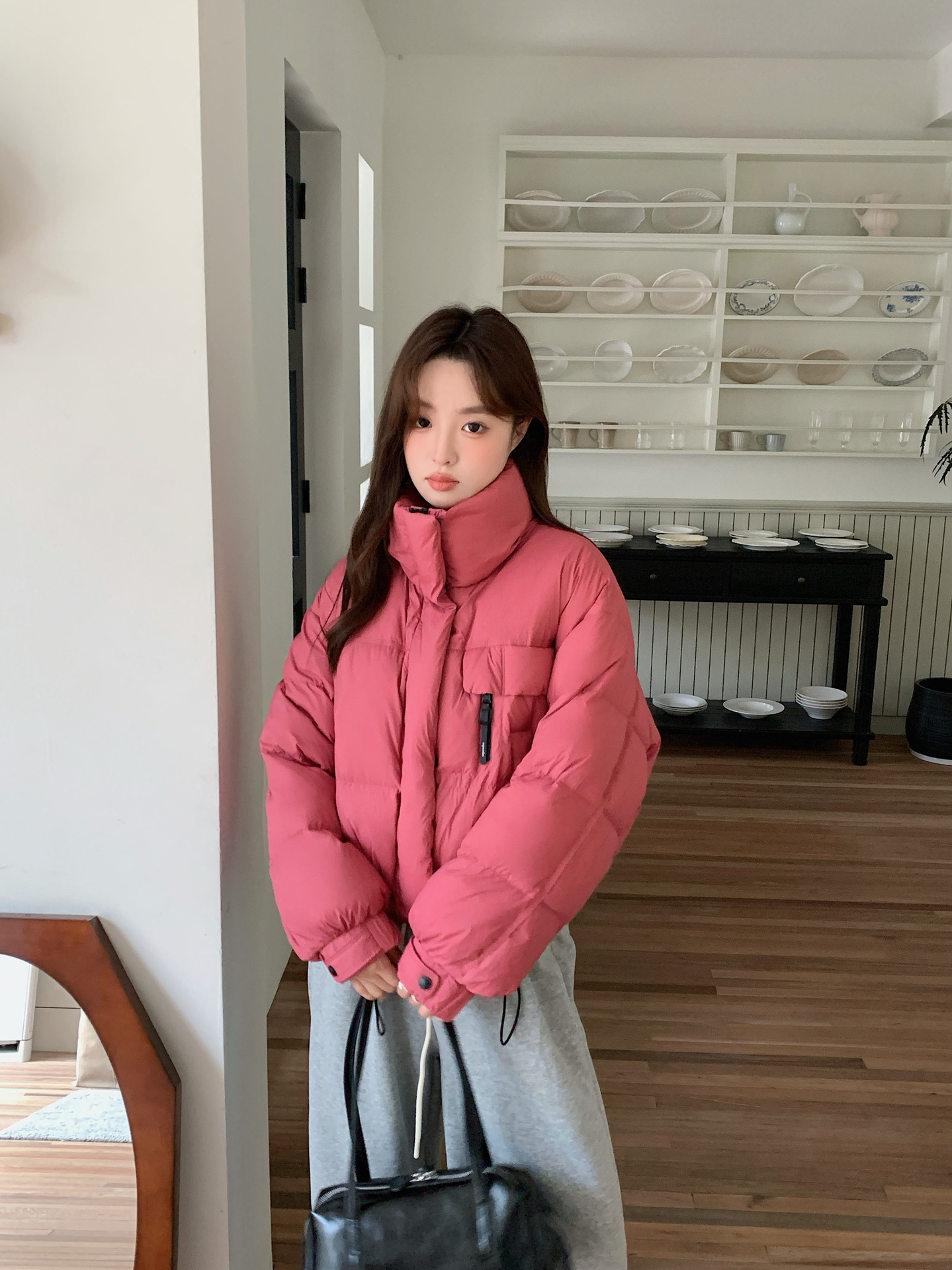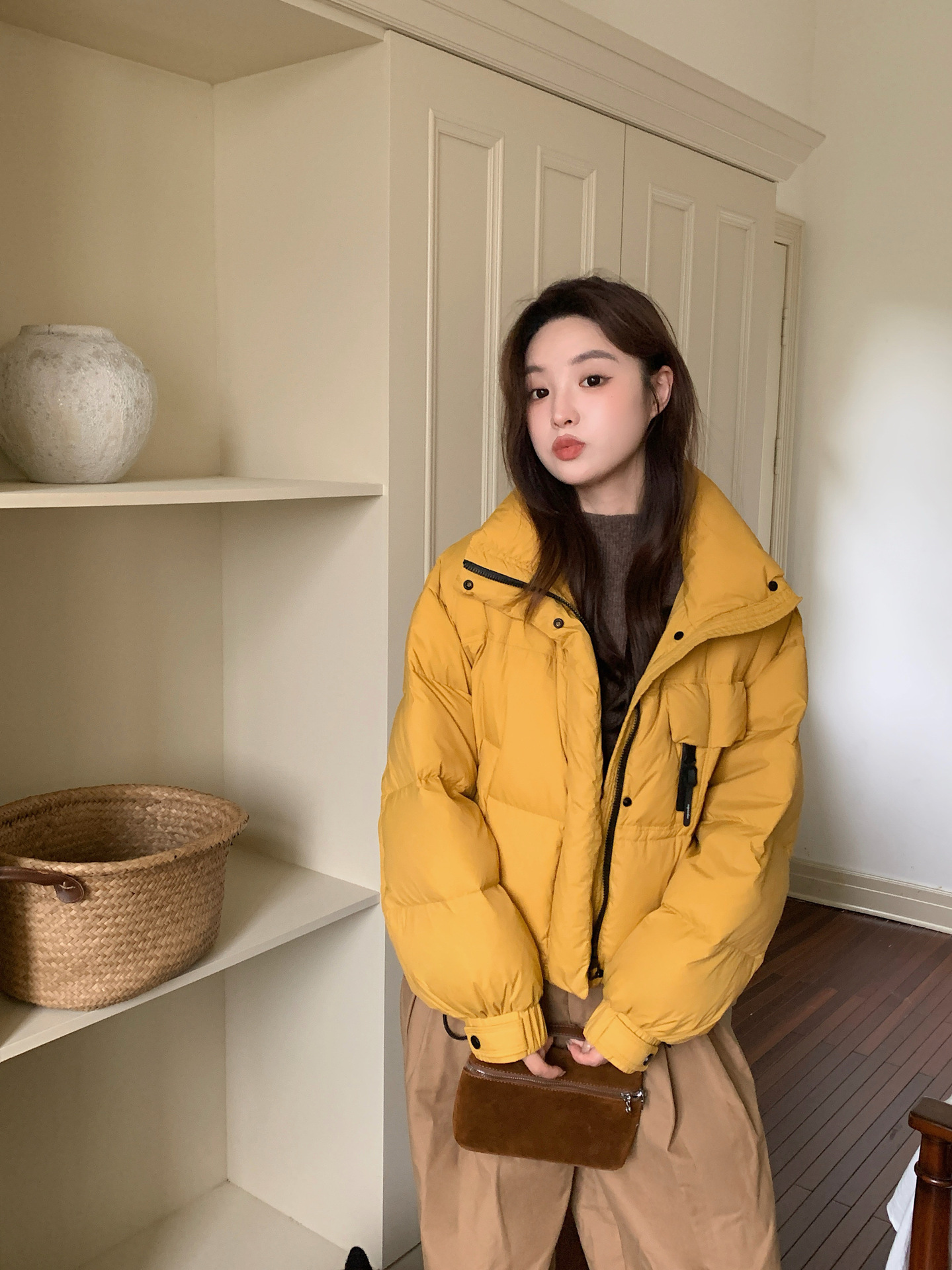 鹅绒服女短款2026新款韩版立领简约加厚小个子超好看面包服外套潮