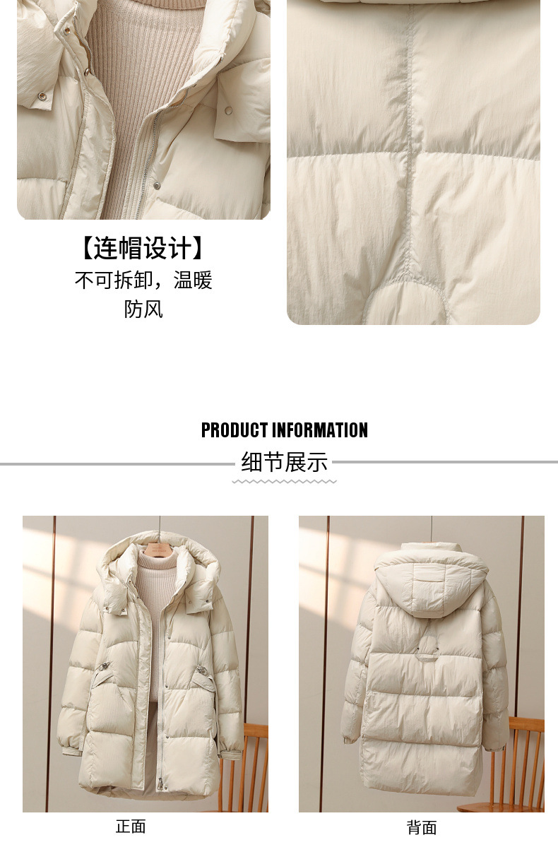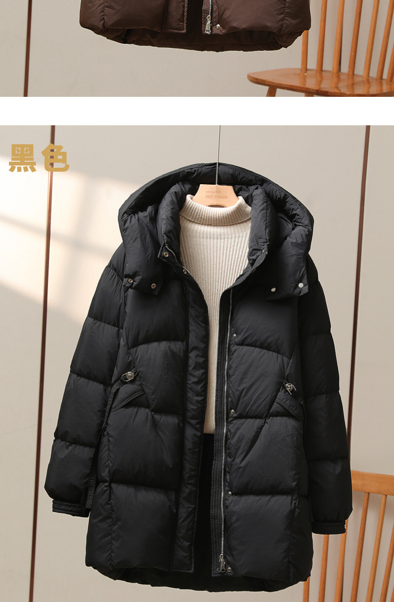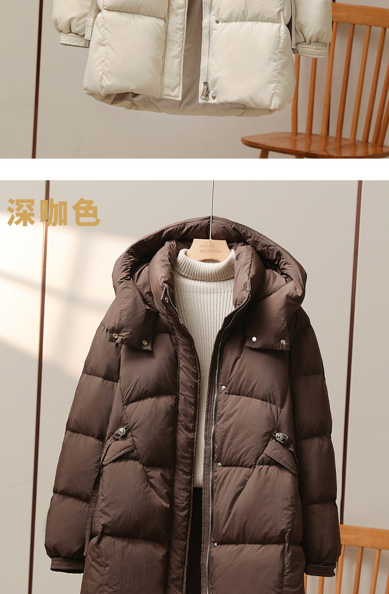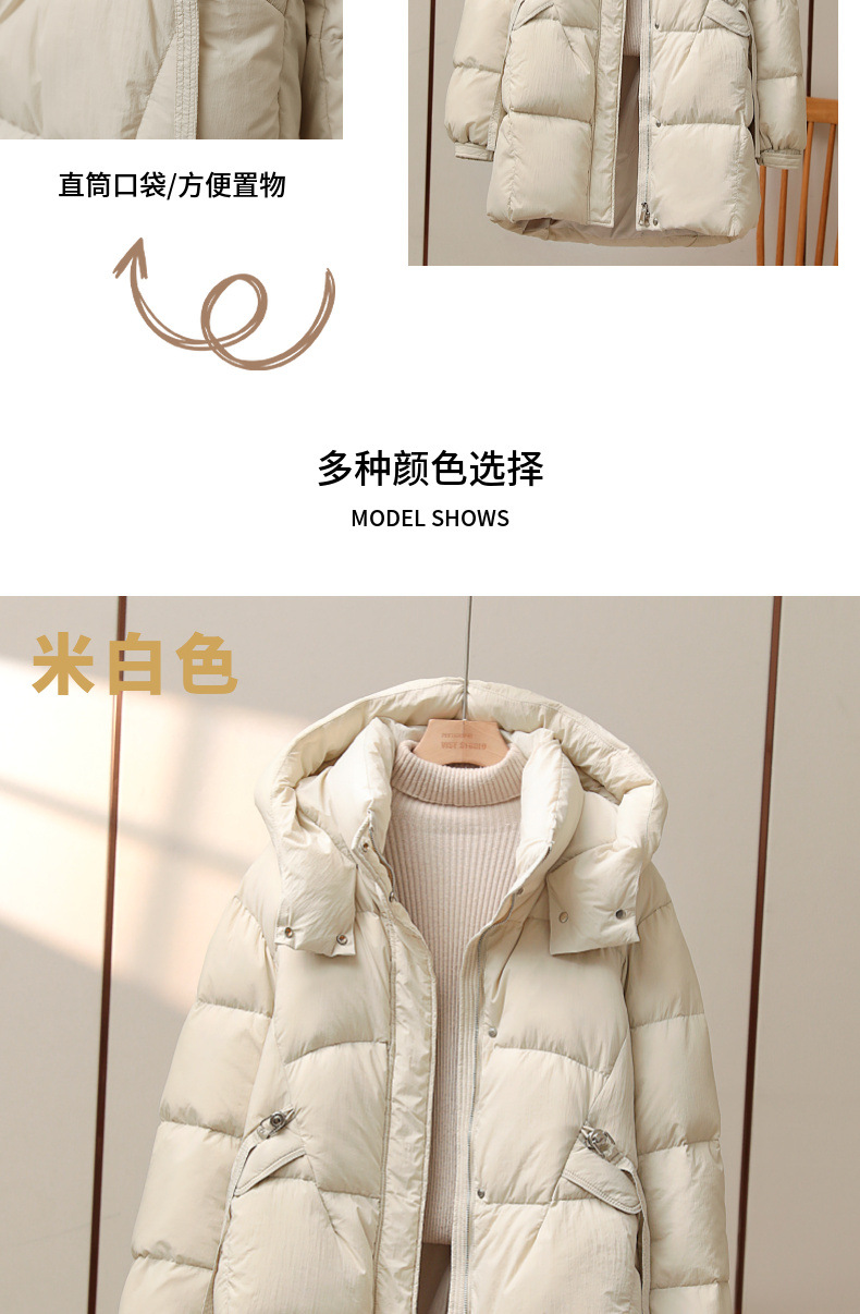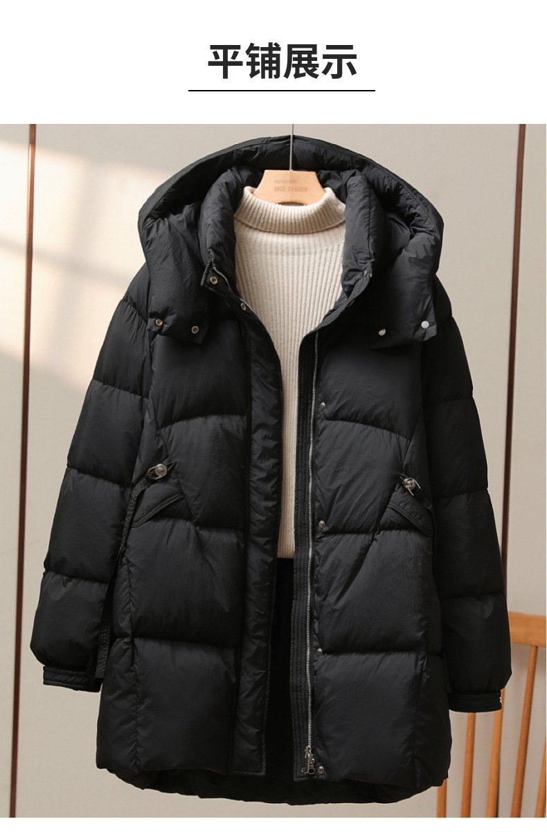 商品名称:欧货轻奢90鹅绒服女2026冬季新款连帽中长款加厚鹅绒保暖宽松外套
