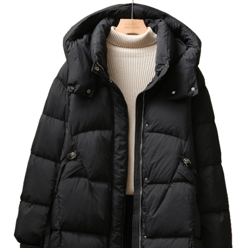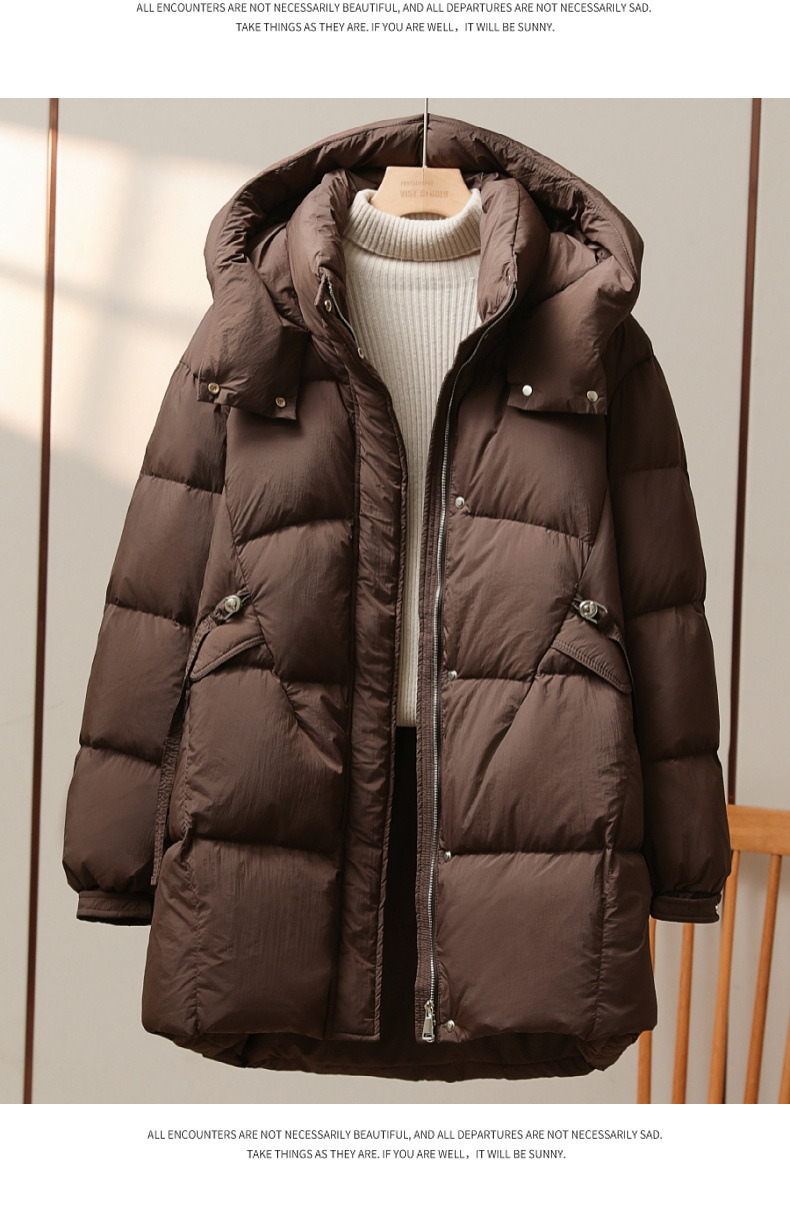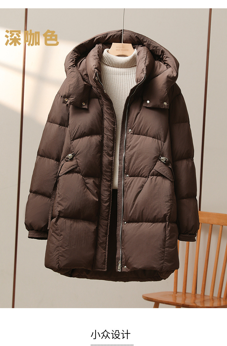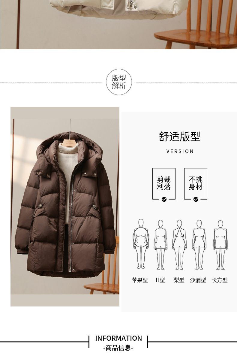 商品名称:欧货轻奢90鹅绒服女2026冬季新款连帽中长款加厚鹅绒保暖宽松外套
