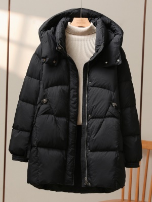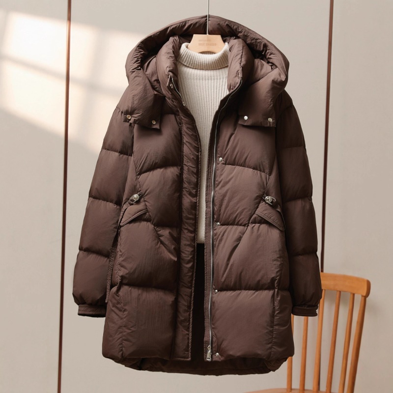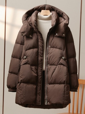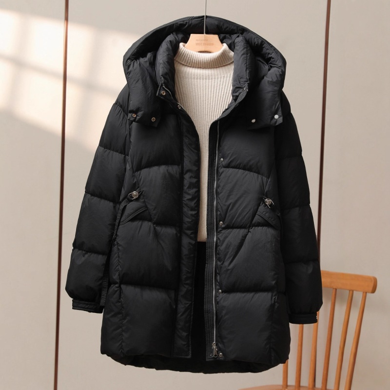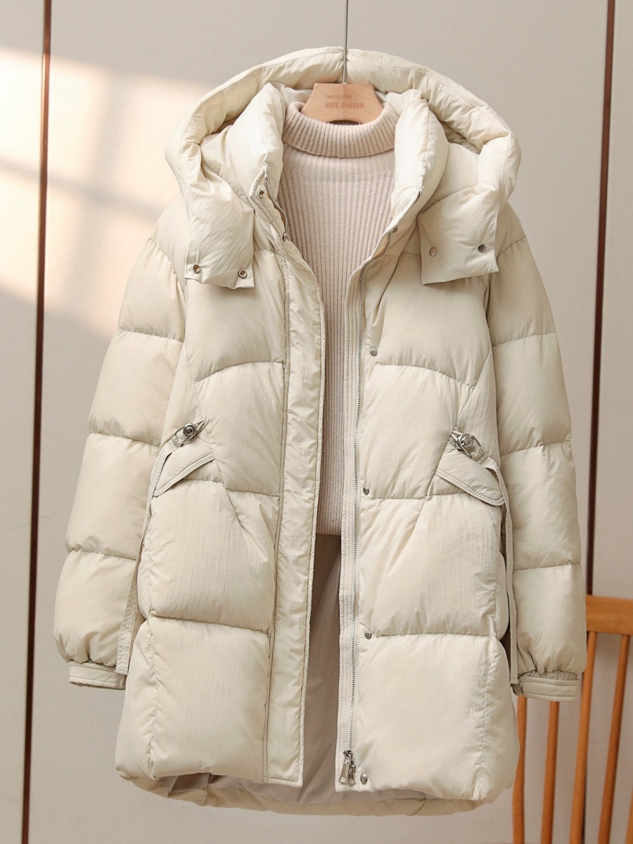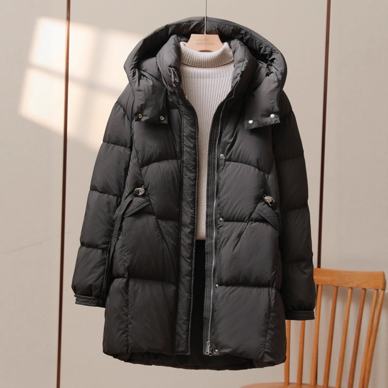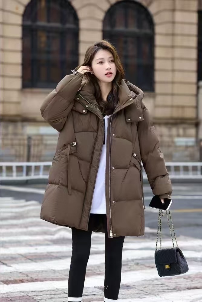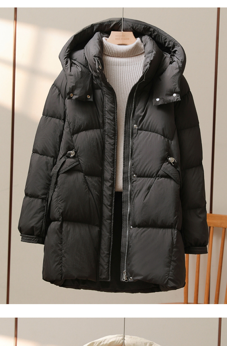 商品名称:欧货轻奢90鹅绒服女2026冬季新款连帽中长款加厚鹅绒保暖宽松外套