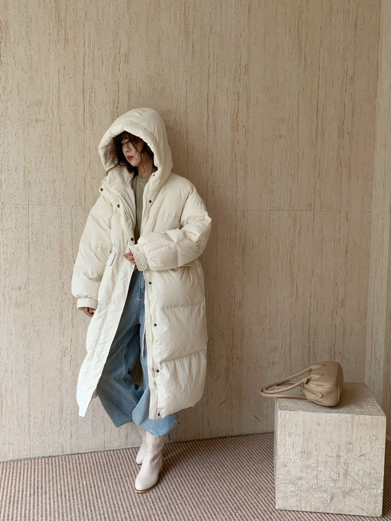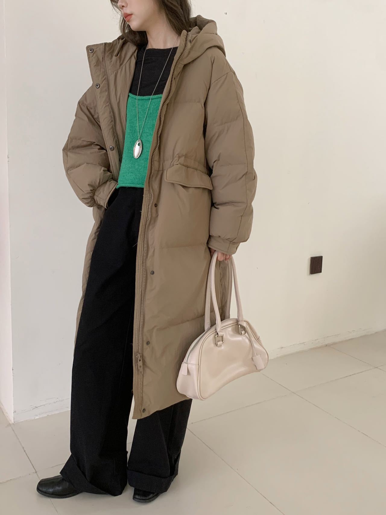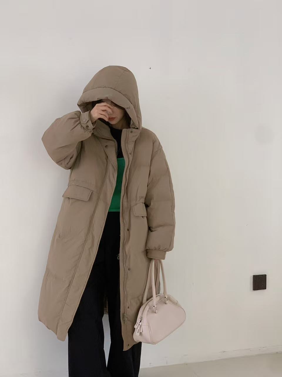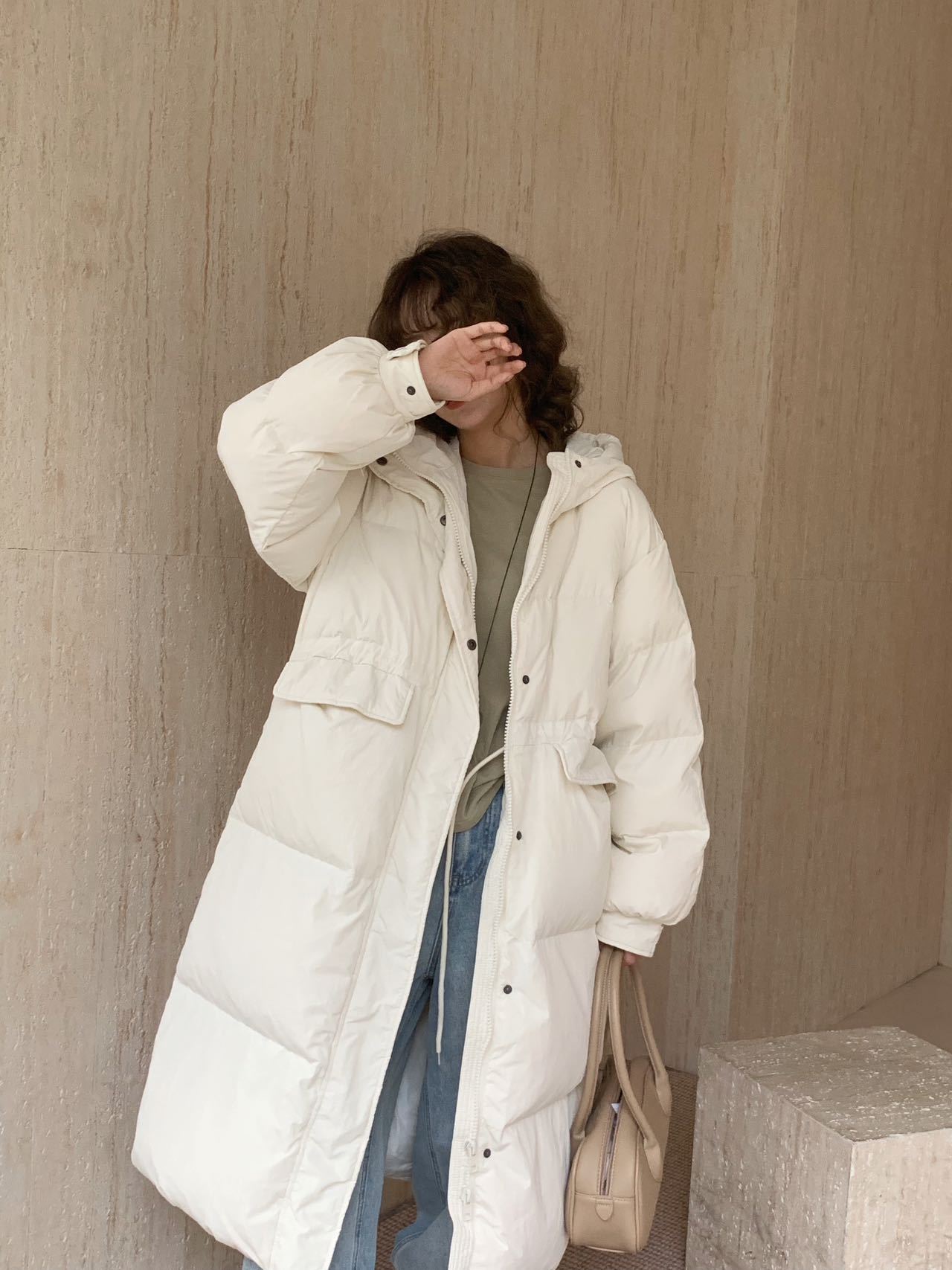 商品名称:2026新款东大门高级长款羽绒服90白鹅绒宽松连帽过膝韩系大被子