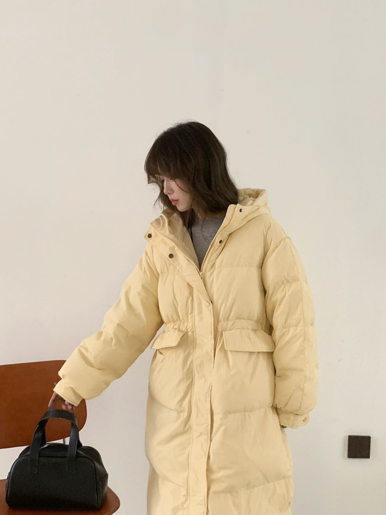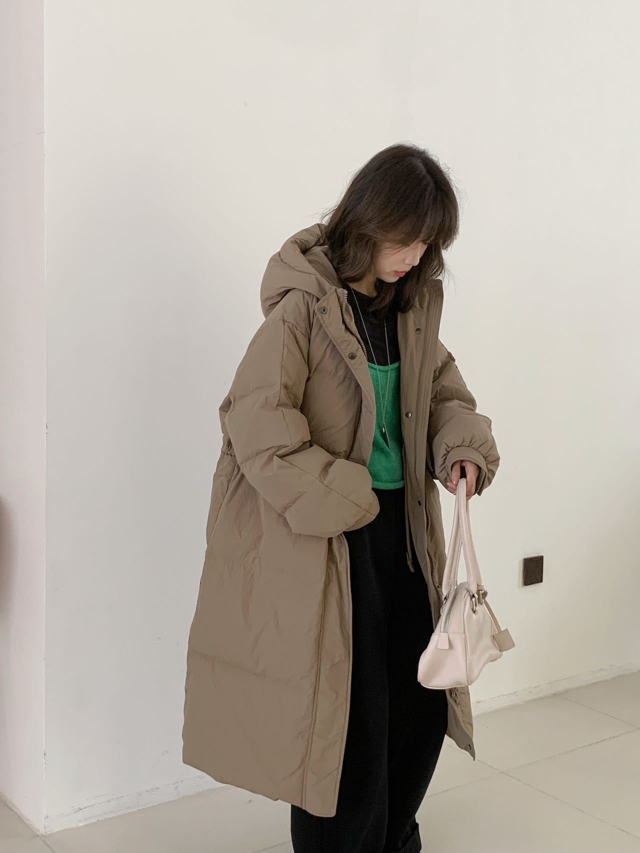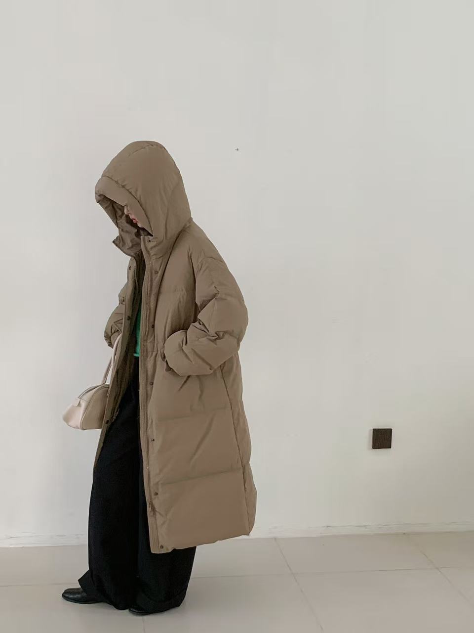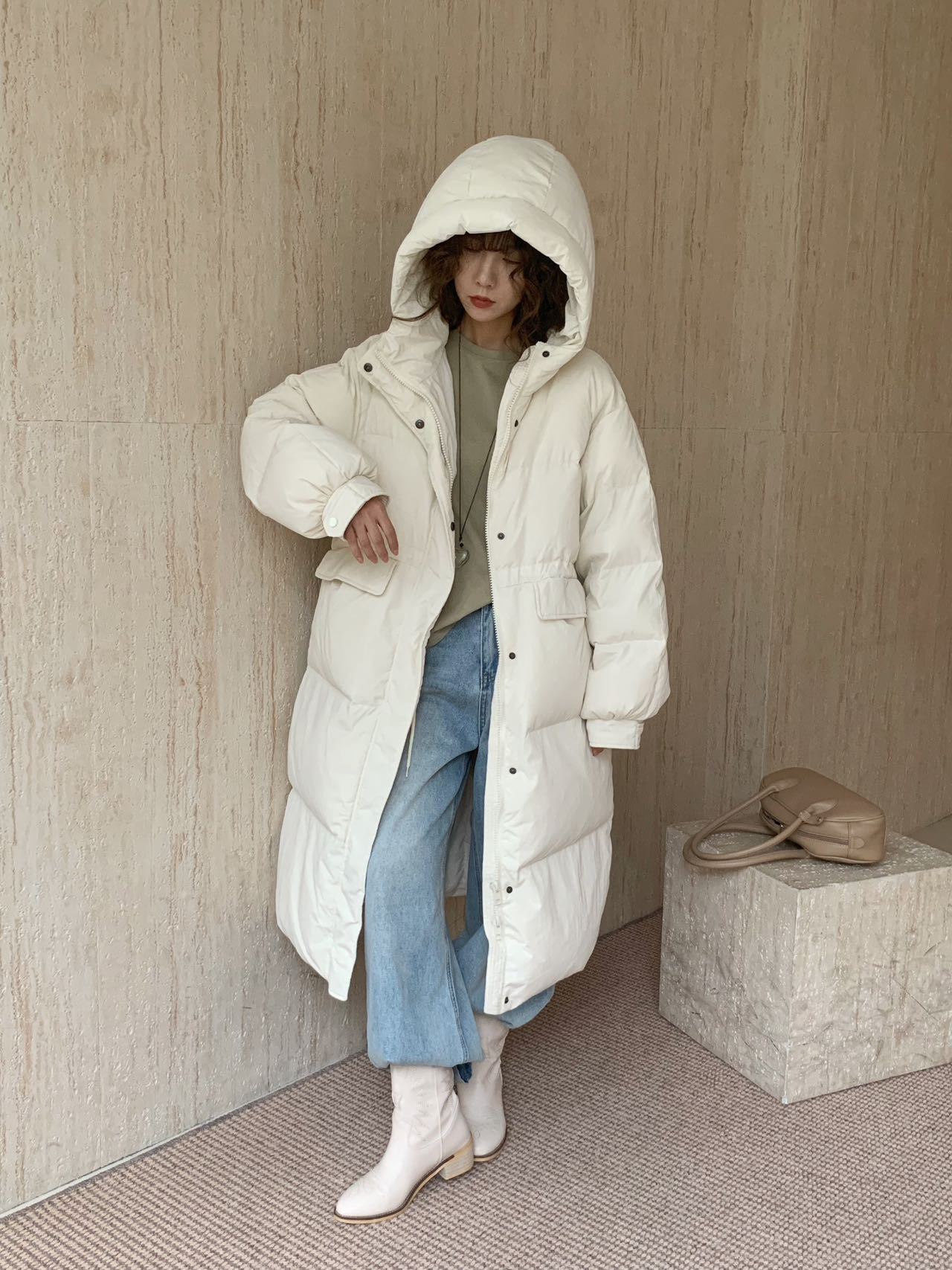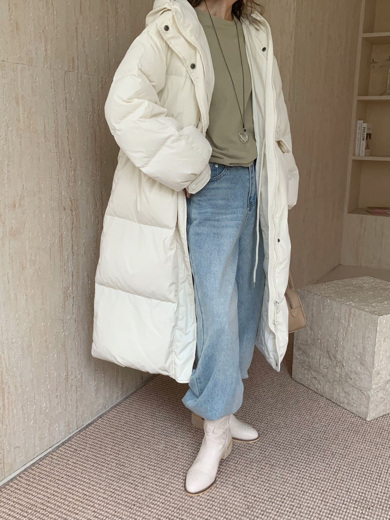 商品名称:2026新款东大门高级长款羽绒服90白鹅绒宽松连帽过膝韩系大被子