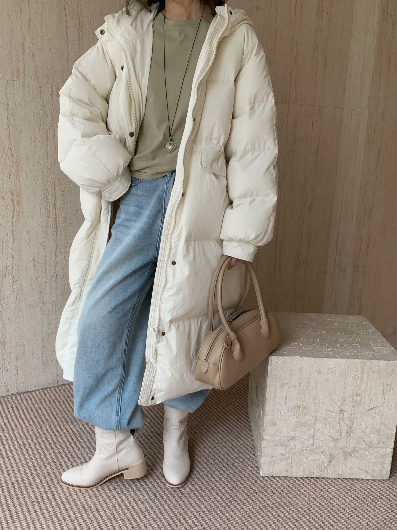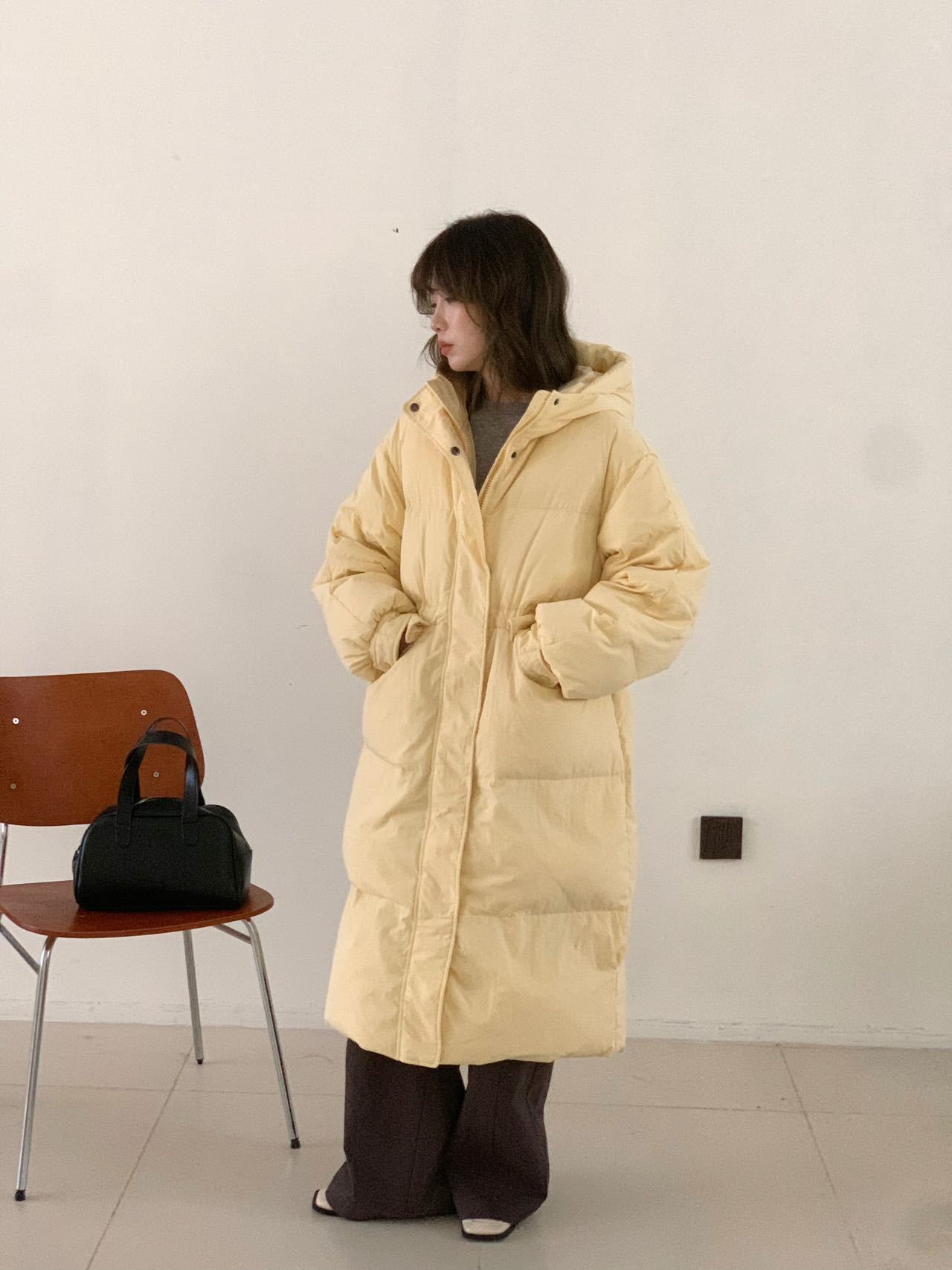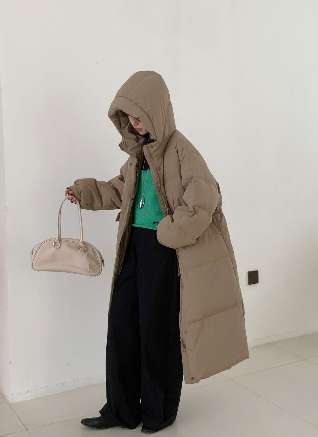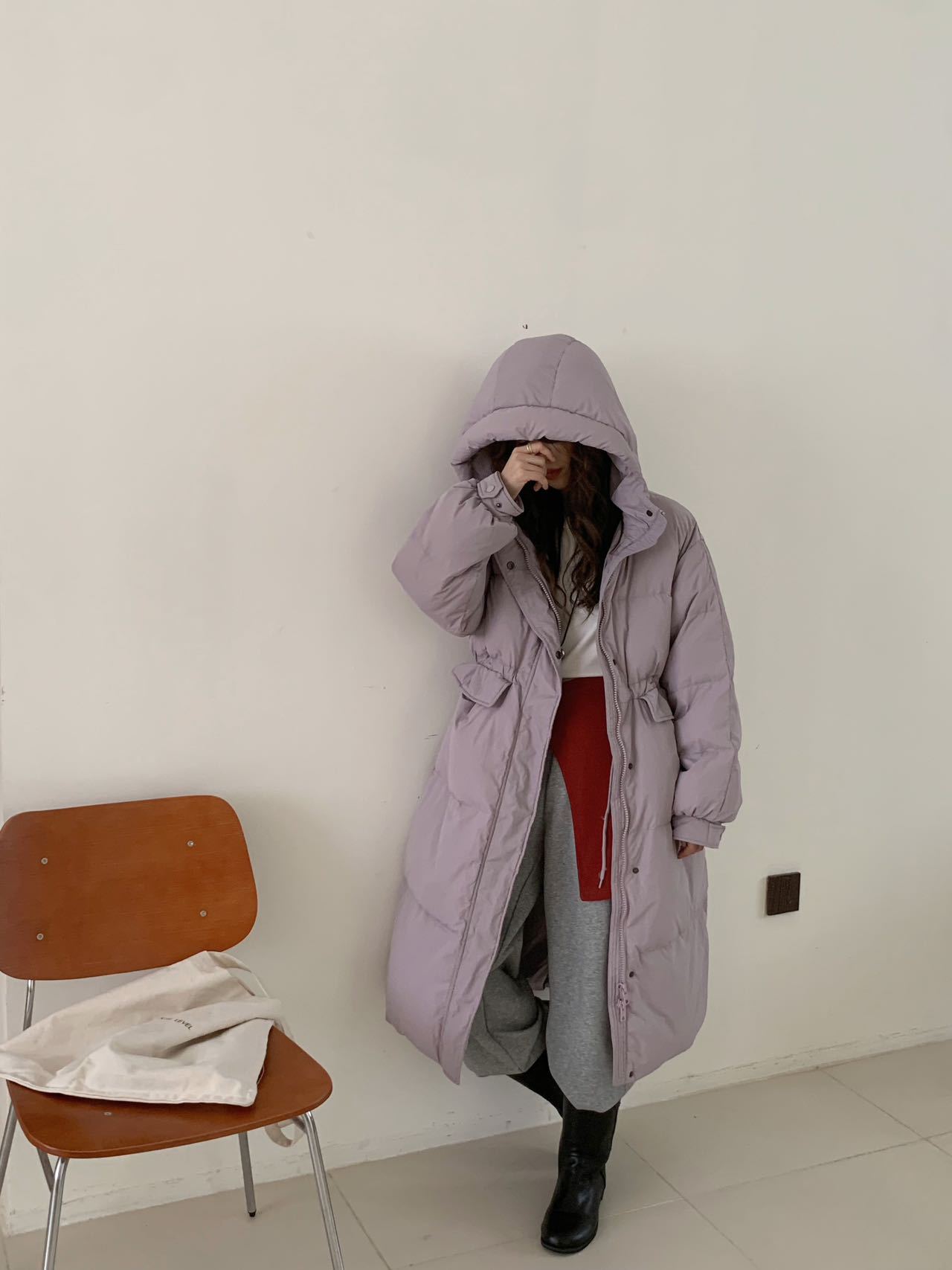 商品名称:2026新款东大门高级长款羽绒服90白鹅绒宽松连帽过膝韩系大被子