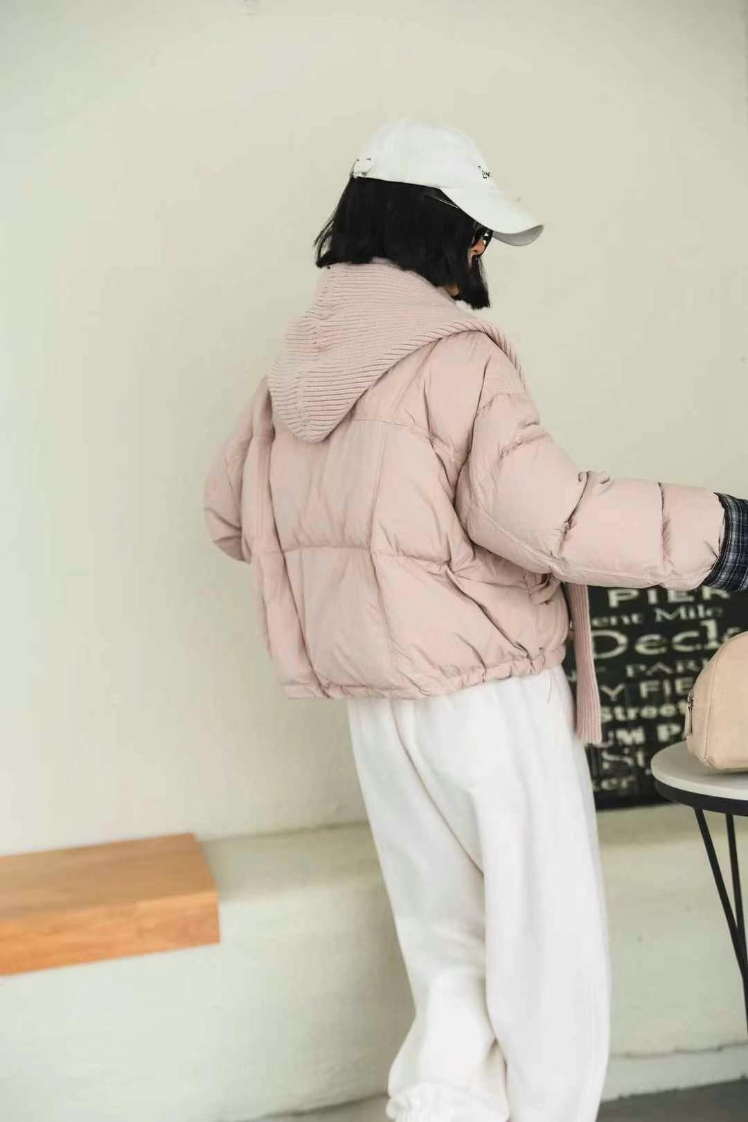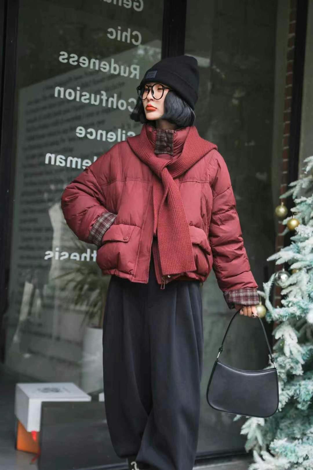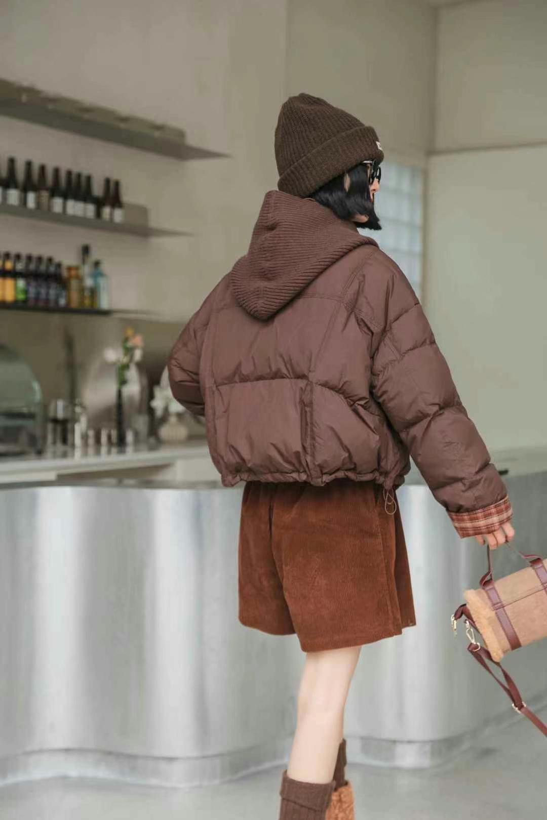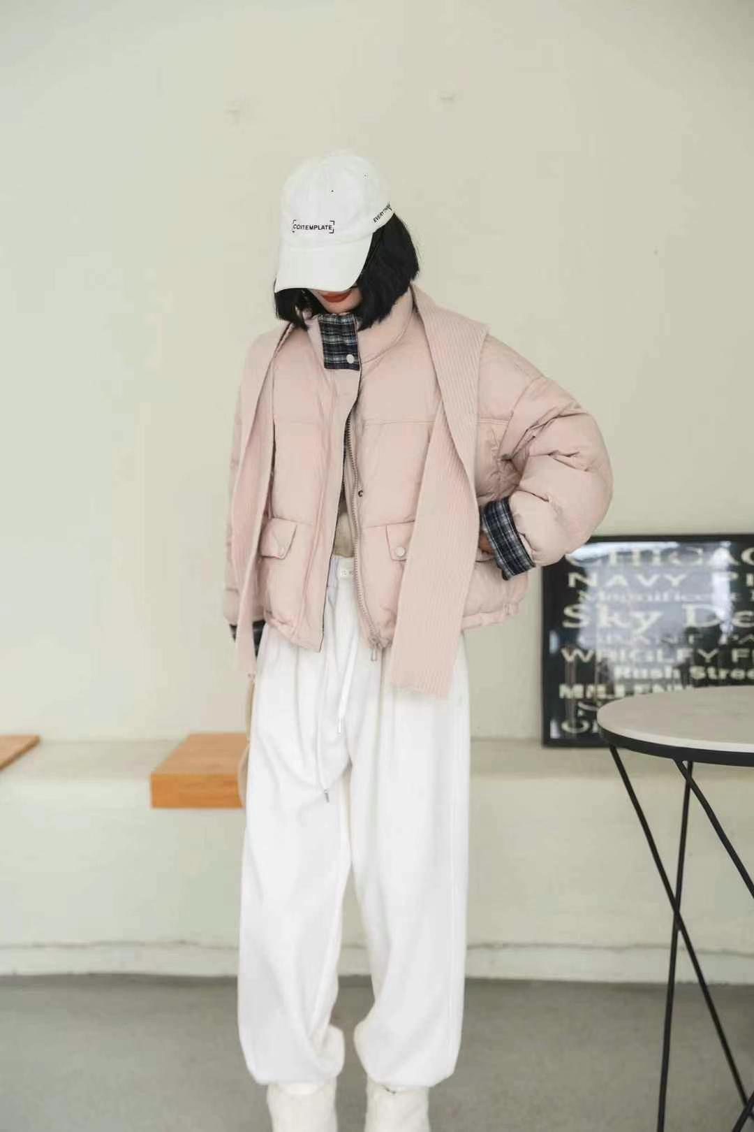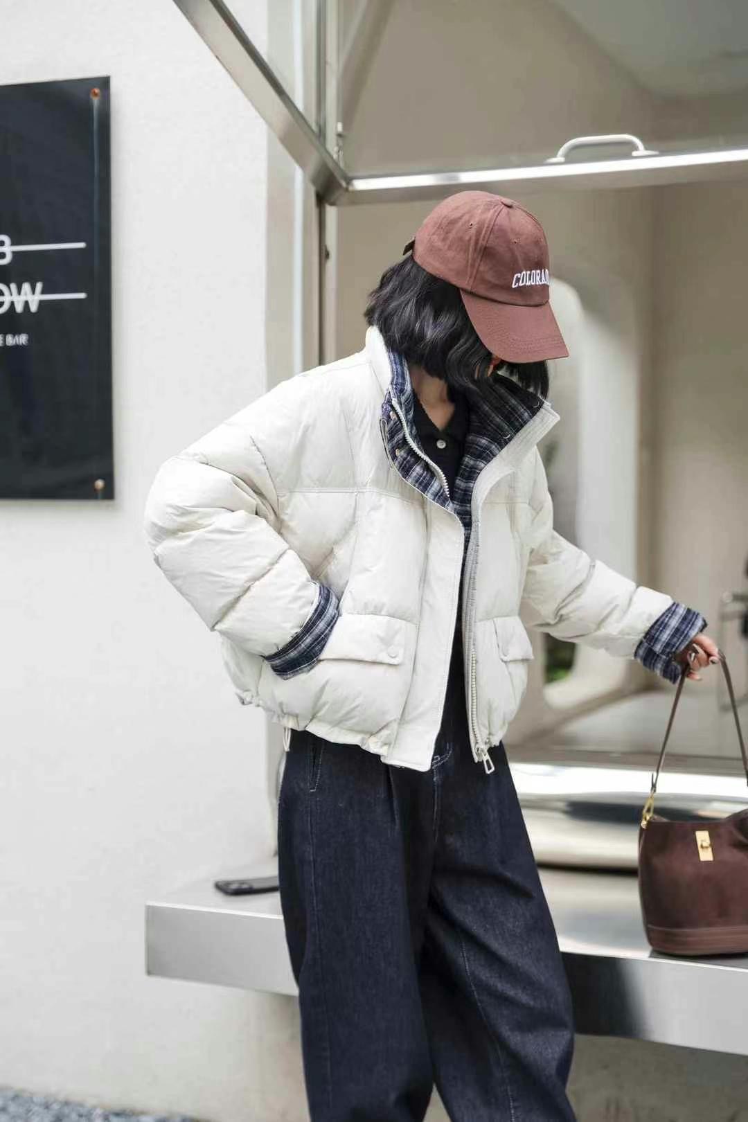 商品名称:2026冬季新款韩版宽松立领撞色格子袖口女短外套 小个子鹅绒服