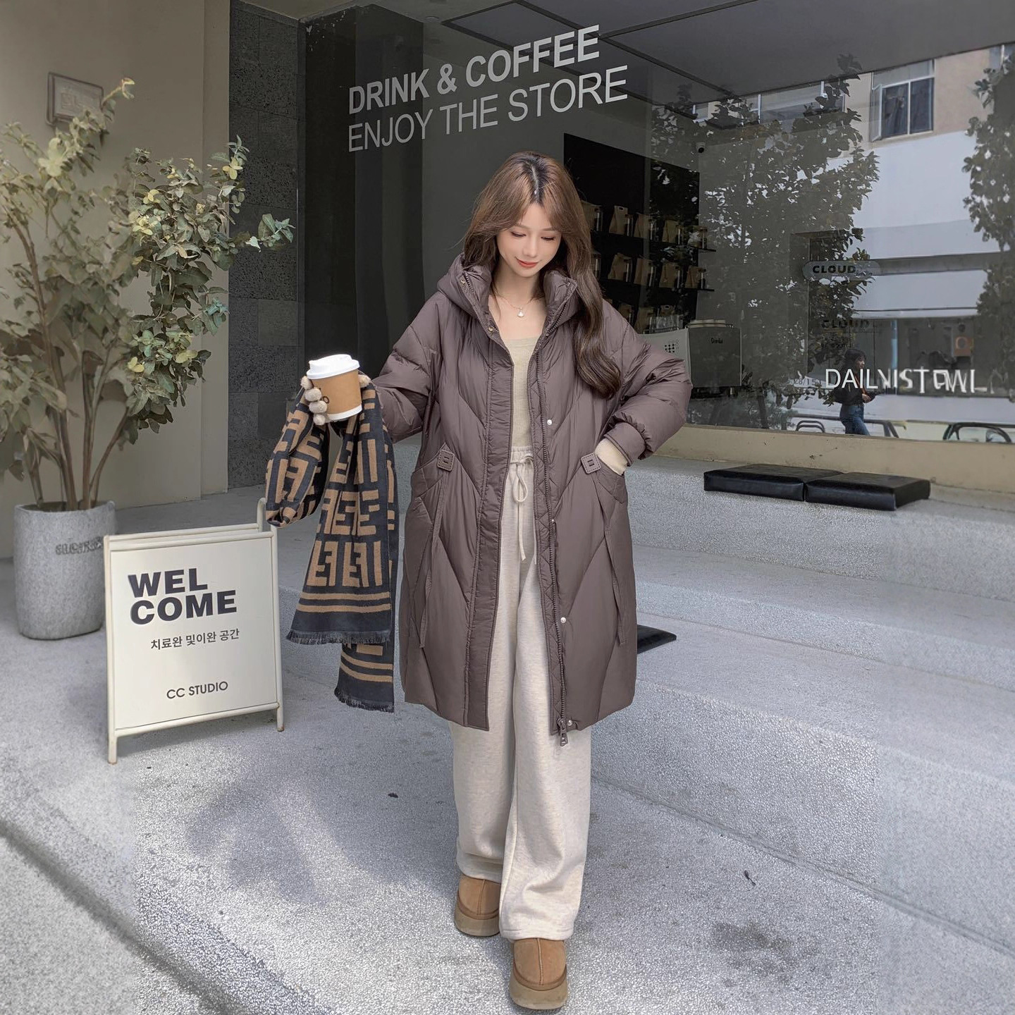 2026泡芙轻奢高端90鹅绒服洋气韩版时尚宽松长款连帽鹅绒服女加厚
