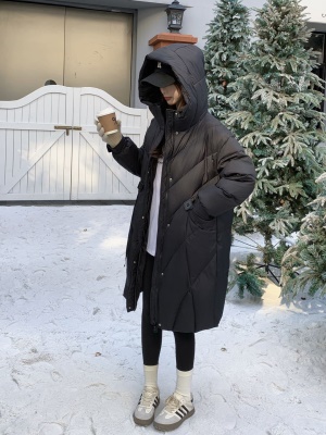 商品名称:2026泡芙轻奢高端90鹅绒服洋气韩版时尚宽松长款连帽鹅绒服女加厚
