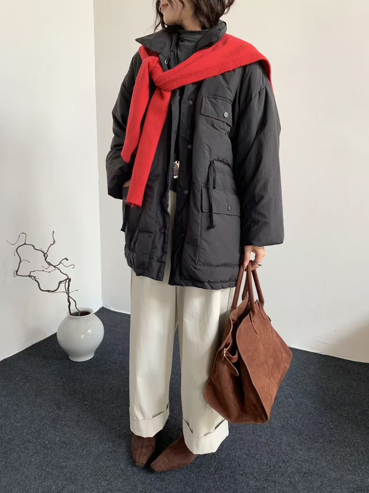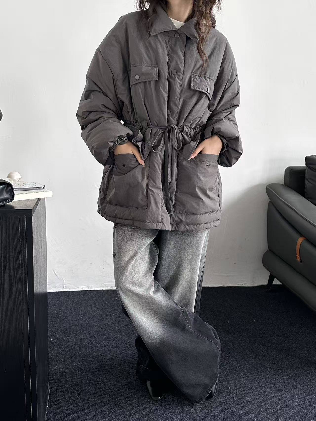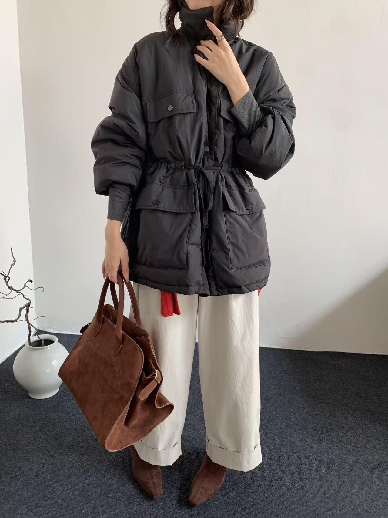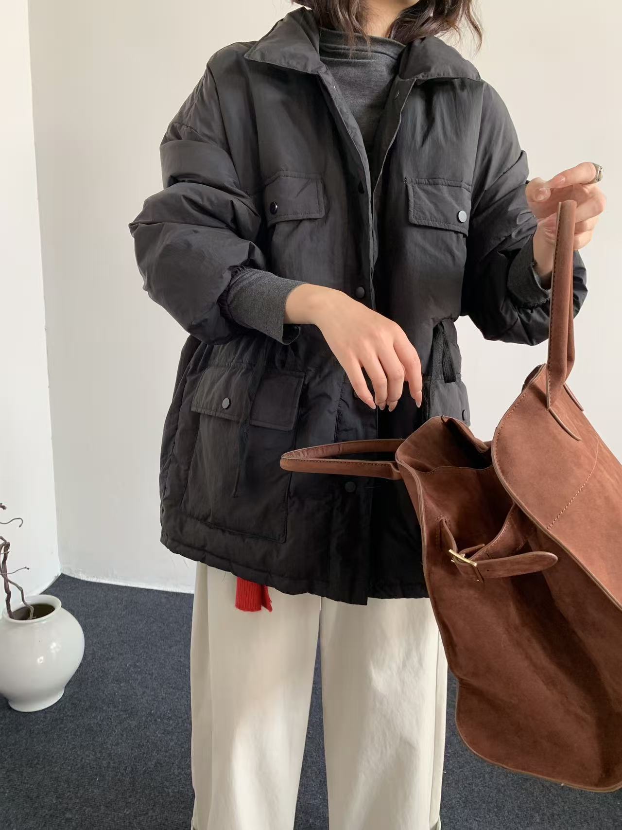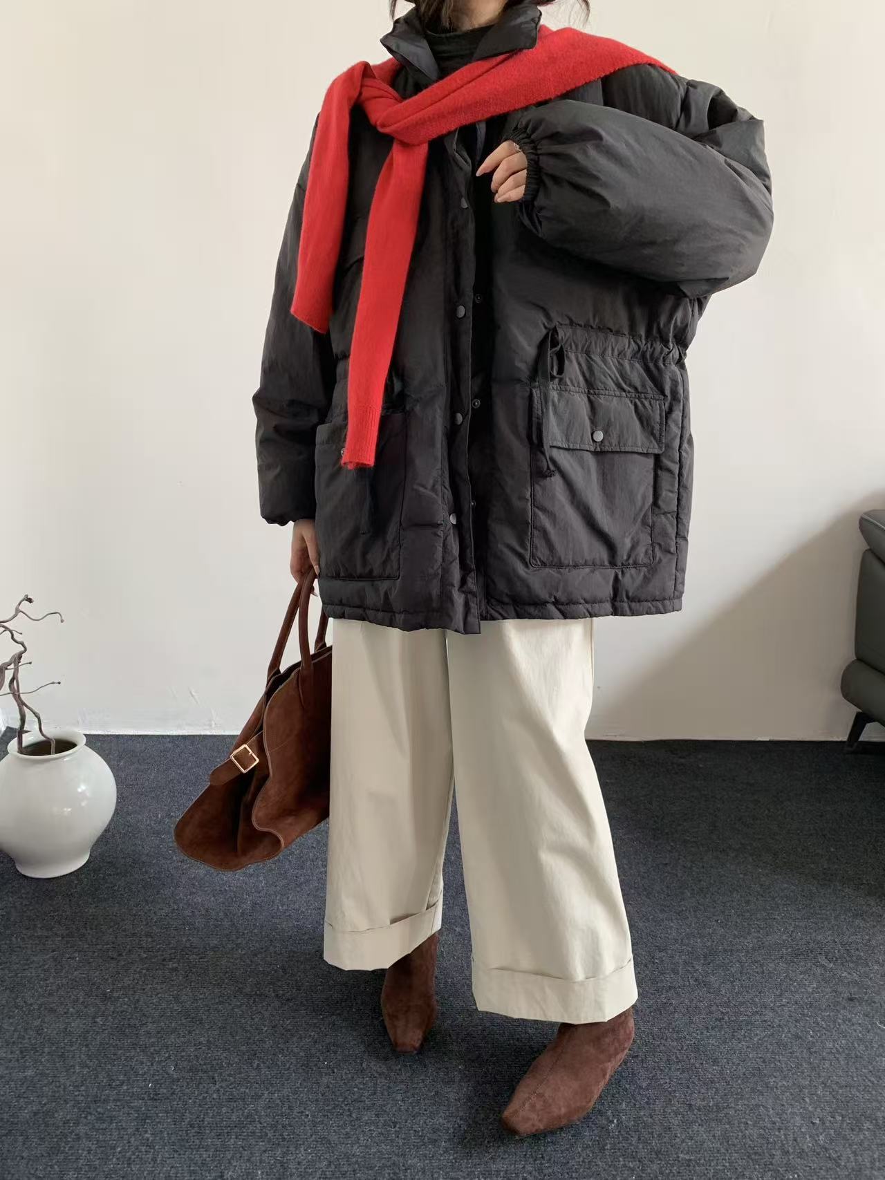 韩系东大门中长款90鹅绒服女宽松收腰简约羽绒服冬季新款轻薄外套