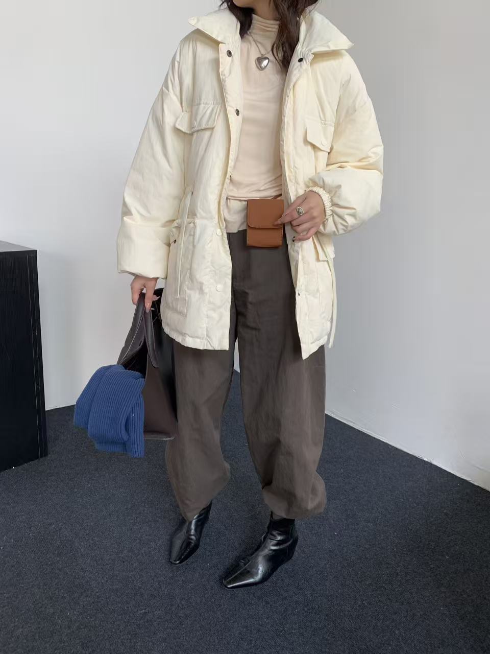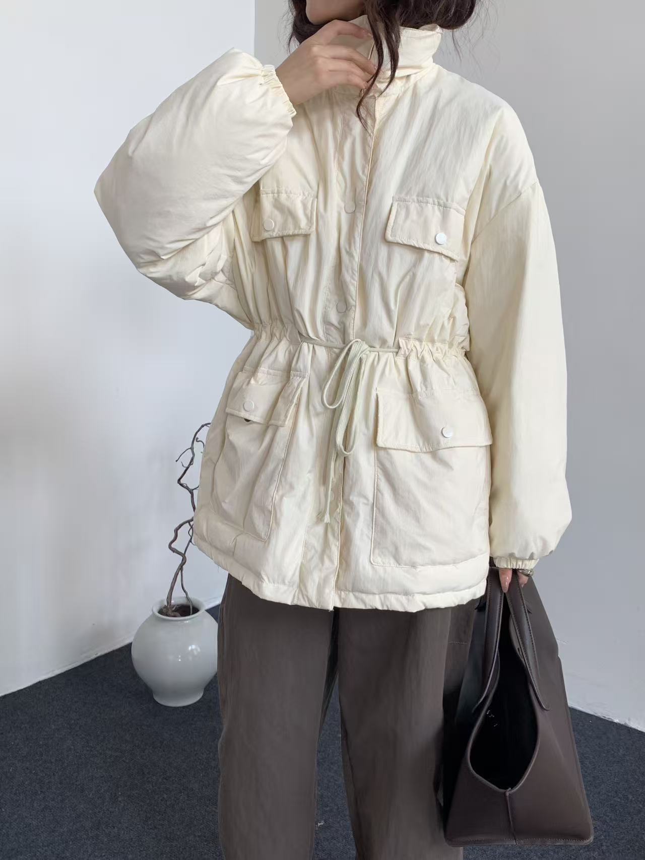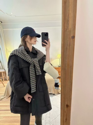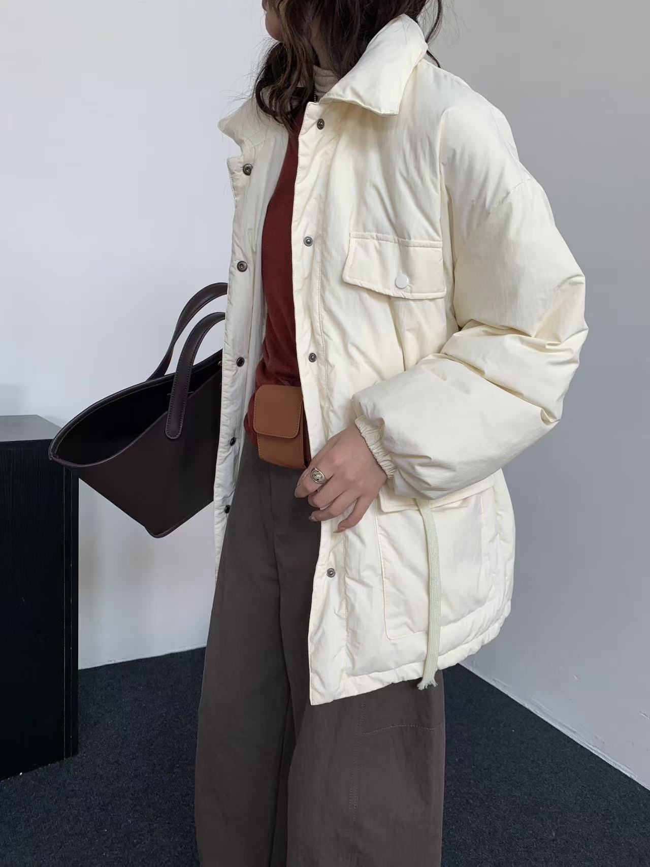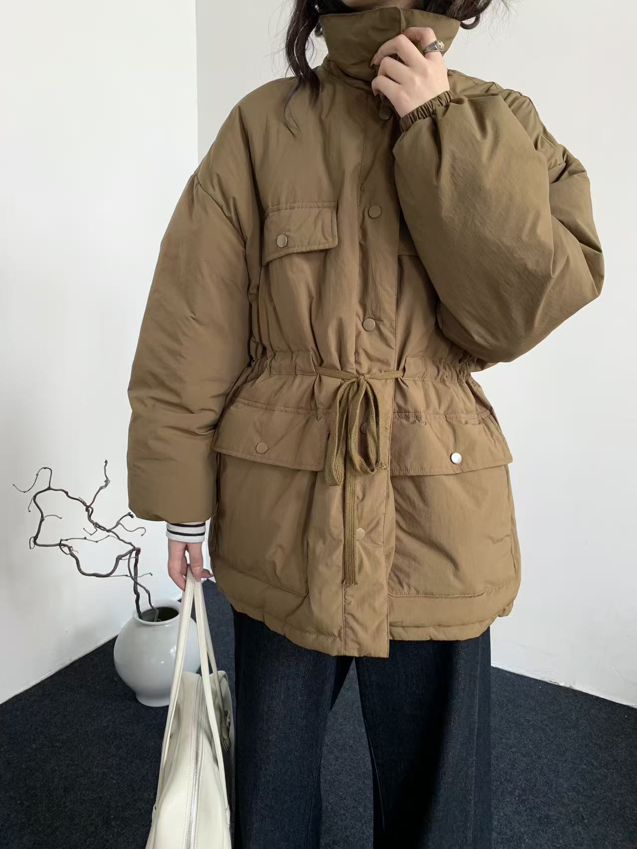 商品名称:韩系东大门中长款90鹅绒服女宽松收腰简约羽绒服冬季新款轻薄外套