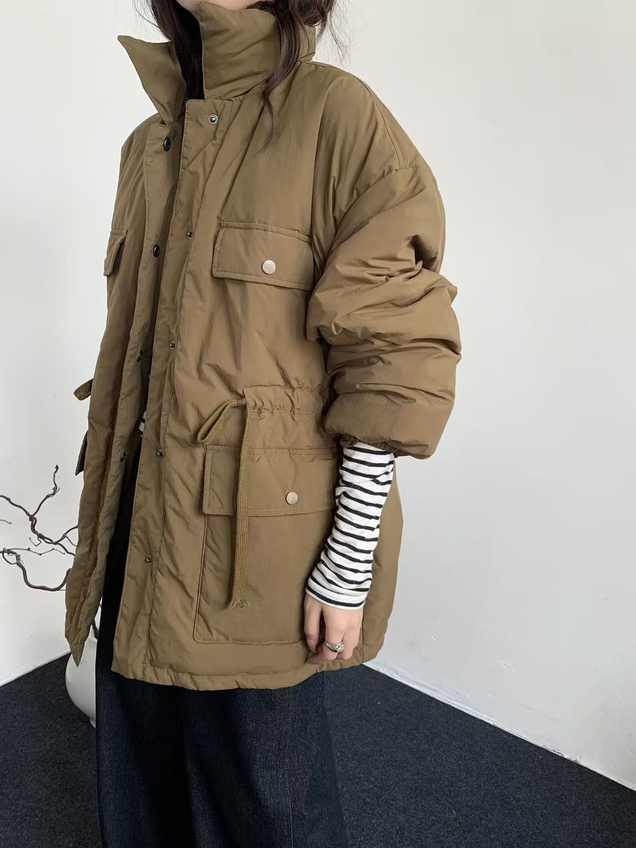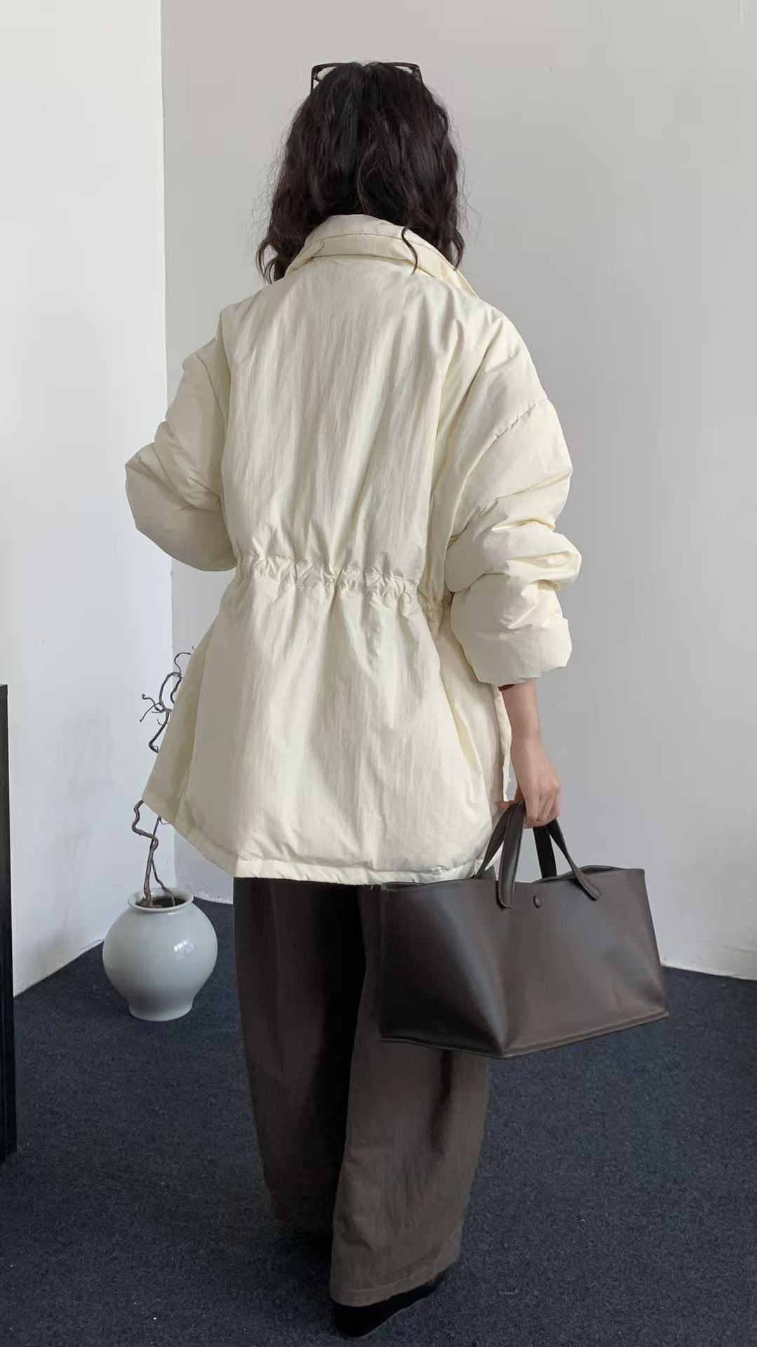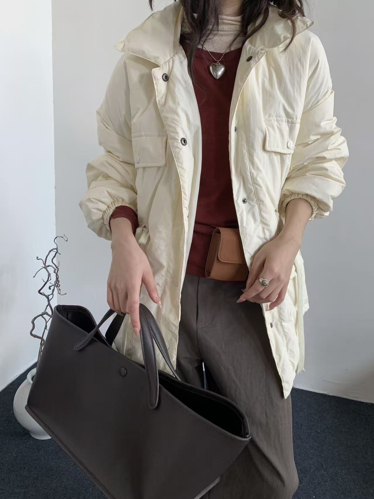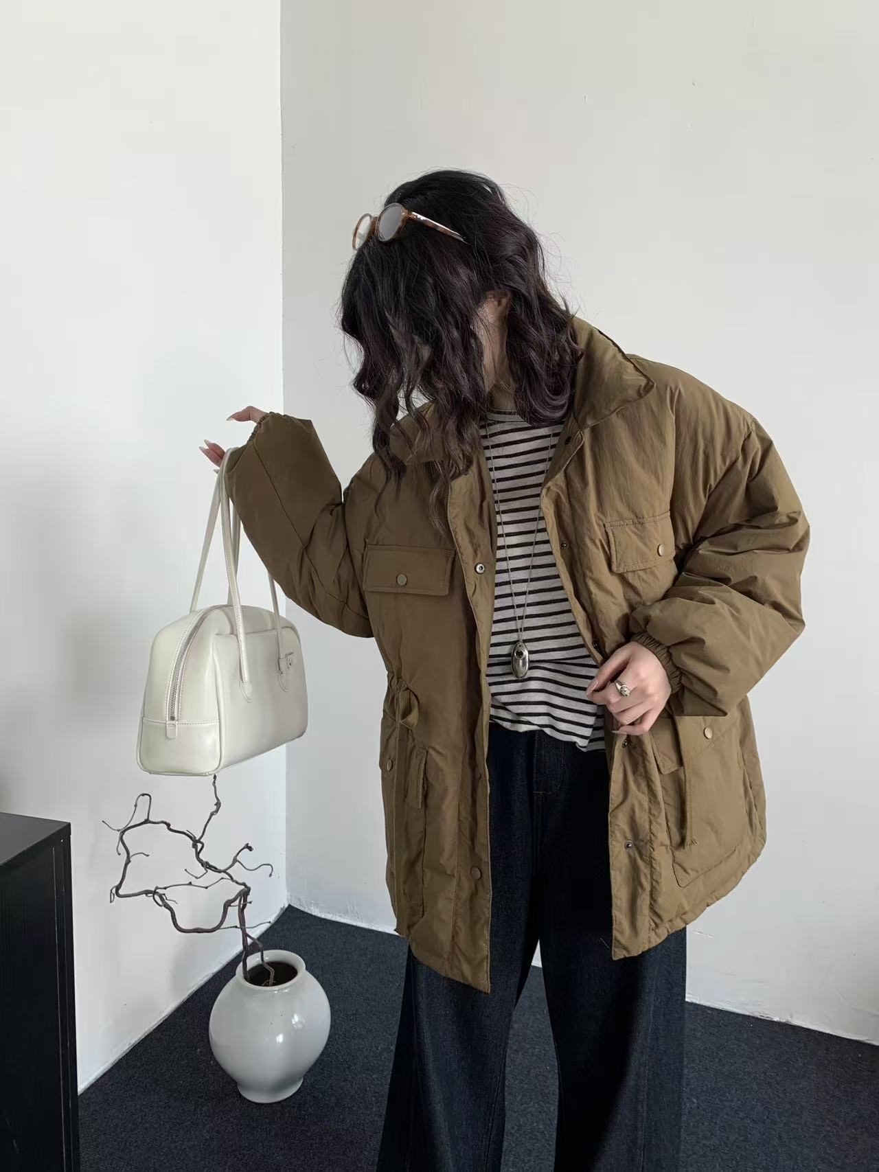 商品名称:韩系东大门中长款90鹅绒服女宽松收腰简约羽绒服冬季新款轻薄外套