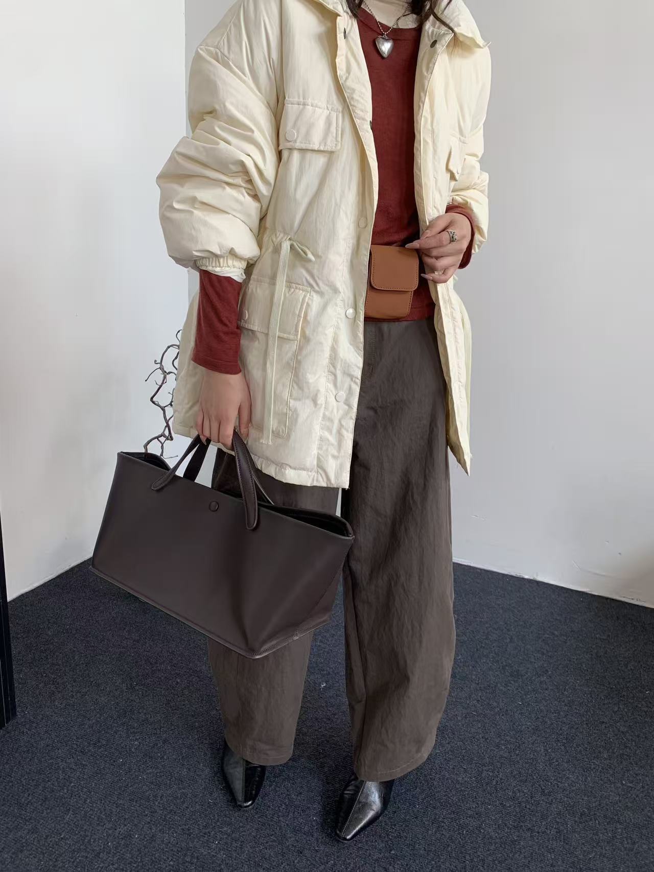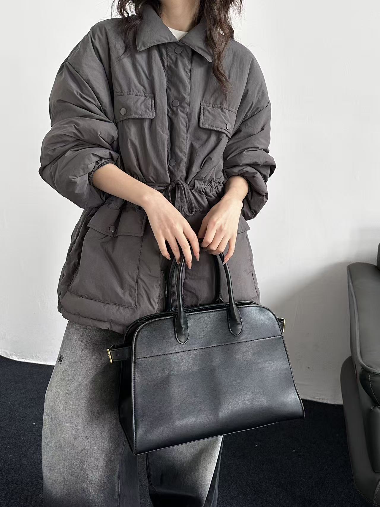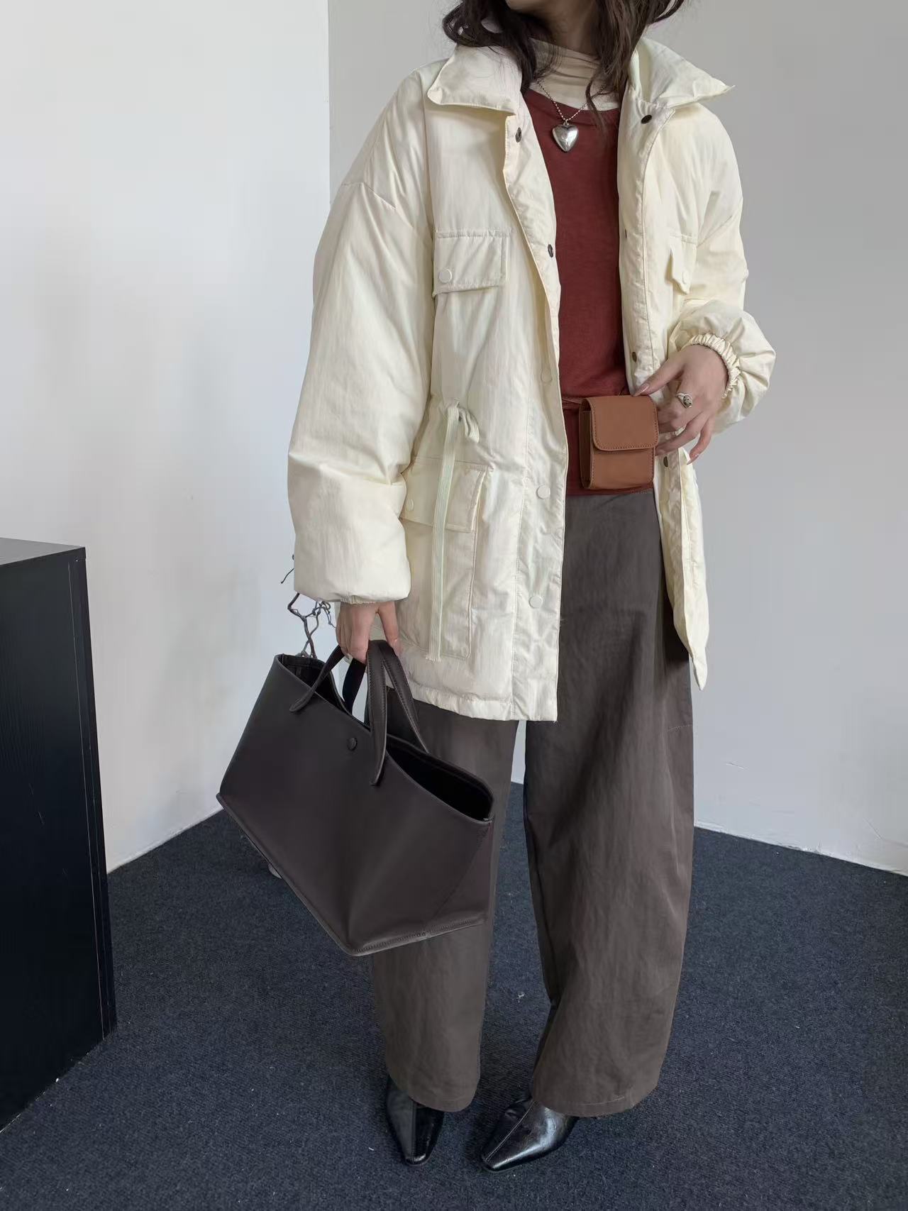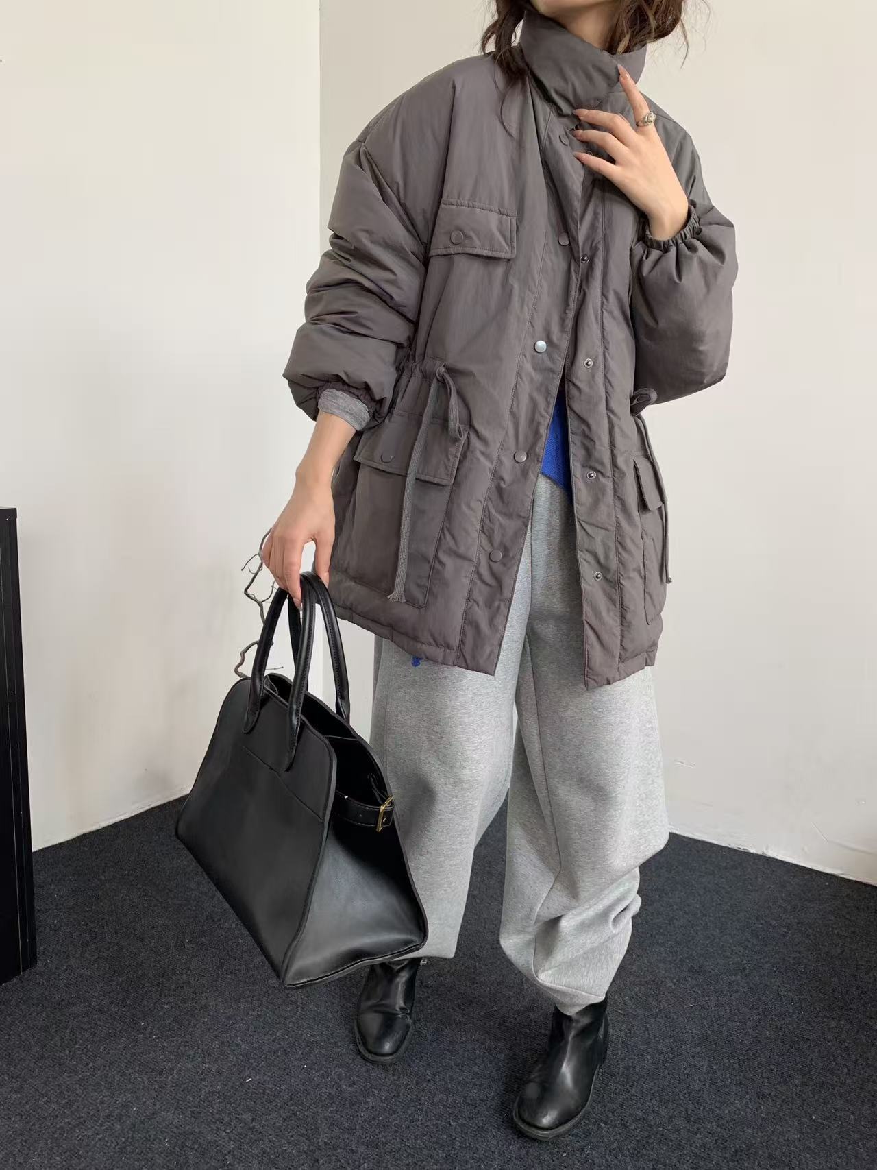 商品名称:韩系东大门中长款90鹅绒服女宽松收腰简约羽绒服冬季新款轻薄外套