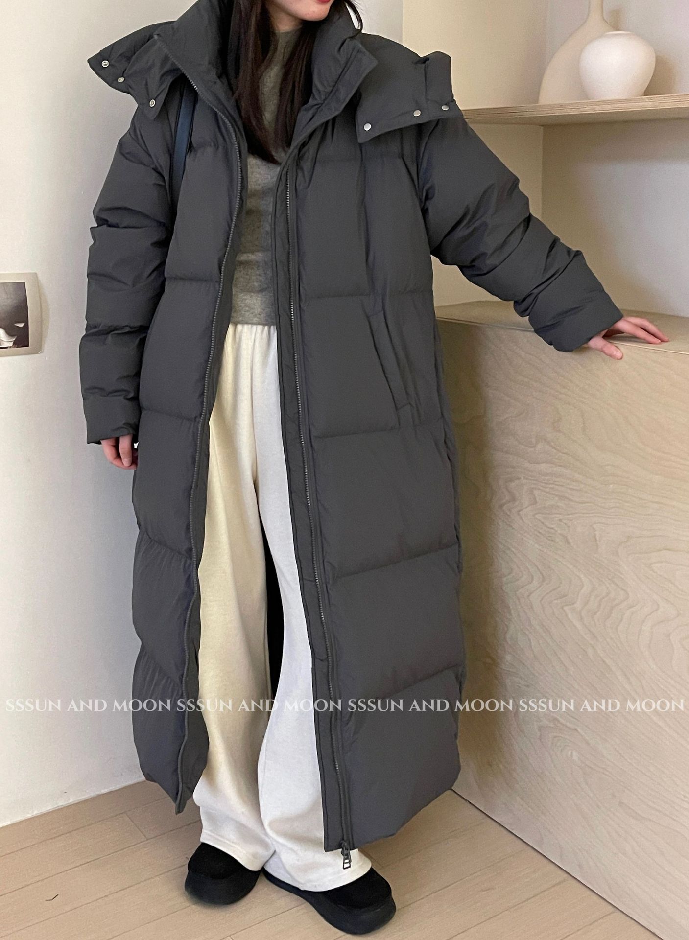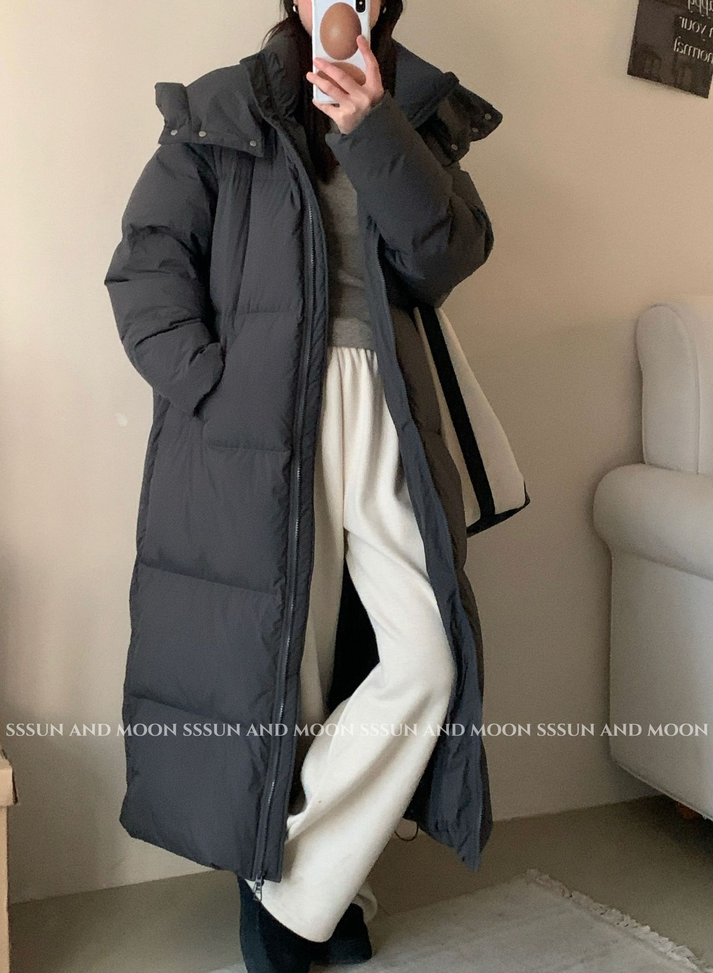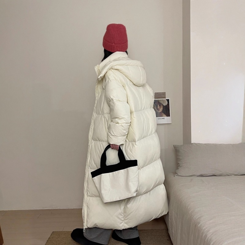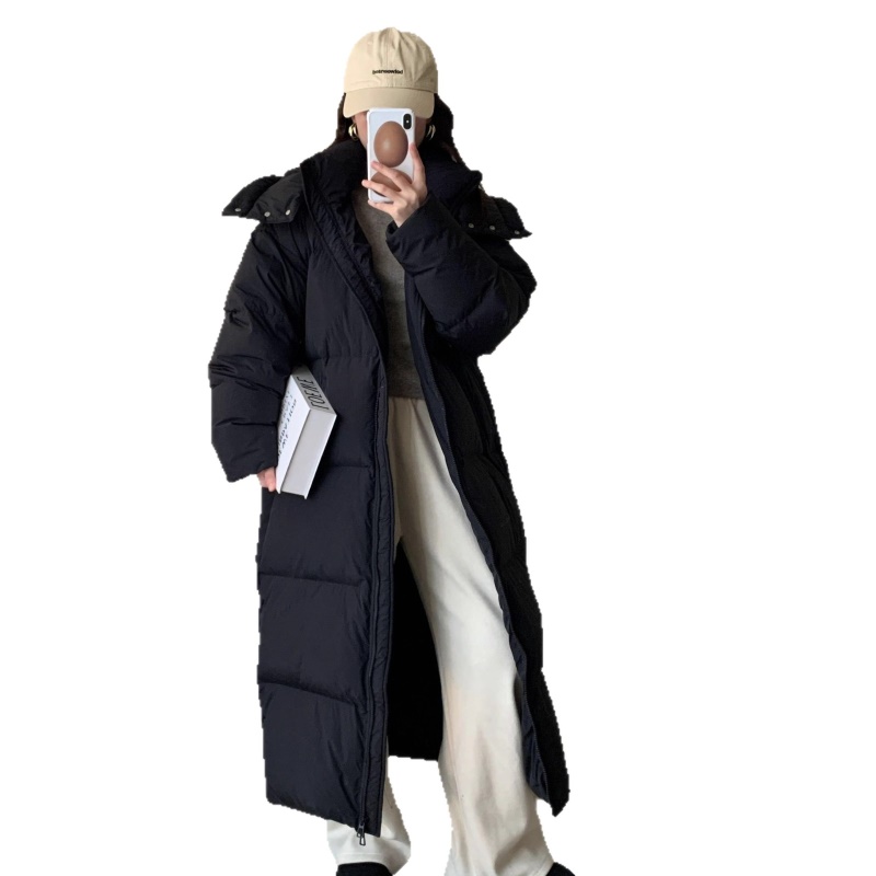 商品名称:黑色超长款90白鹅绒女过膝到脚踝2026年新款加厚连帽冬季羽绒服外