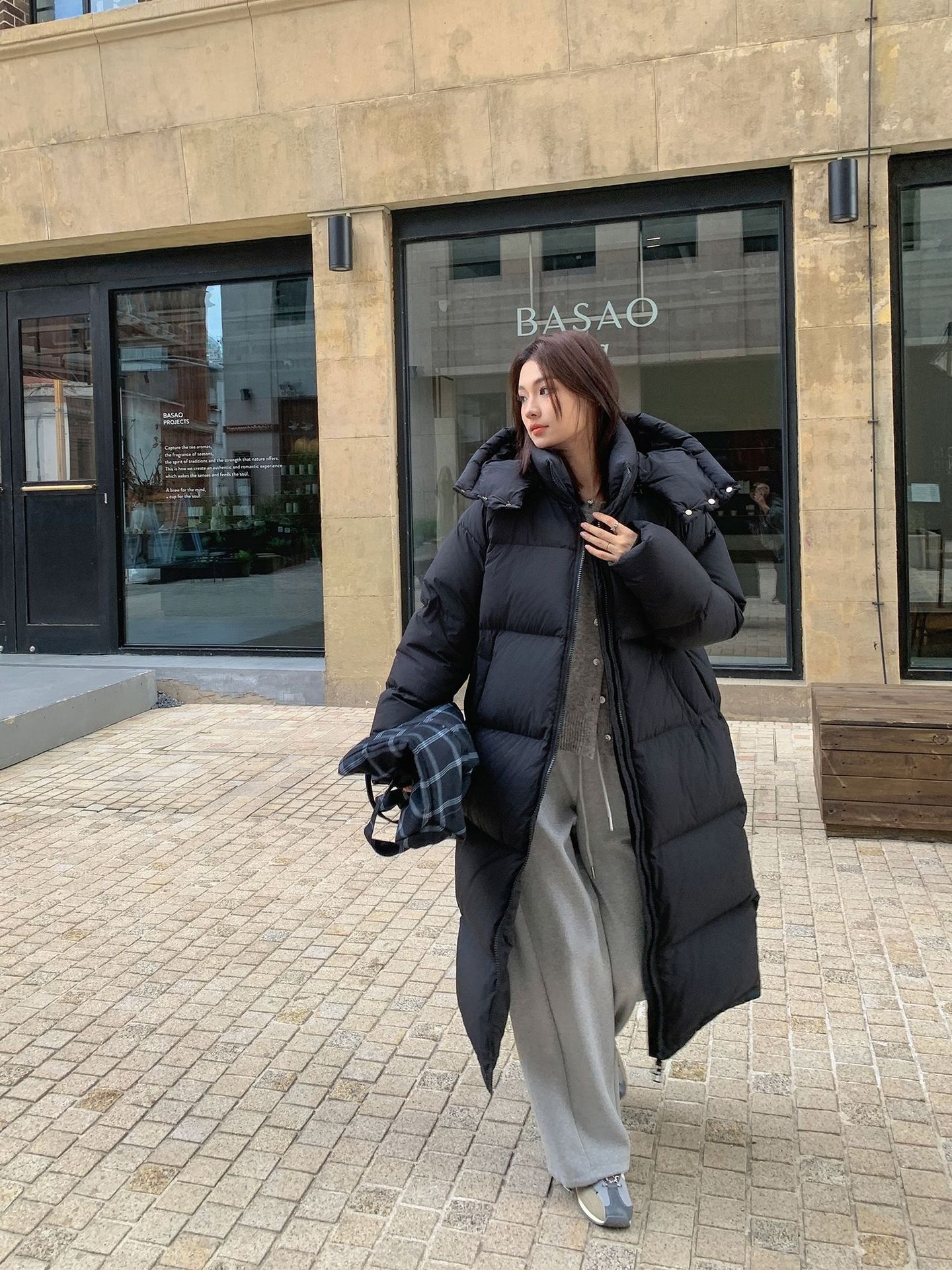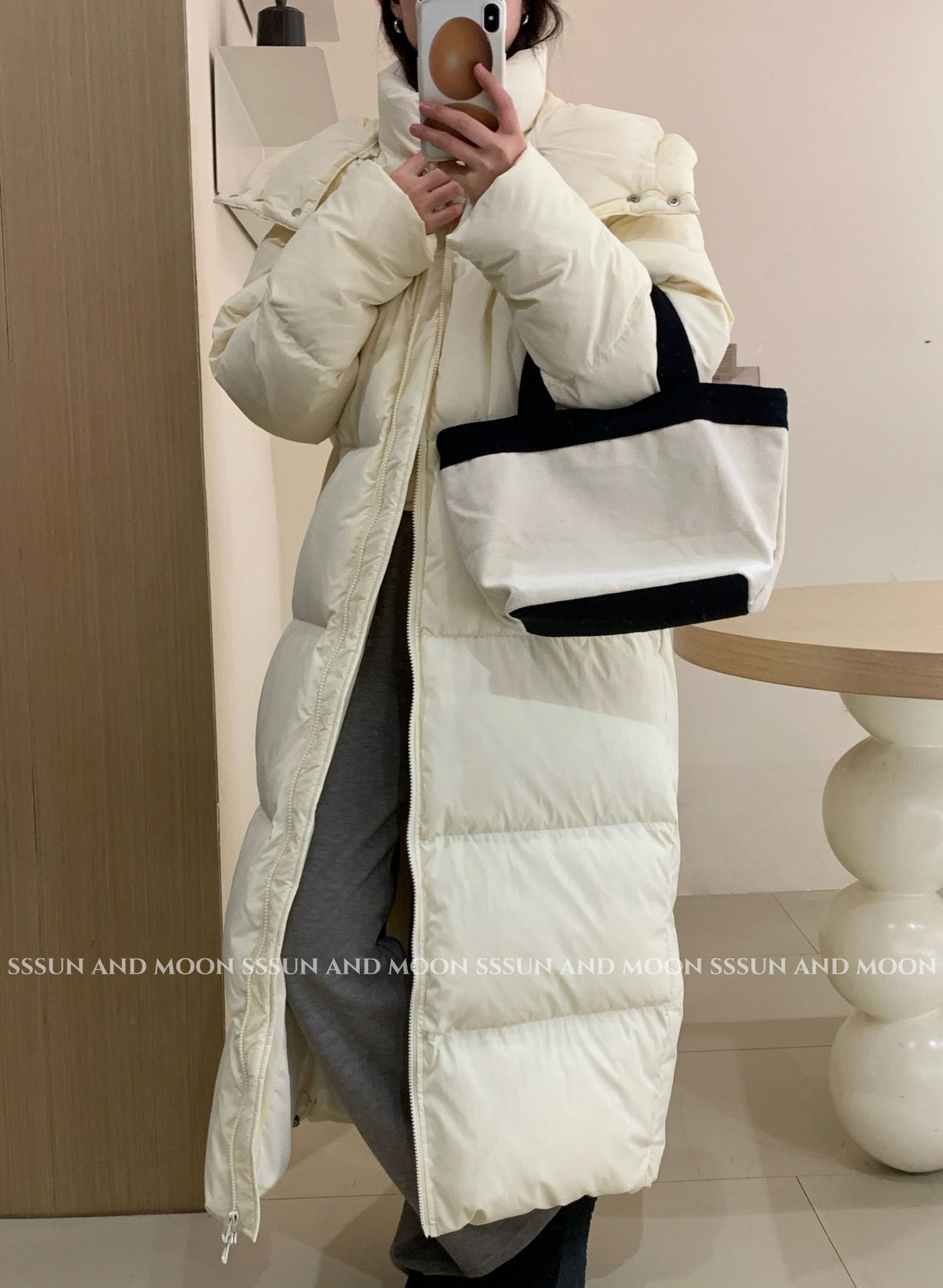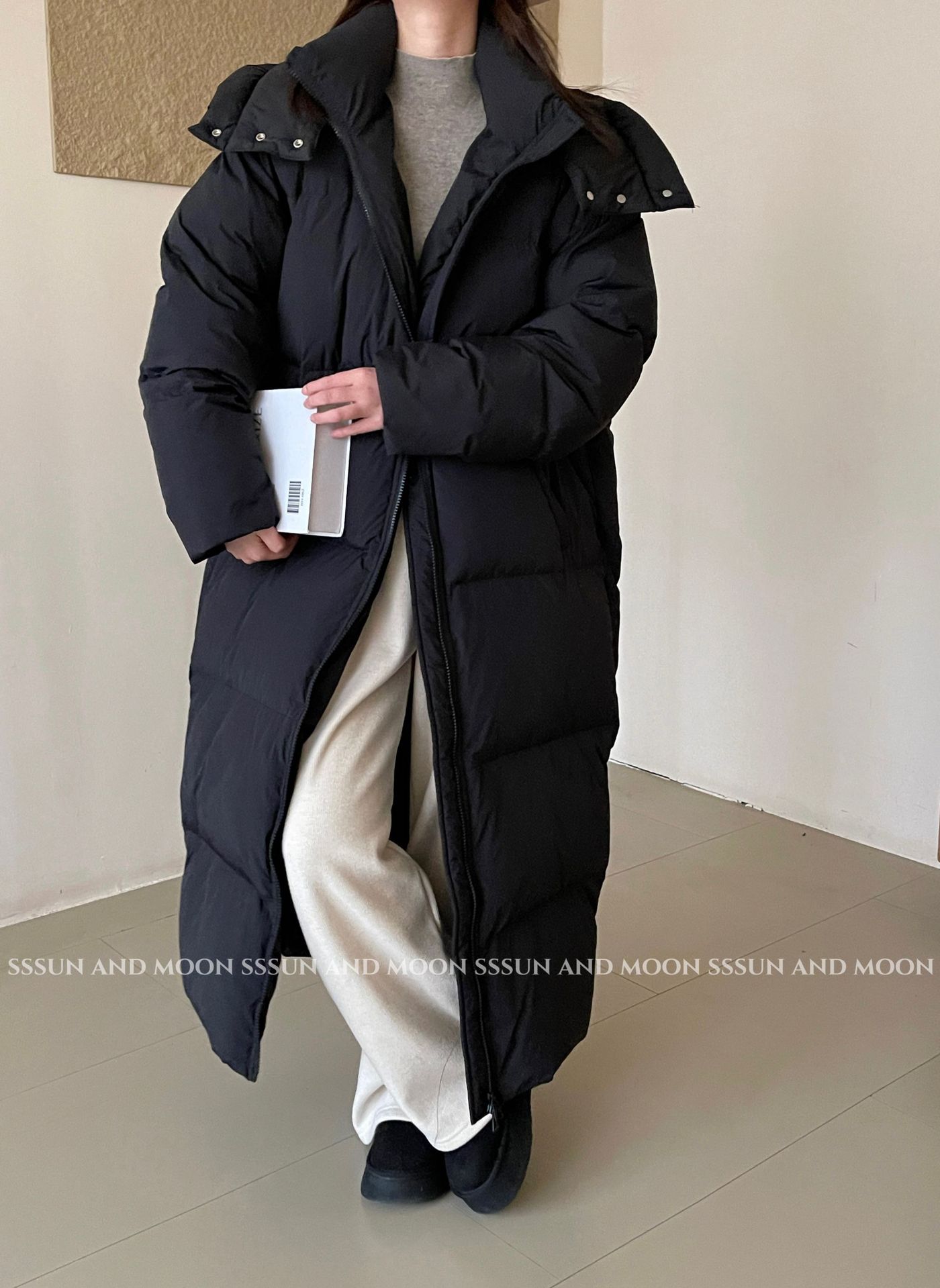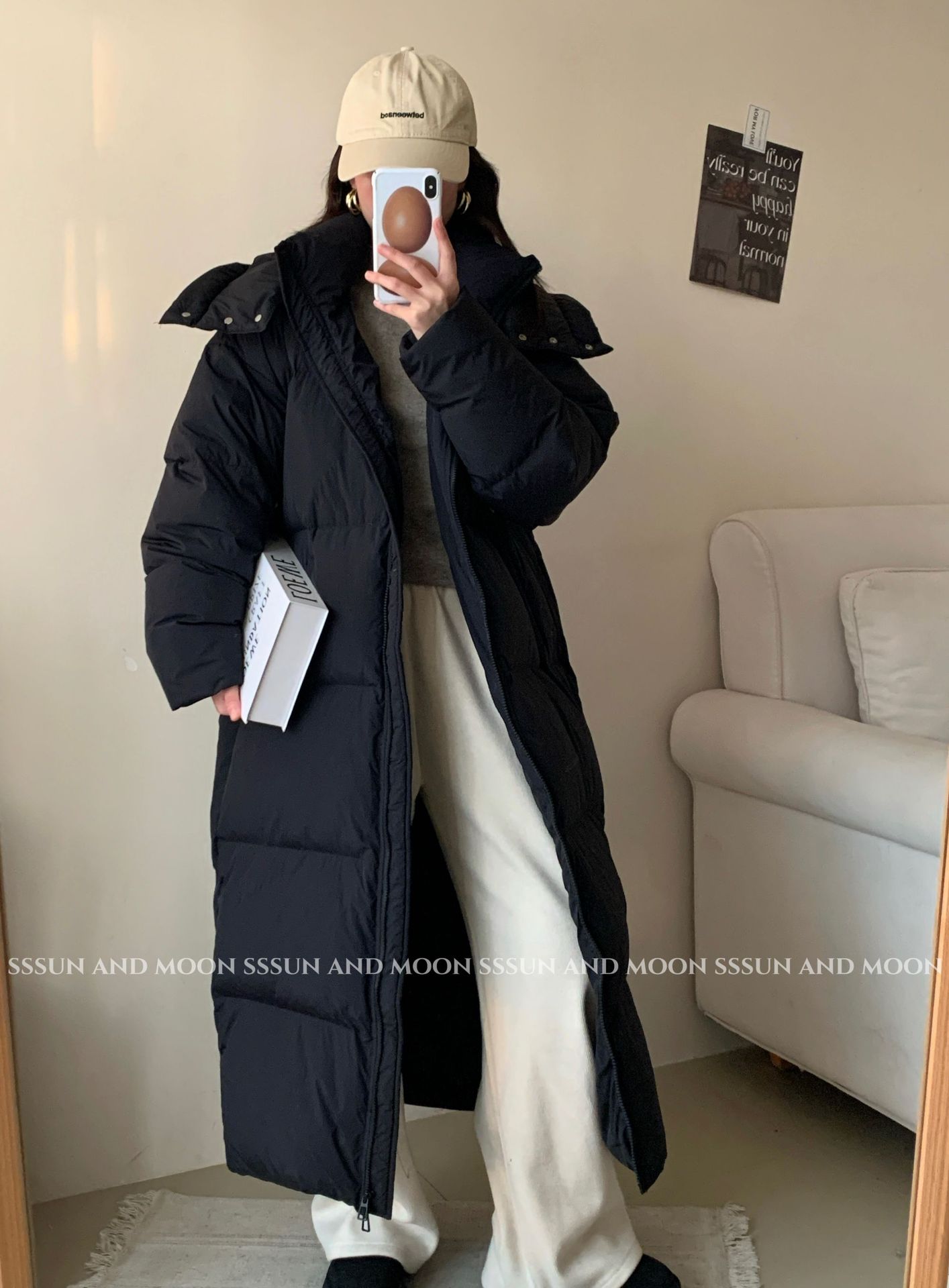 商品名称:黑色超长款90白鹅绒女过膝到脚踝2026年新款加厚连帽冬季羽绒服外