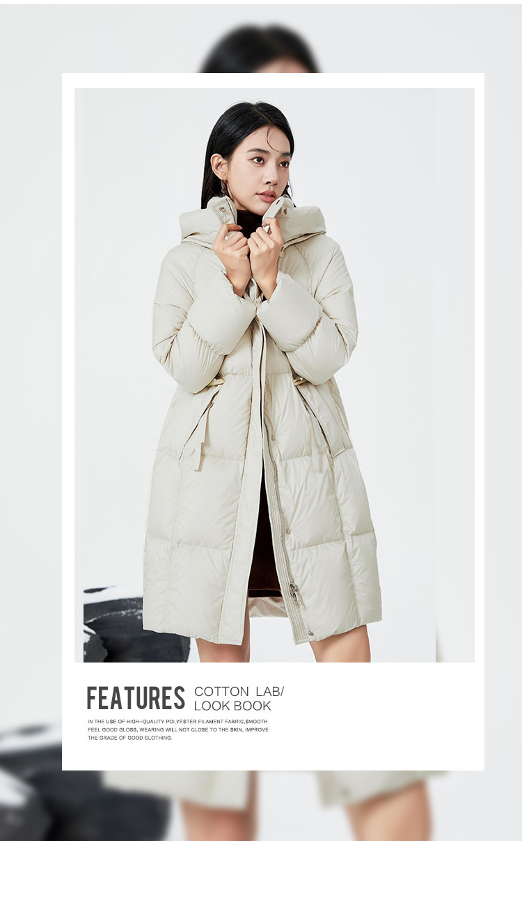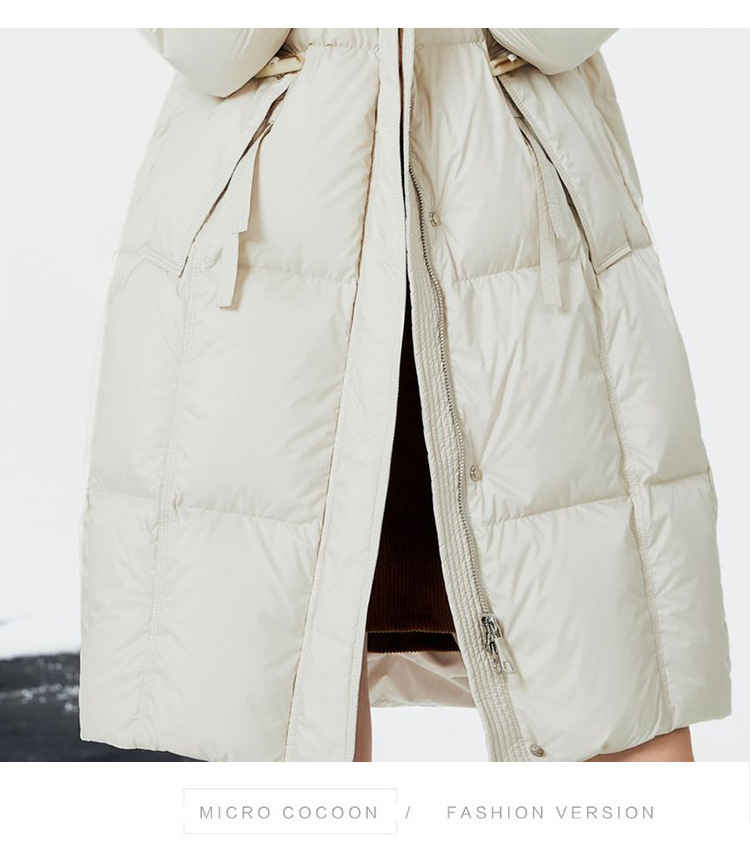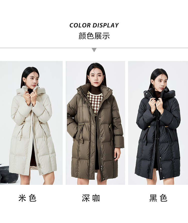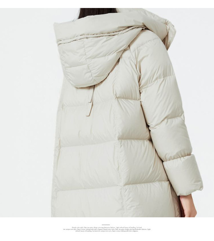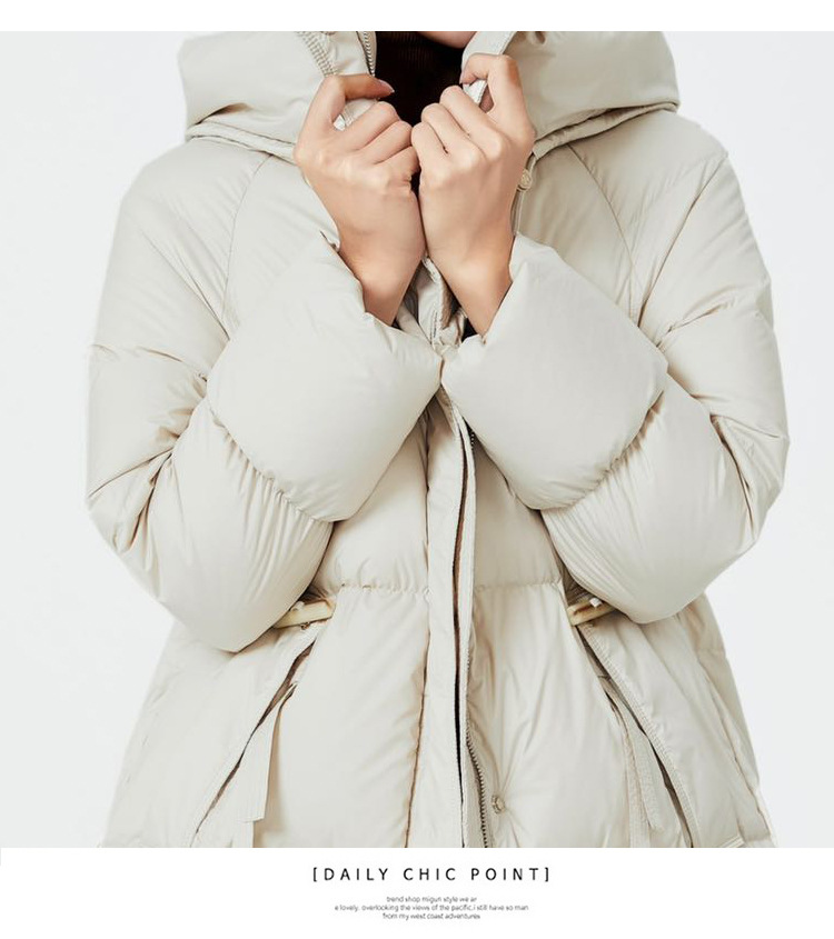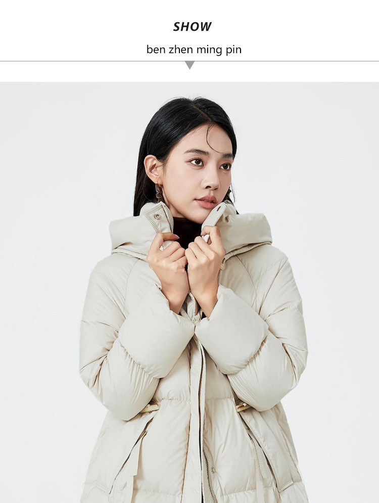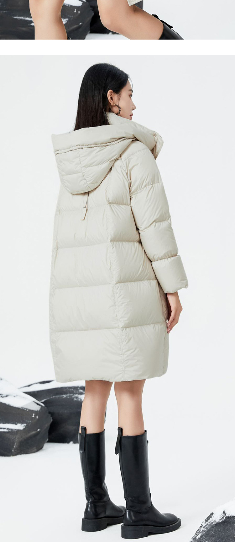 商品名称:中长款鹅绒服女2026新款韩版时尚连帽小个子加厚白鹅绒面包服外套