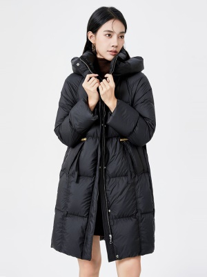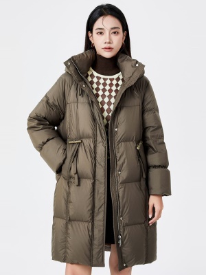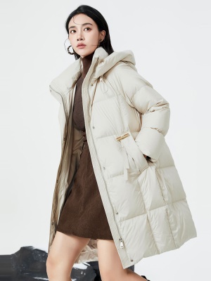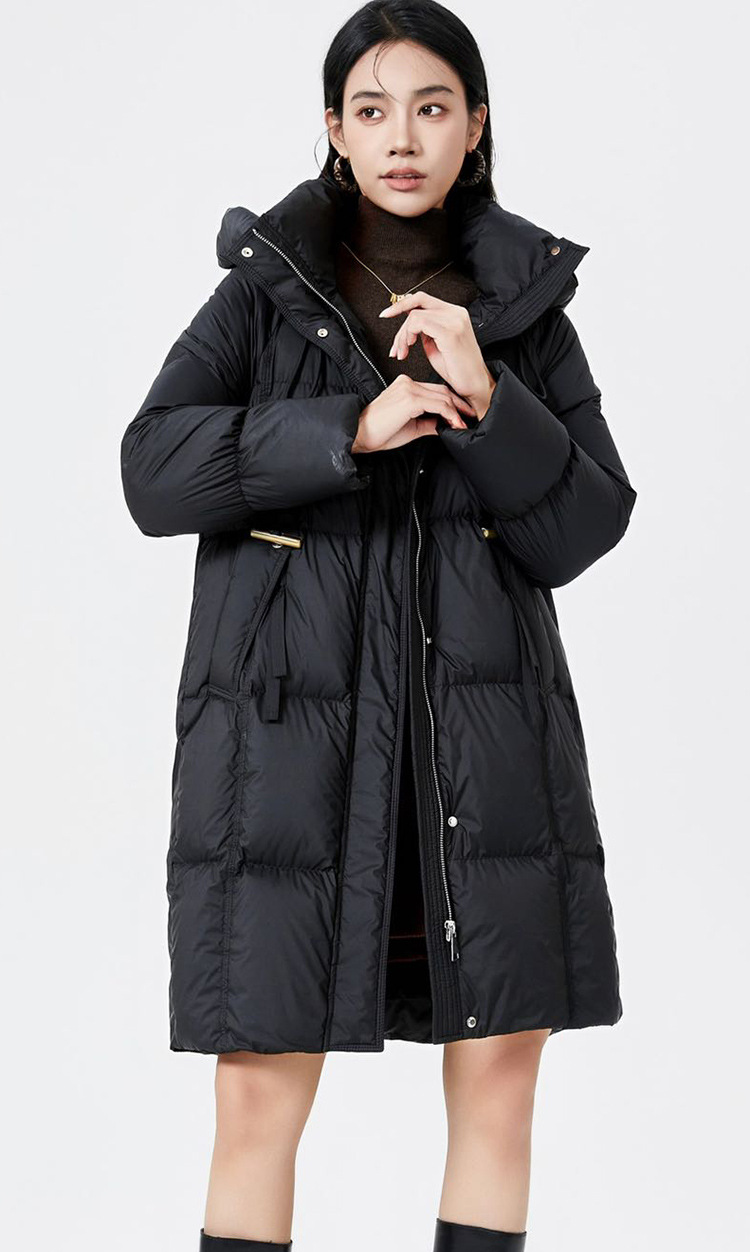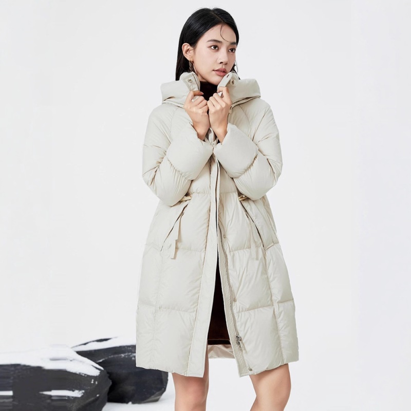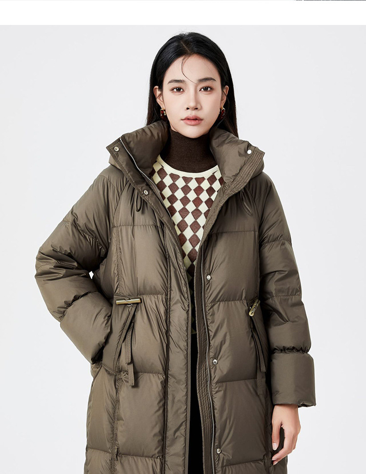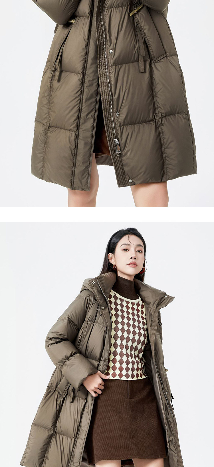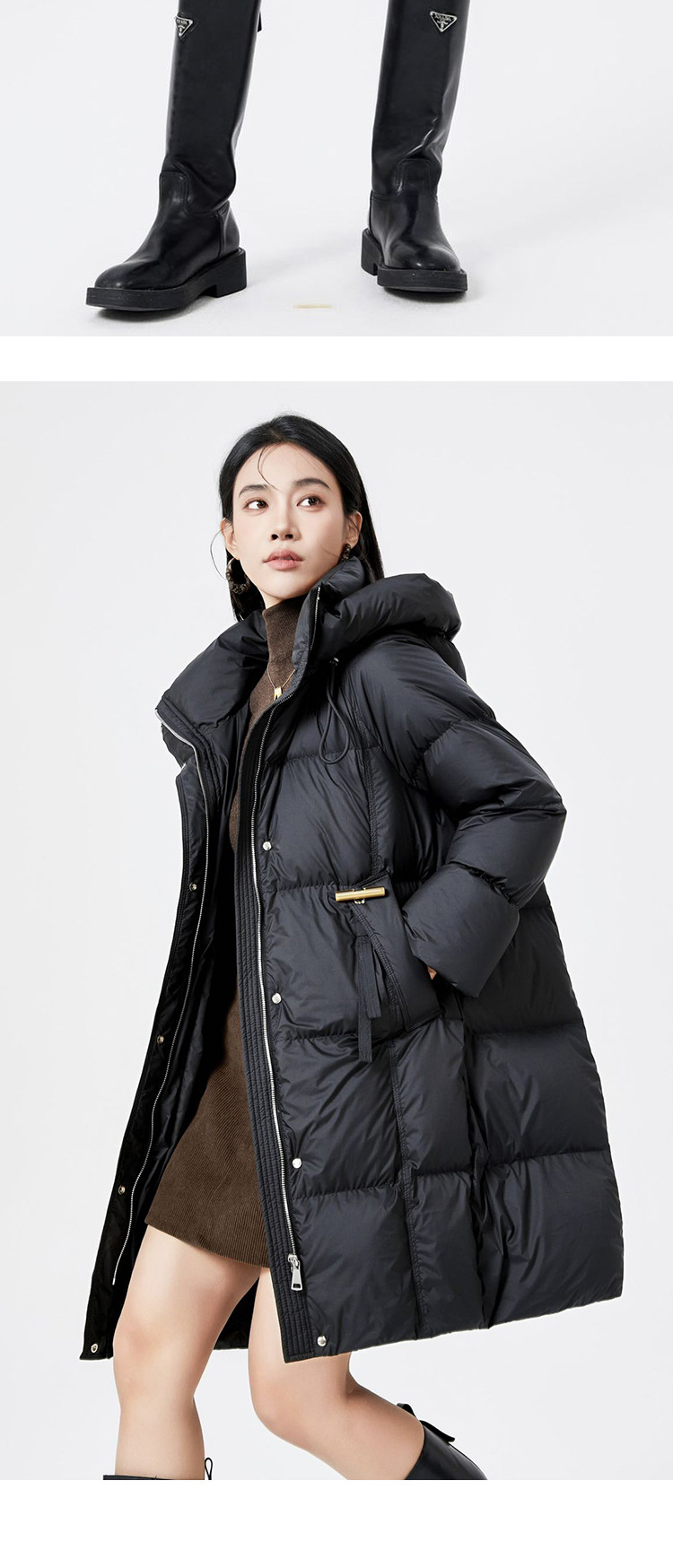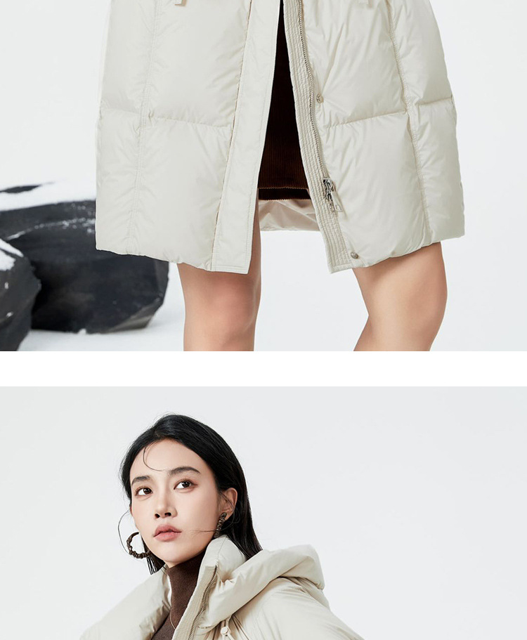 商品名称:中长款鹅绒服女2026新款韩版时尚连帽小个子加厚白鹅绒面包服外套