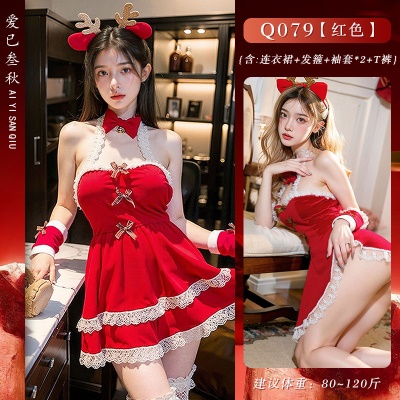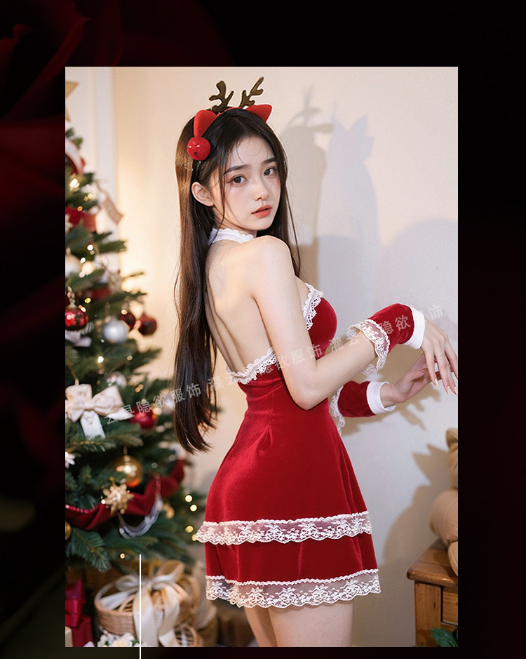 情趣内衣纯欲圣诞装性感制服免脱cospaly红色新年套装禁欲系吊带