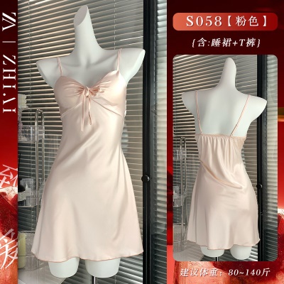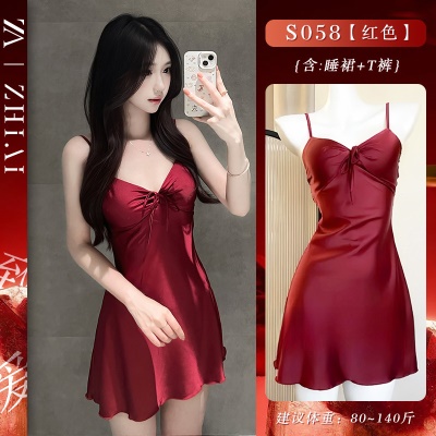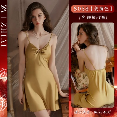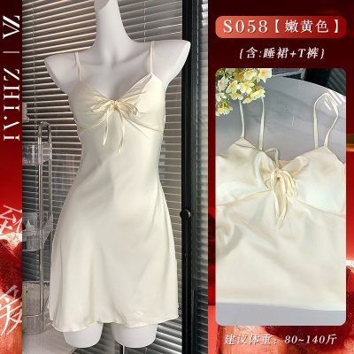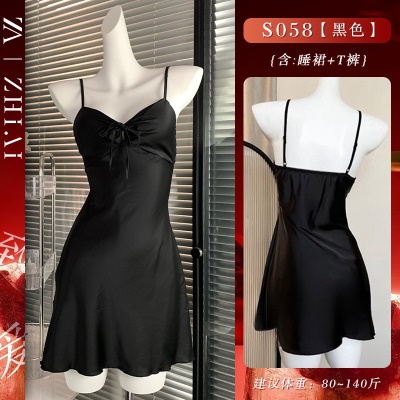 商品名称:性感睡衣新款女纯欲睡裙高级感冰丝吊带胸垫可外穿家居服轻奢套装
