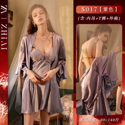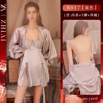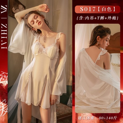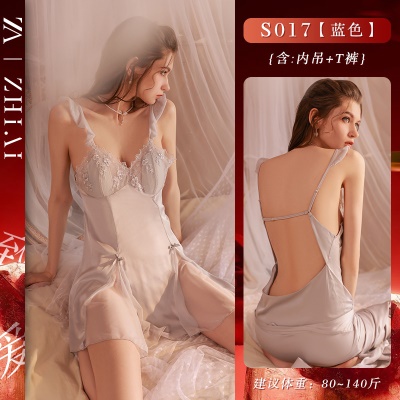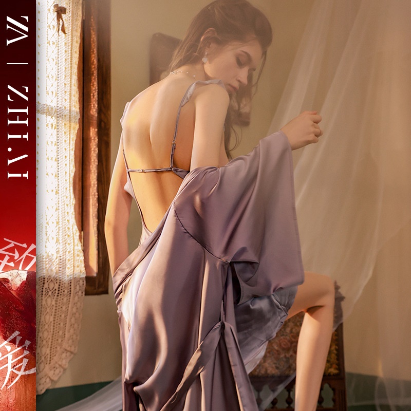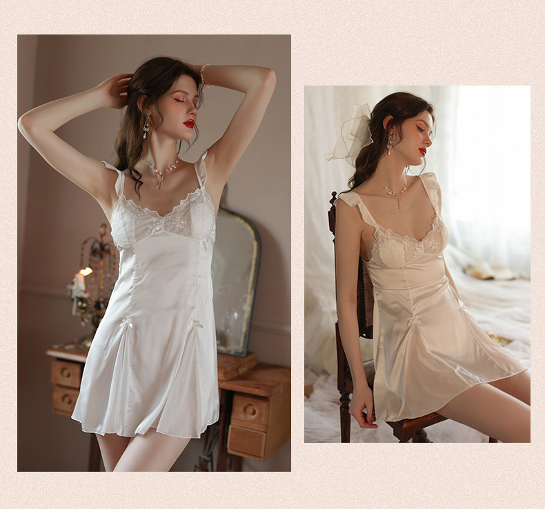 商品名称:性感睡衣纯欲冰丝睡裙深V露背吊带胸垫高级感家居服法式免脱套装