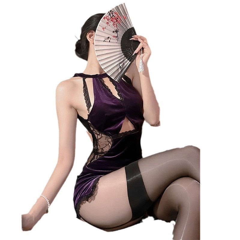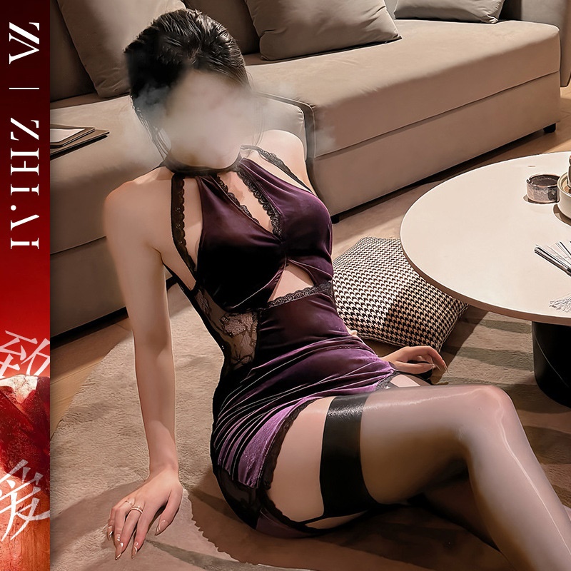 情趣内衣新款性感睡衣秋冬丝绒吊带性暗示国风旗袍激情夜店风制服