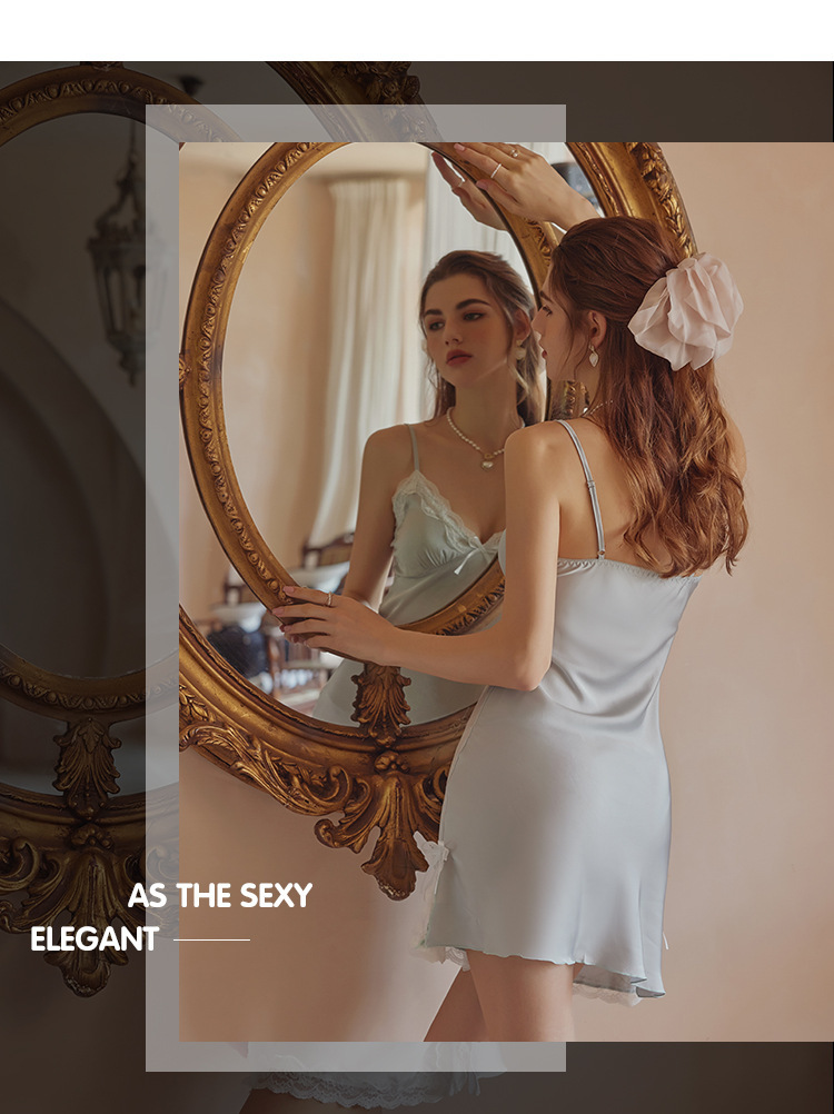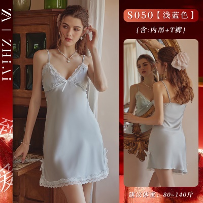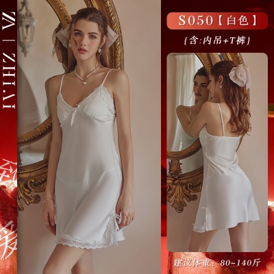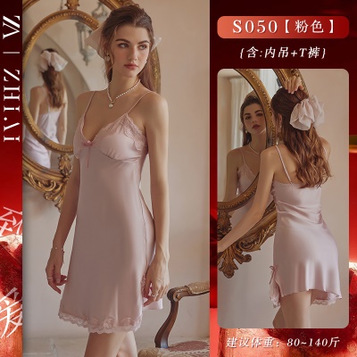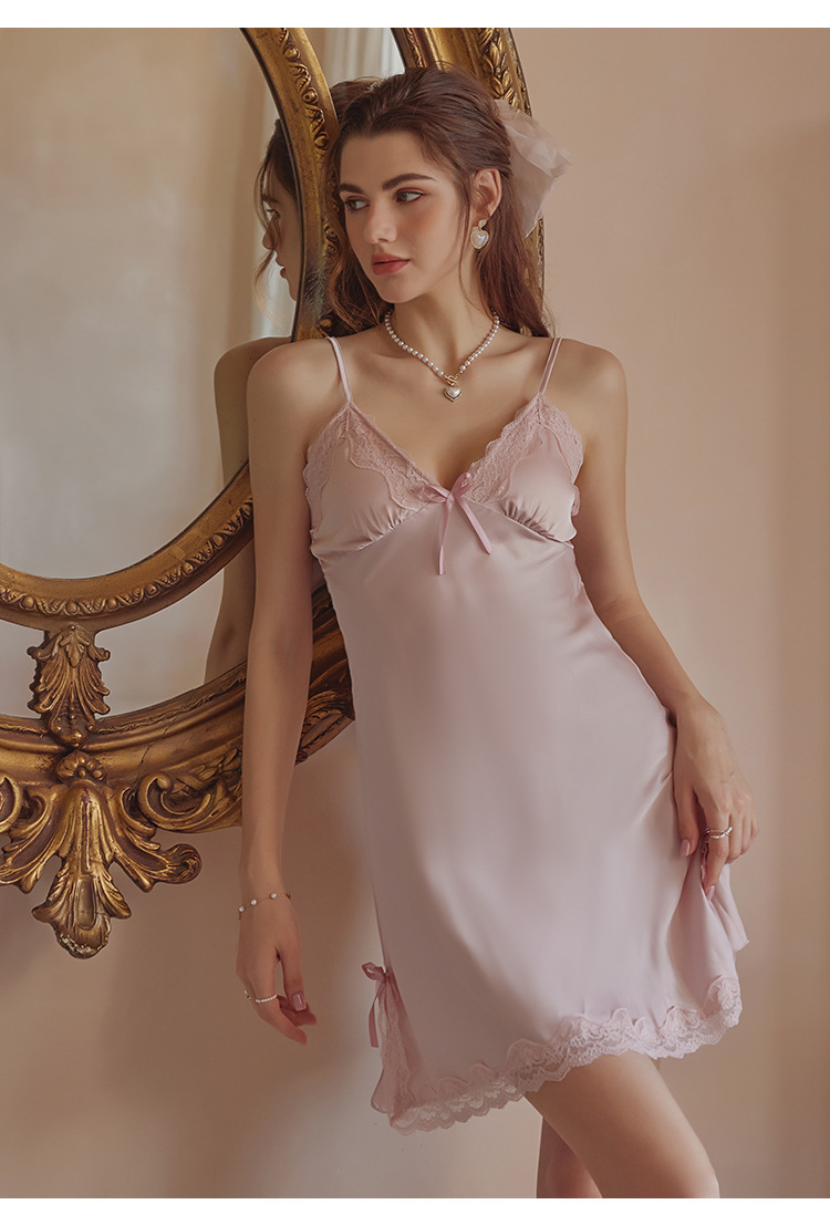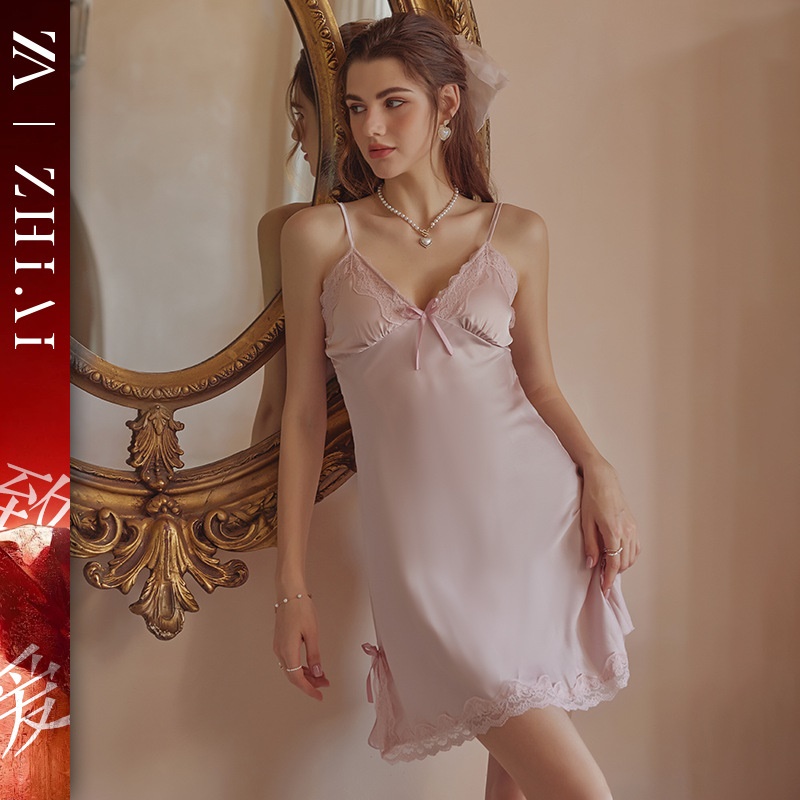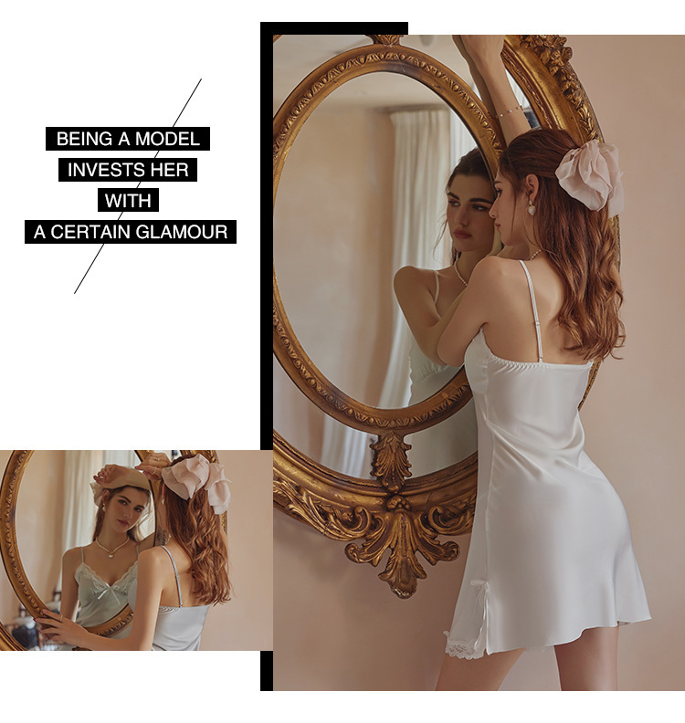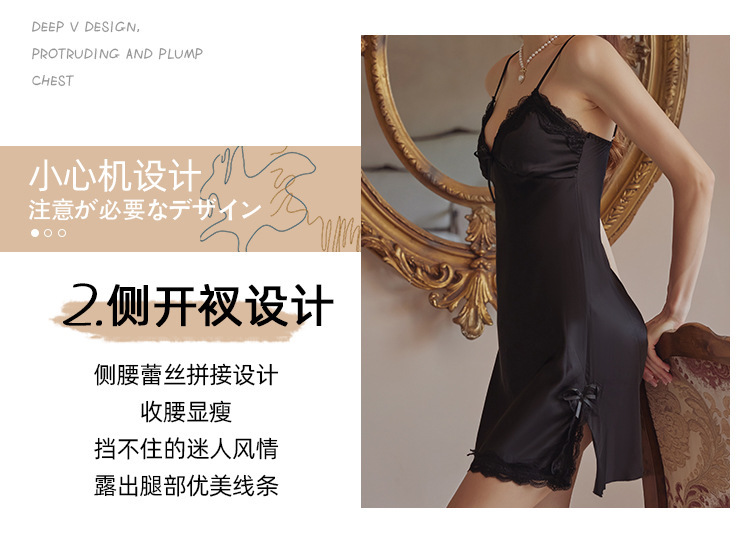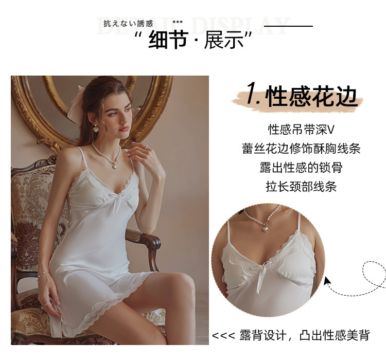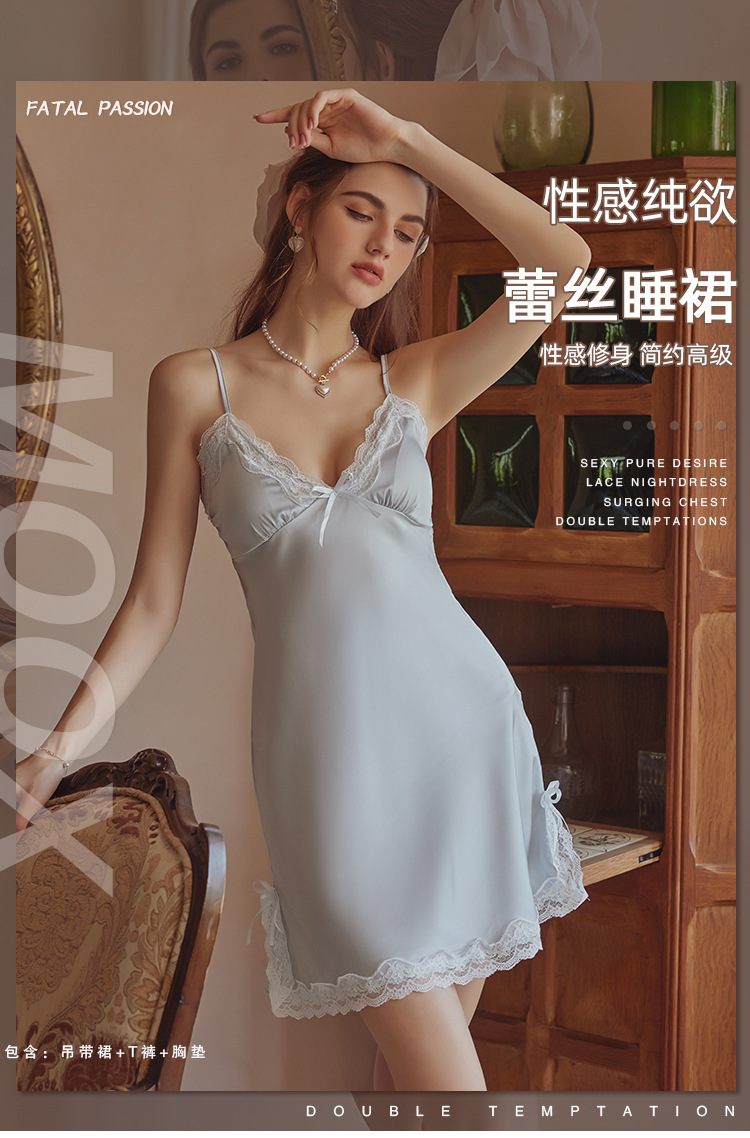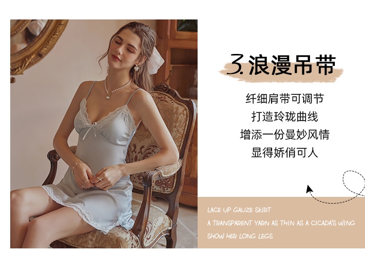 商品名称:性感睡衣纯欲蕾丝睡裙小胸显大轻奢吊带胸垫可外穿家居服修身套装
