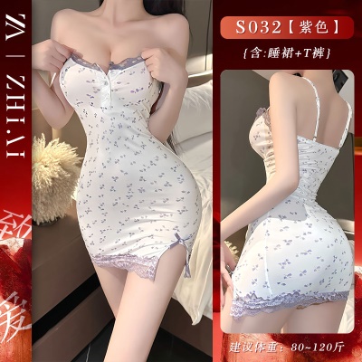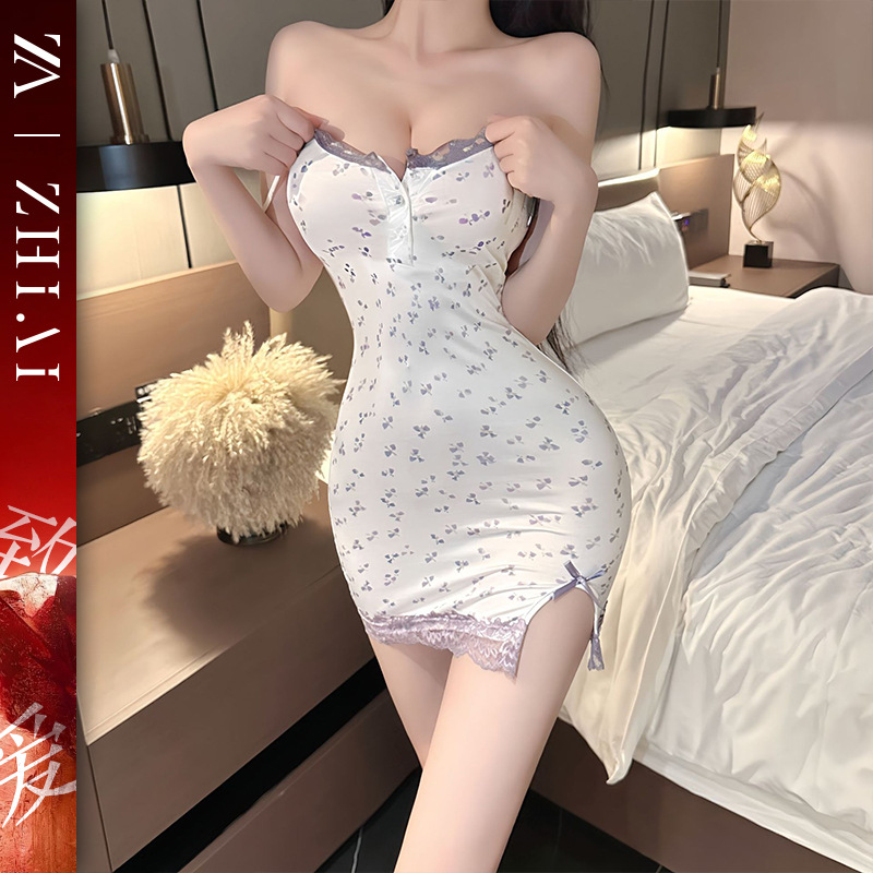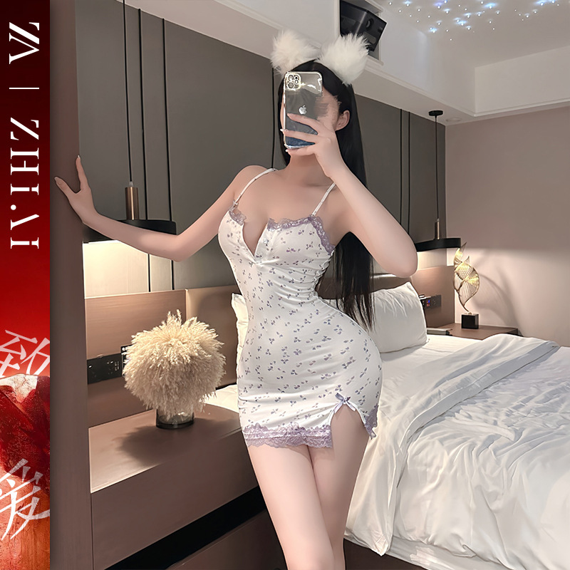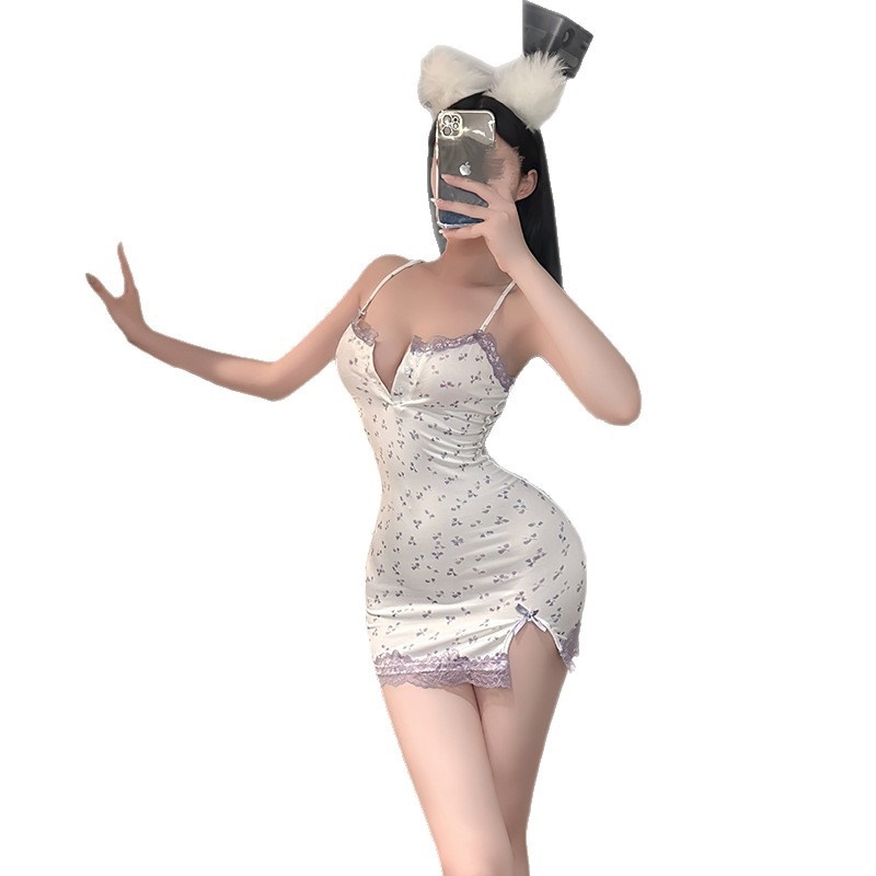 情趣内衣性感诱惑制服纯欲碎花睡裙免脱调情吊带胸垫可外穿家居服