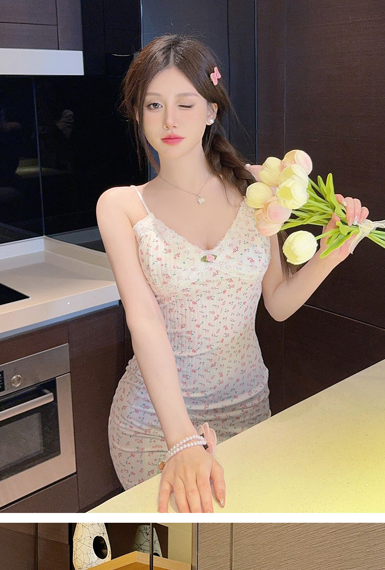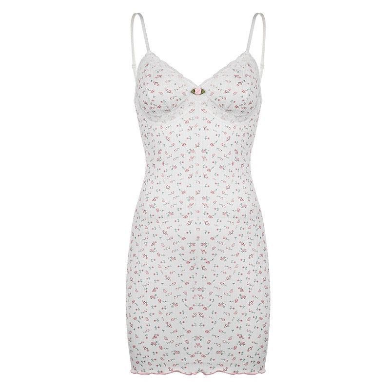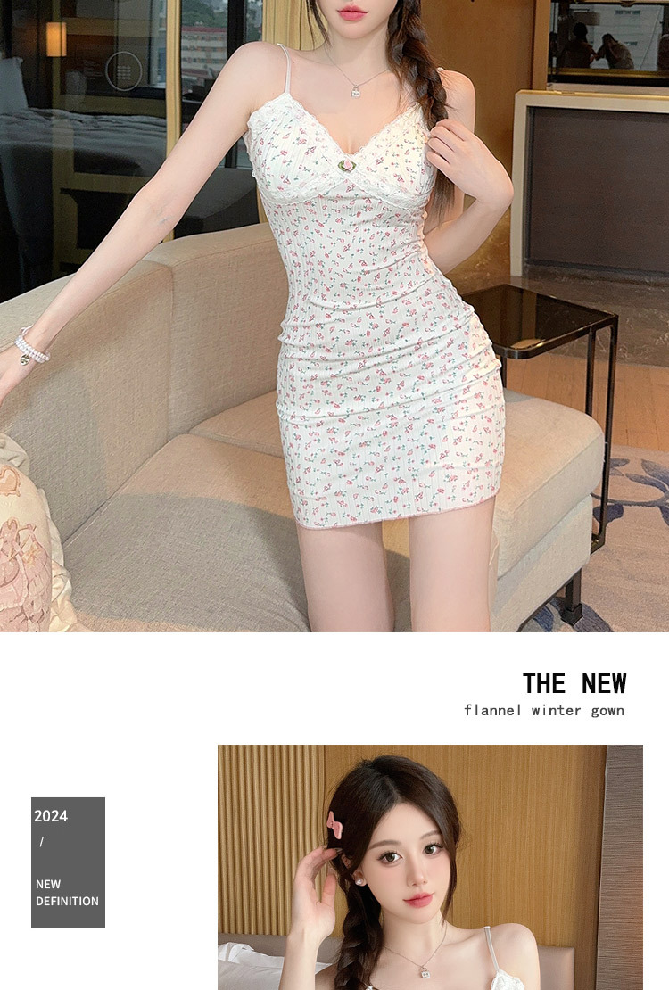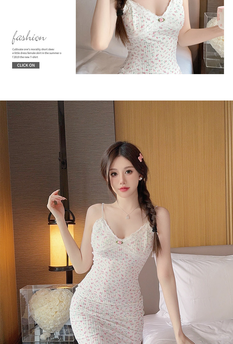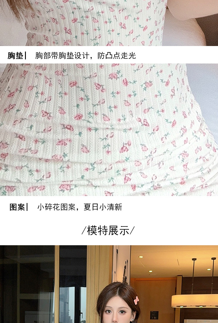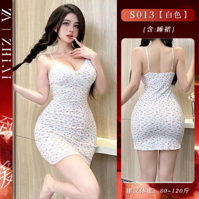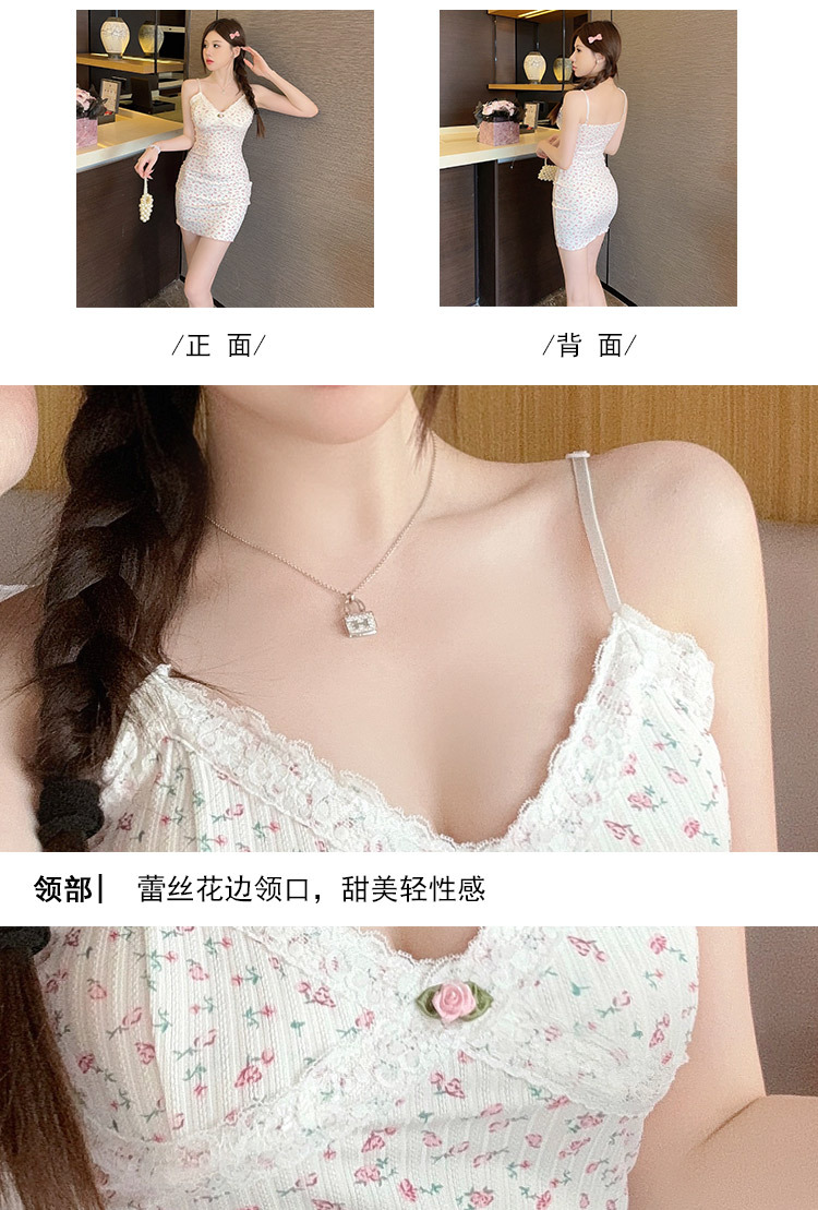 商品名称:性感睡衣新款纯欲碎花睡裙免脱诱惑吊带胸垫外穿连体衣情趣两件套