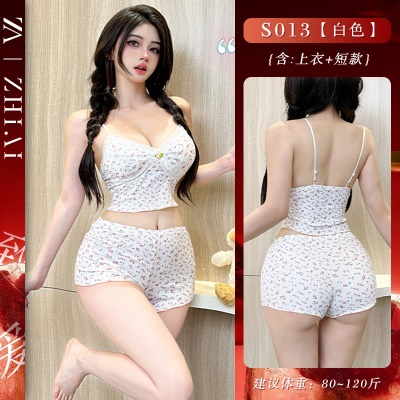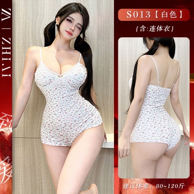 性感睡衣新款纯欲碎花睡裙免脱诱惑吊带胸垫外穿连体衣情趣两件套