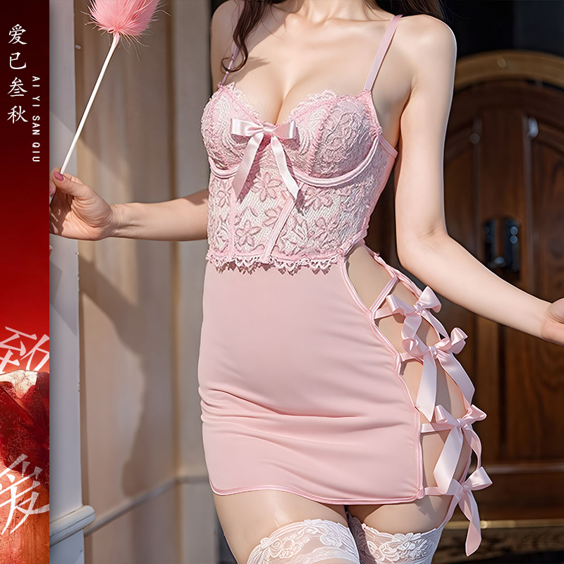 情趣内衣性感制服纯欲睡裙轻奢蝴蝶吊带裙趣味透视包臀裙蕾丝套装