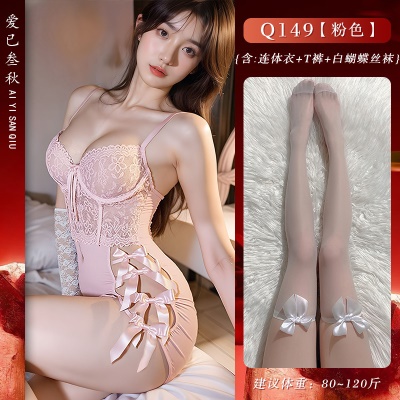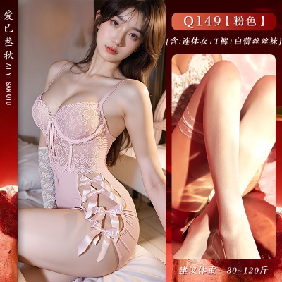 情趣内衣性感蕾丝连体衣纯欲聚拢透视装激情诱惑制服镂空免脱套装