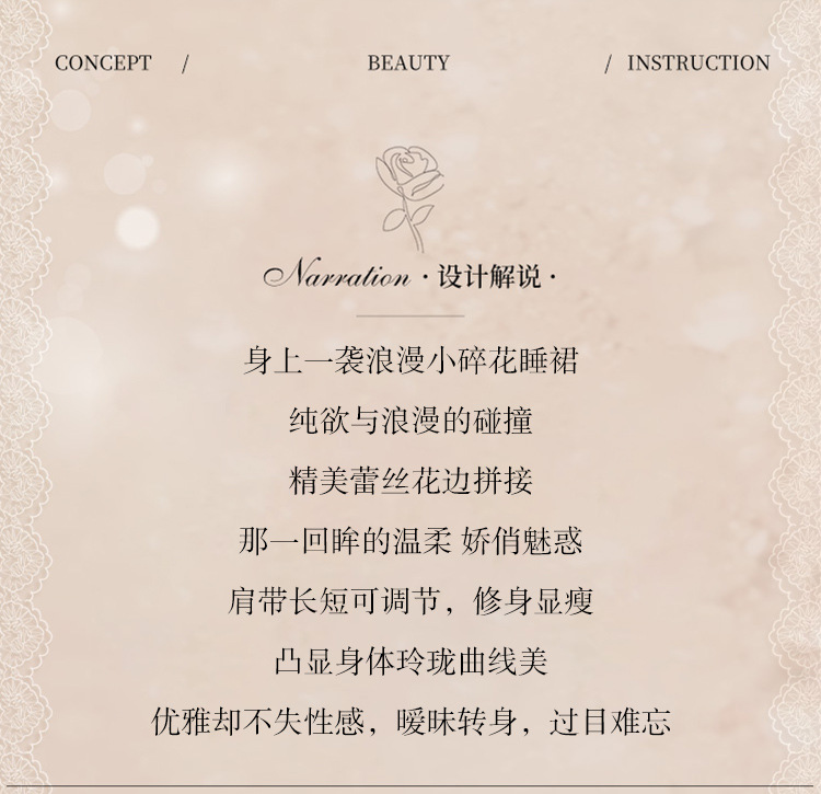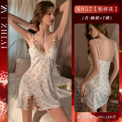 商品名称:性感睡衣法式碎花睡裙纯欲蕾丝吊带可外穿家居服诱惑套装一件代发