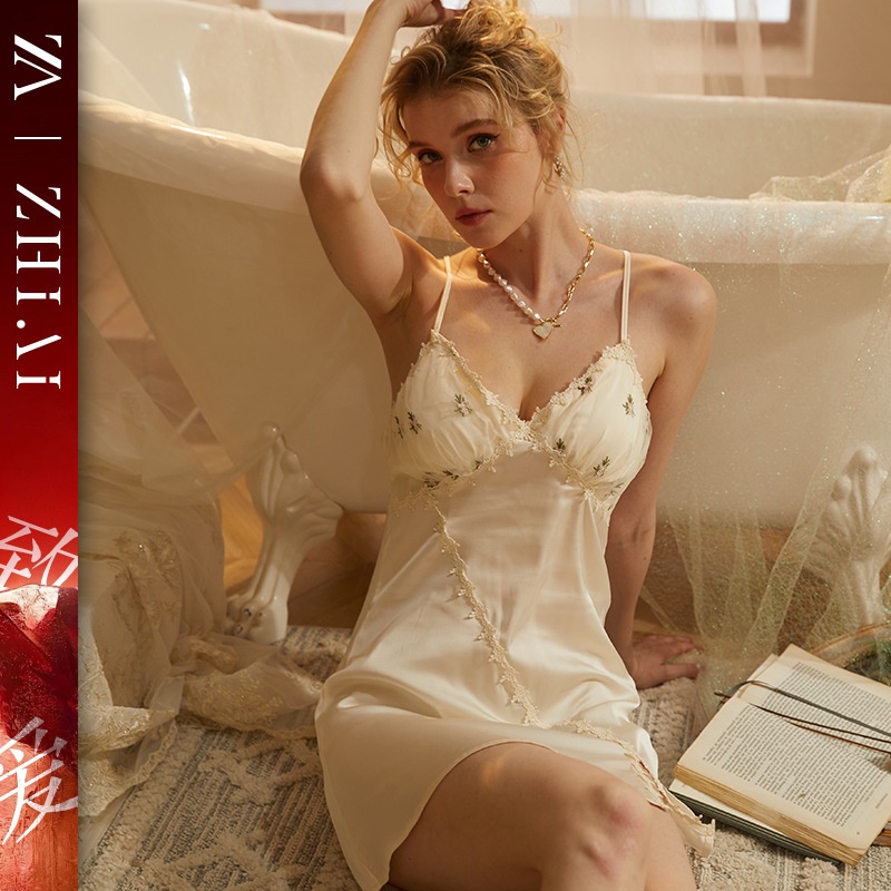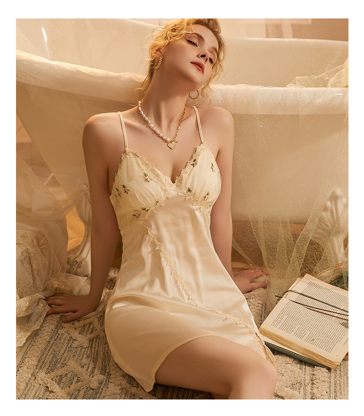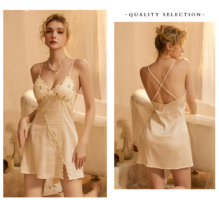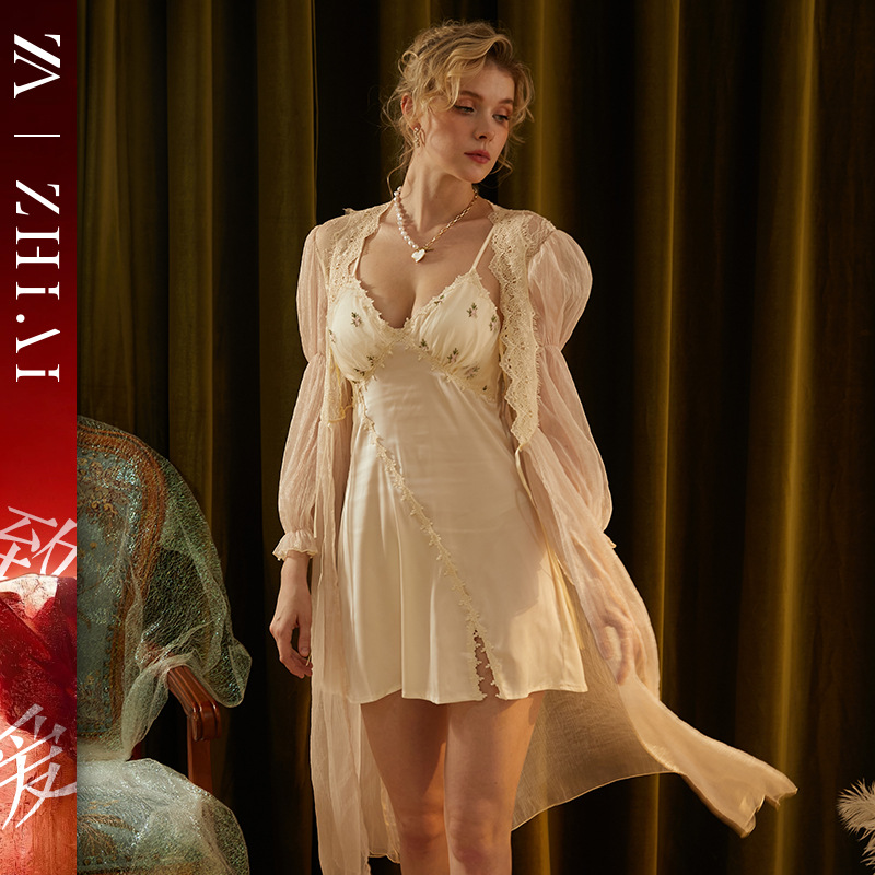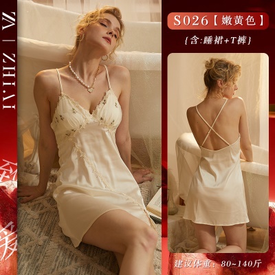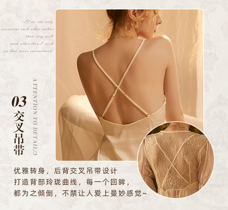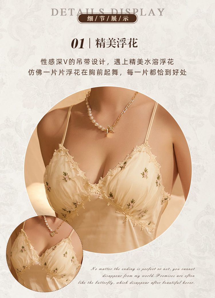 商品名称:性感睡衣法式纯欲睡裙复古碎花吊带胸垫高级冰丝家居服可外穿套装