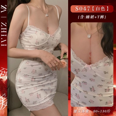 商品名称:性感睡衣纯欲碎花睡裙修身显瘦包臀裙甜美性暗示大码吊带一件代发