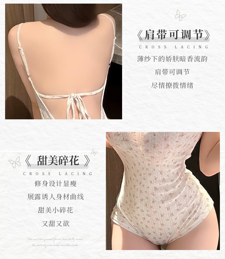 商品名称:性感睡衣新款纯欲睡裙日系碎花吊带甜美修身连体衣露背调情家居服