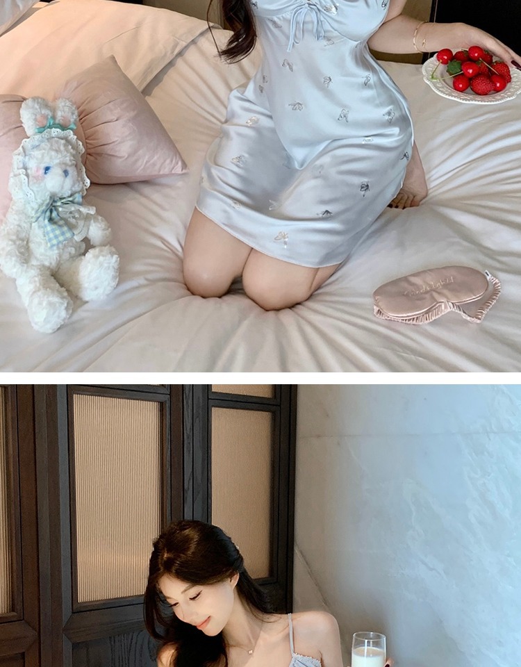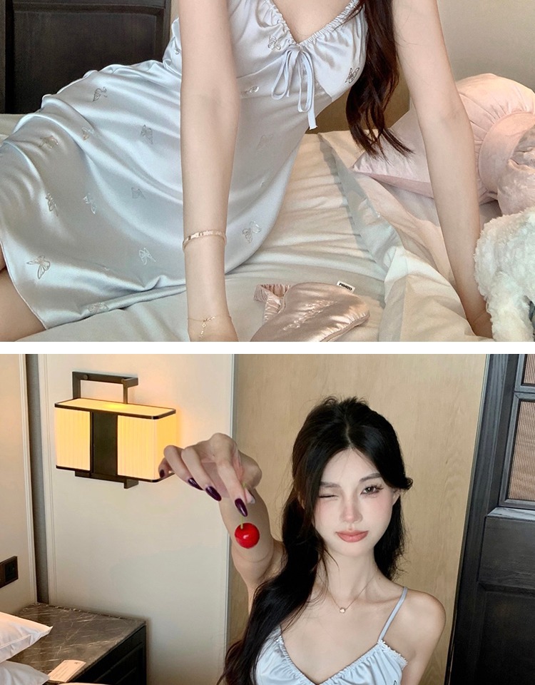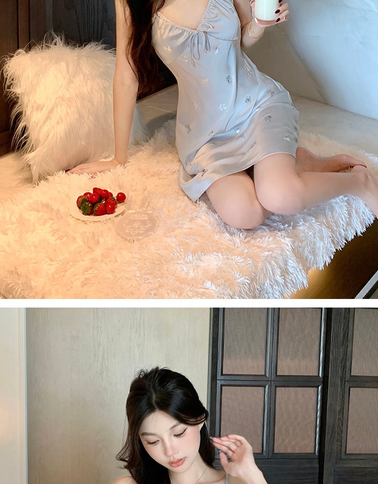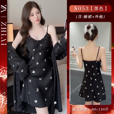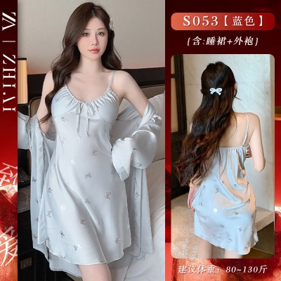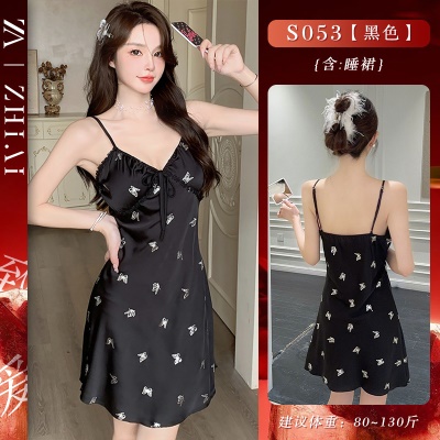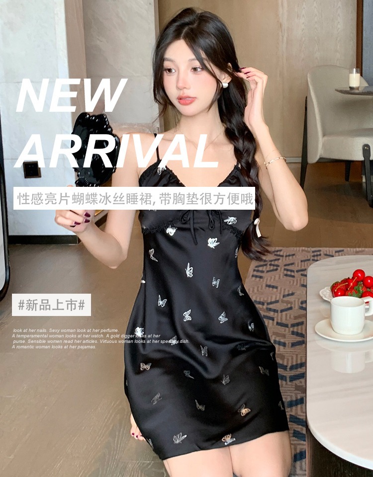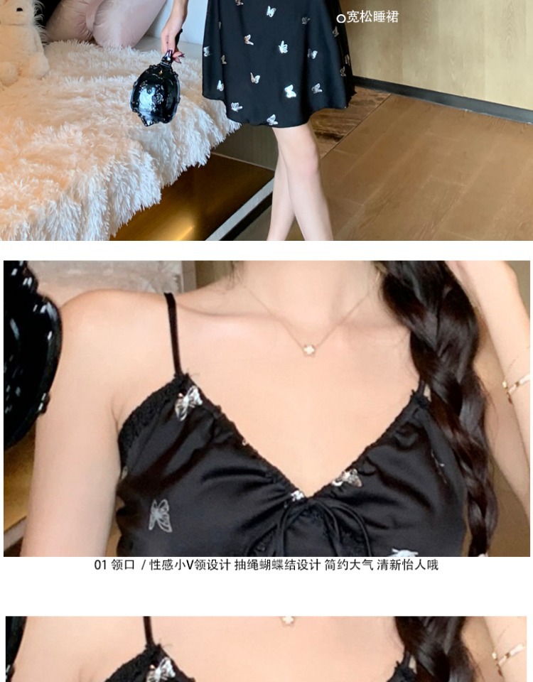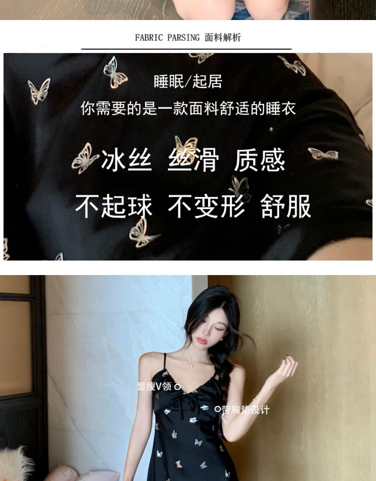 商品名称:性感睡衣秋冬新款烫银蝴蝶睡裙纯欲冰丝吊带轻奢高级感家居服套装