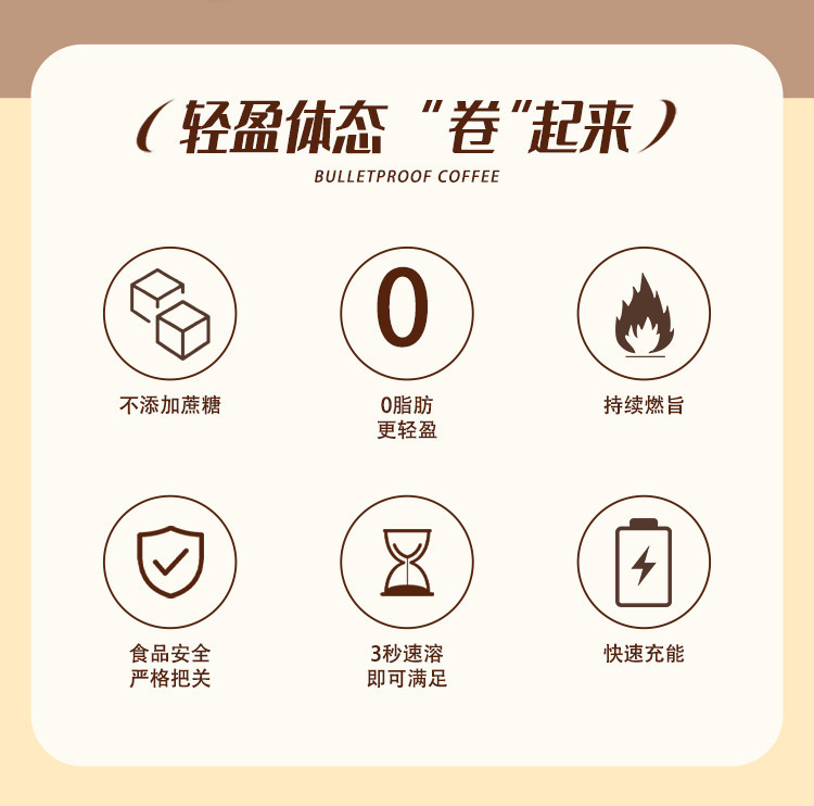 商品名称:生酮防弹咖啡 0糖碱脂上班族便携增强饱腹感低碳燃旨碱肥奶香防弹
