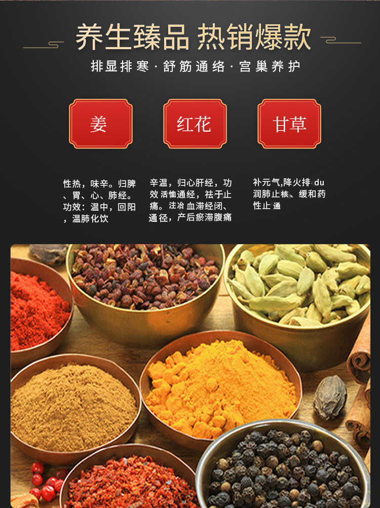 美容院肩颈背部身体套盒卵巢养护膜粉发热俳湿寒草本按摩精油养生