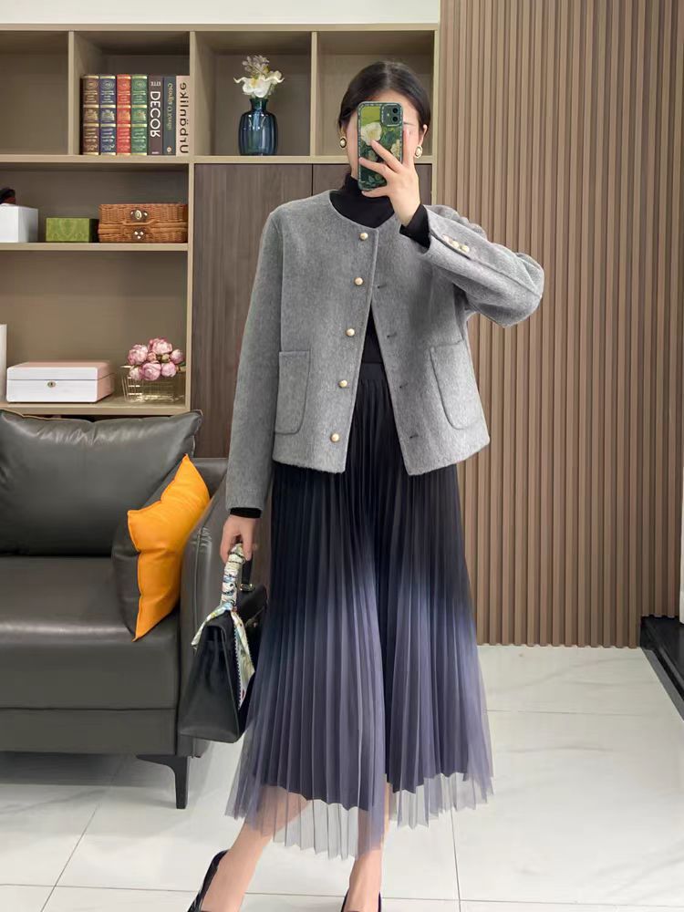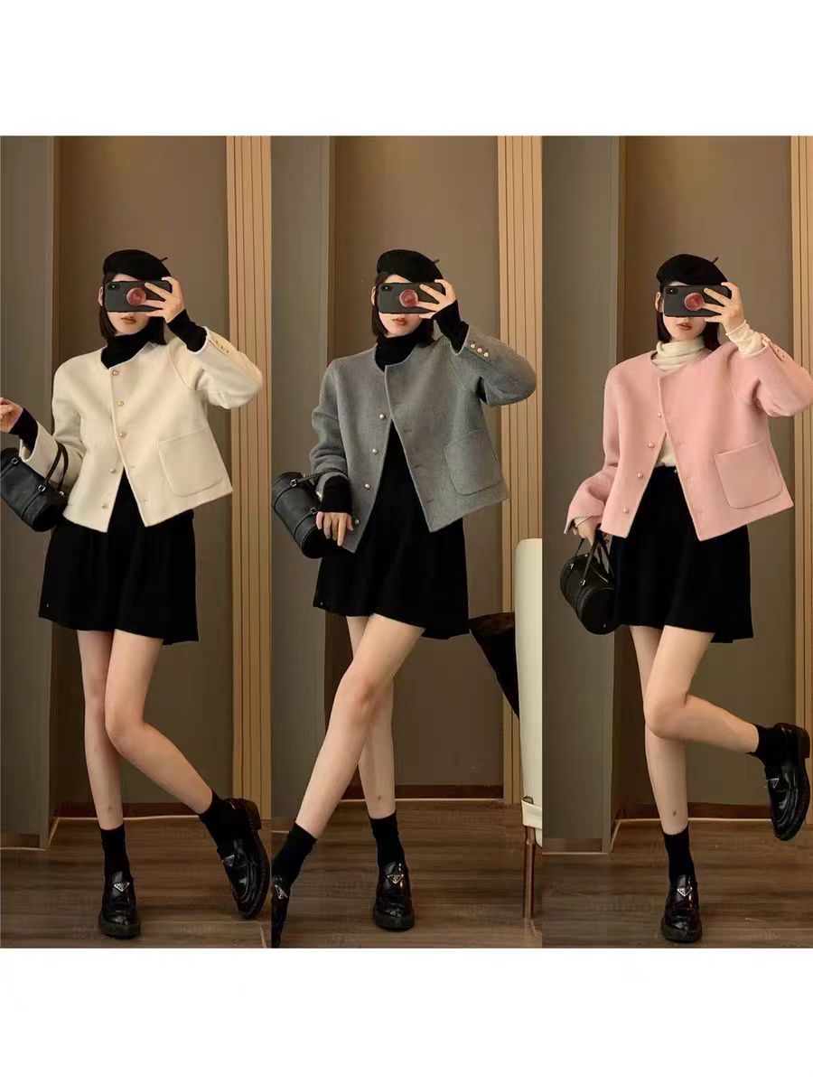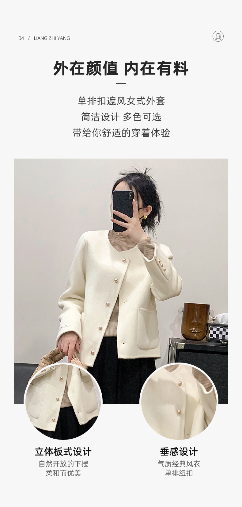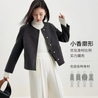 商品名称:短款小香风双面羊毛大衣女春秋小个子穿搭高端羊绒毛呢外套