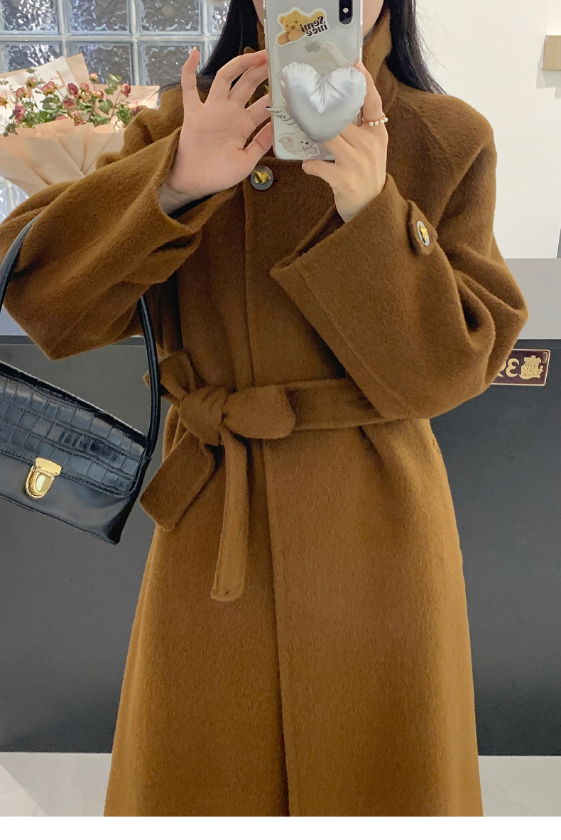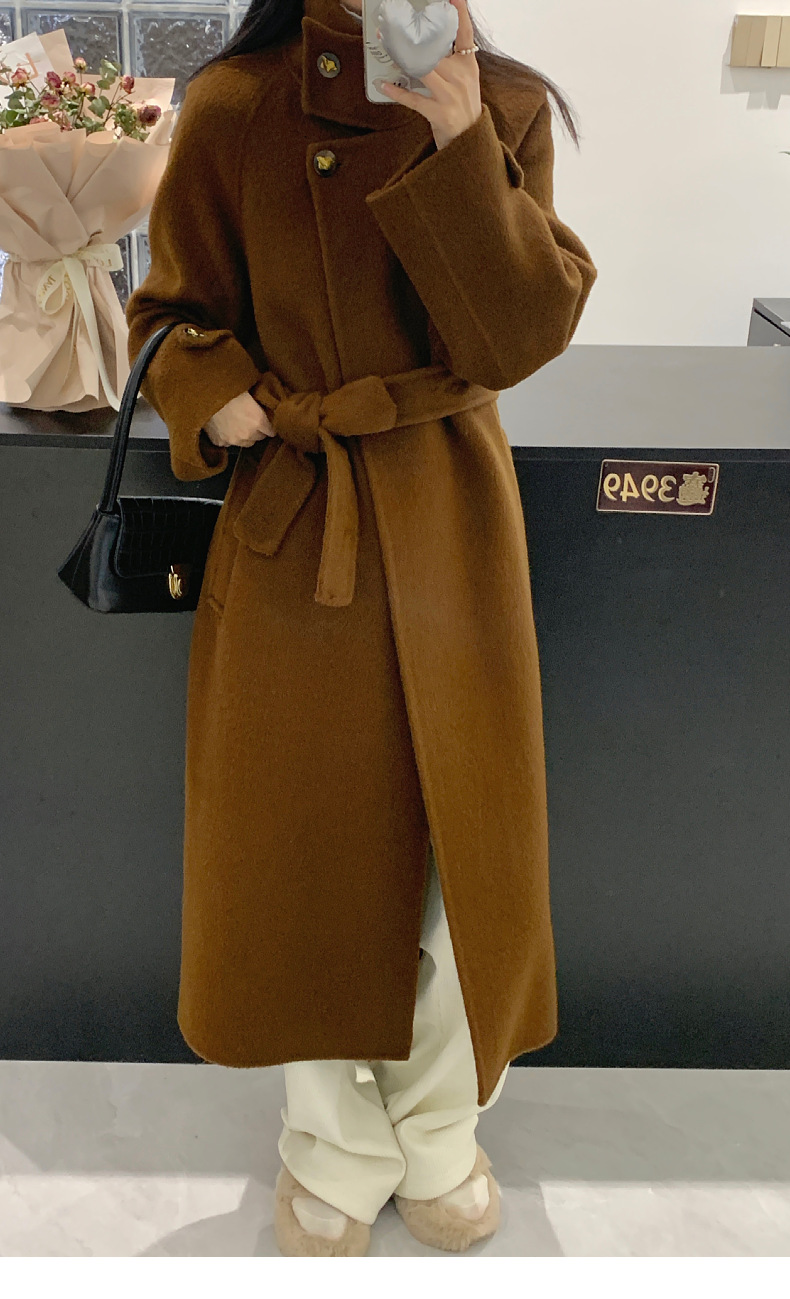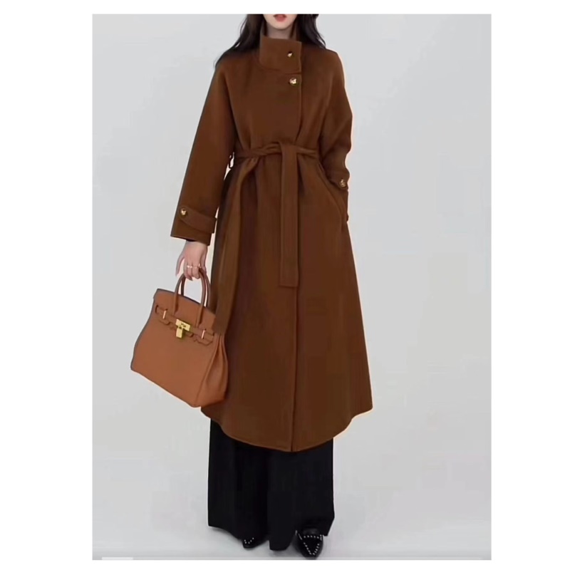 严选MOSIIMORII同款100%羊毛双面呢大衣高贵中长版纯色大衣外套女