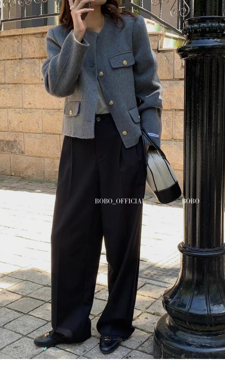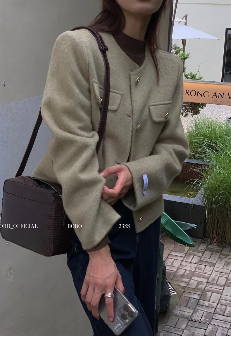 短款小香风羊毛大衣女春季高级感小个子羊绒格雷系穿搭毛呢外套女