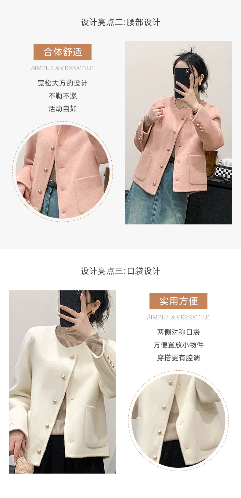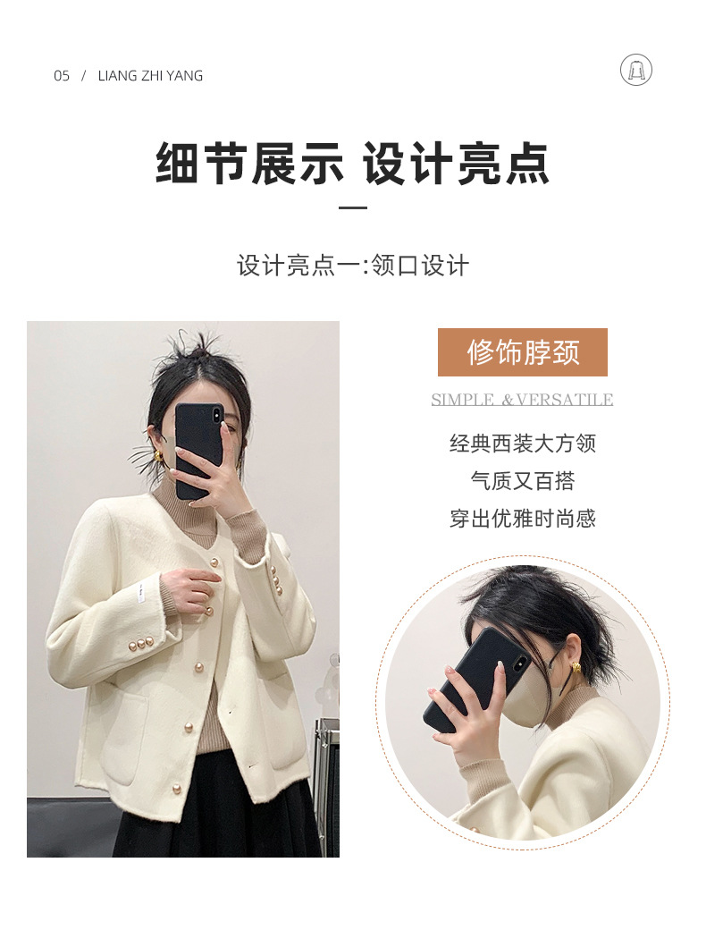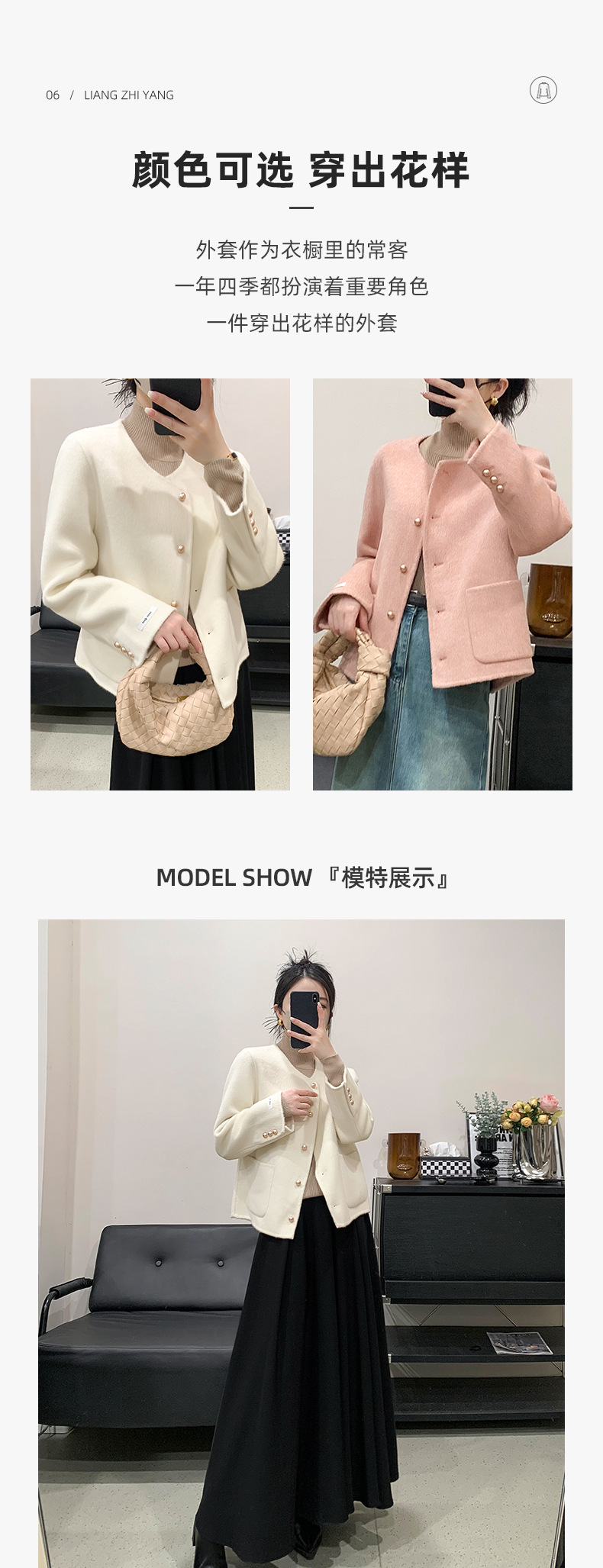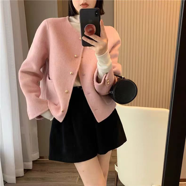 新款双面羊绒大衣女韩版短款圆领小个子毛呢纯色羊毛小香风外套